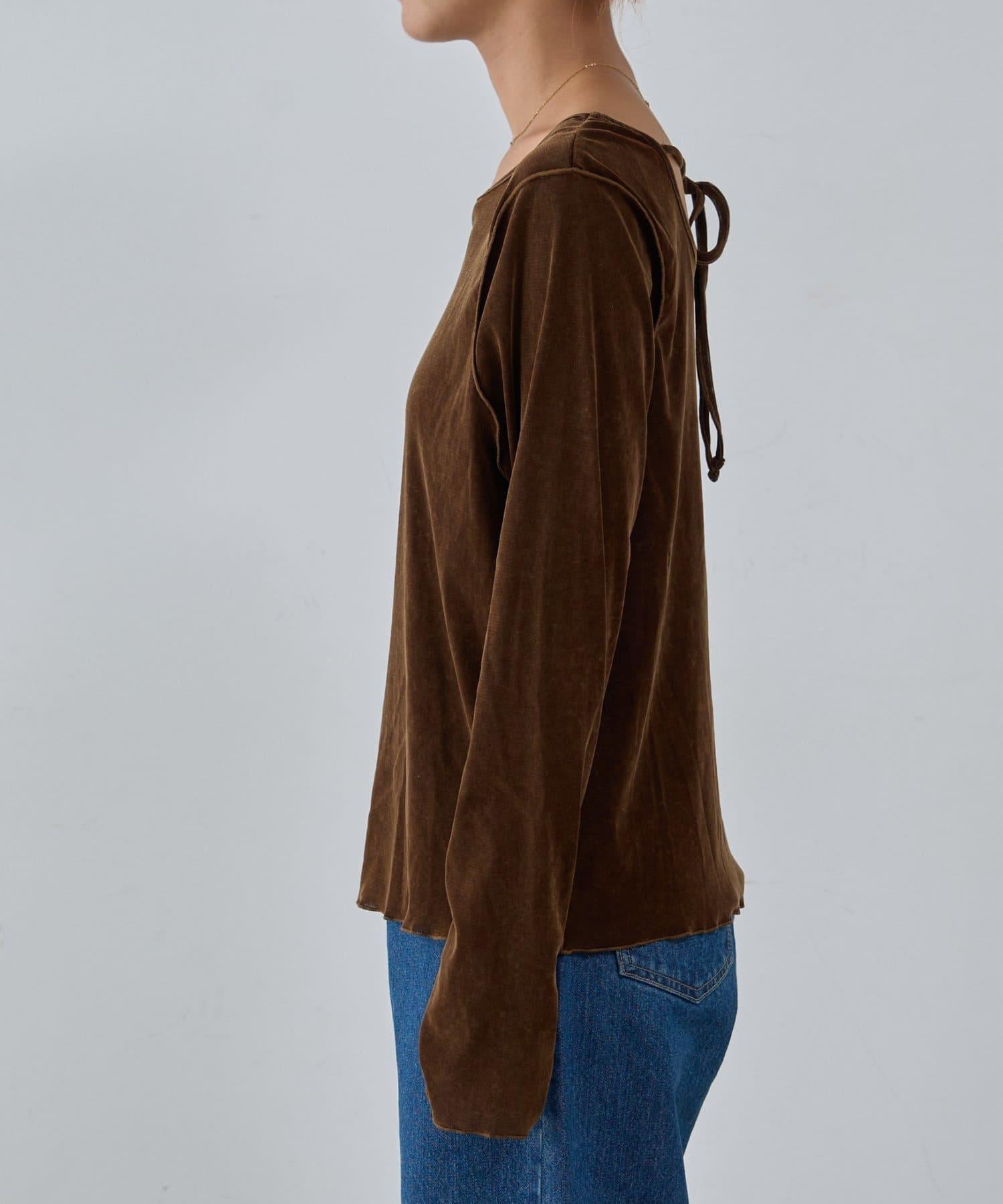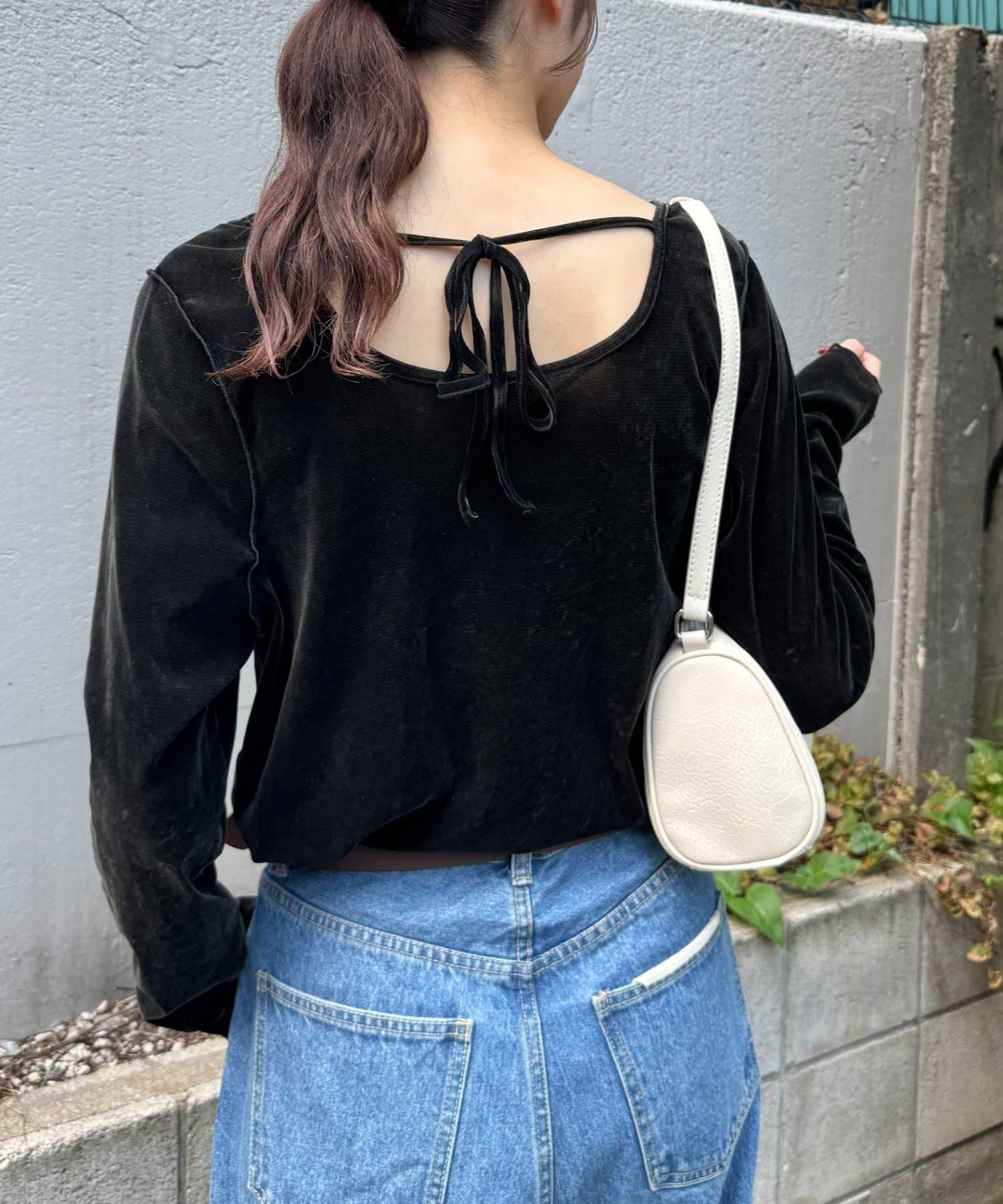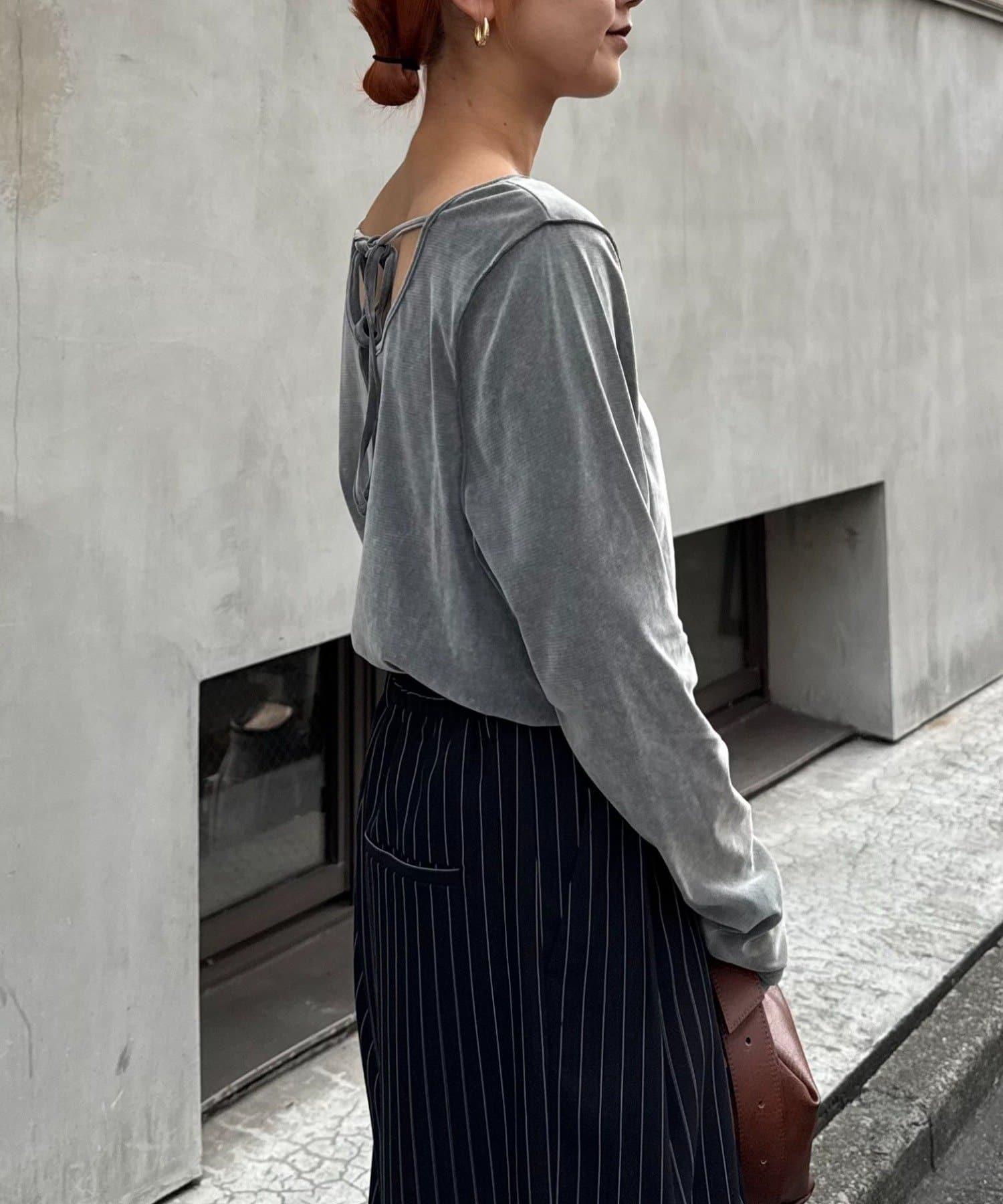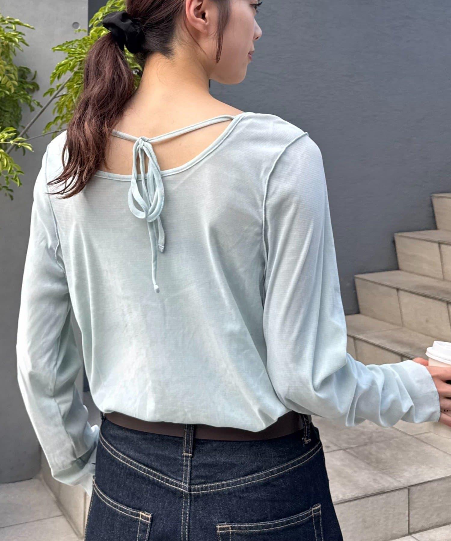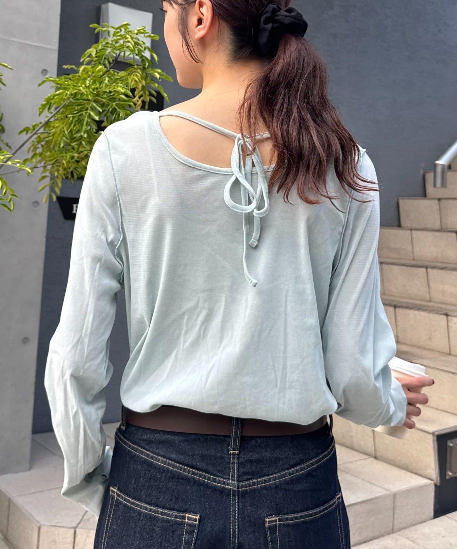 將絲帶系在背部,就能打造出女性化的背部絲帶上衣。