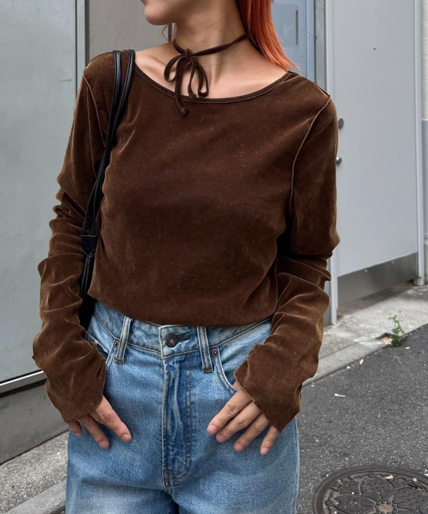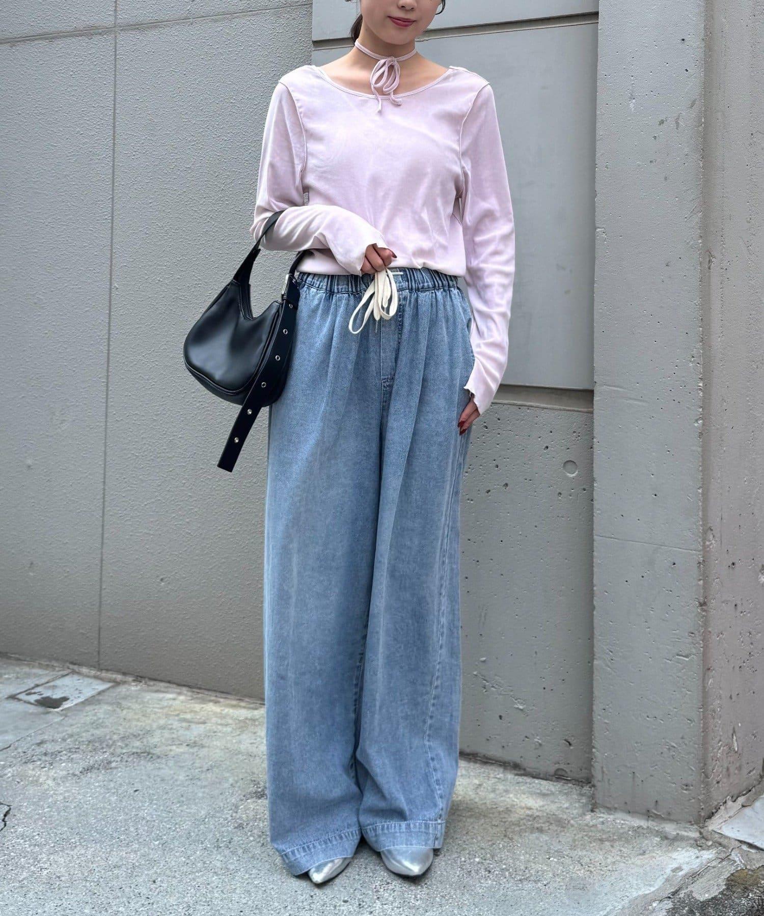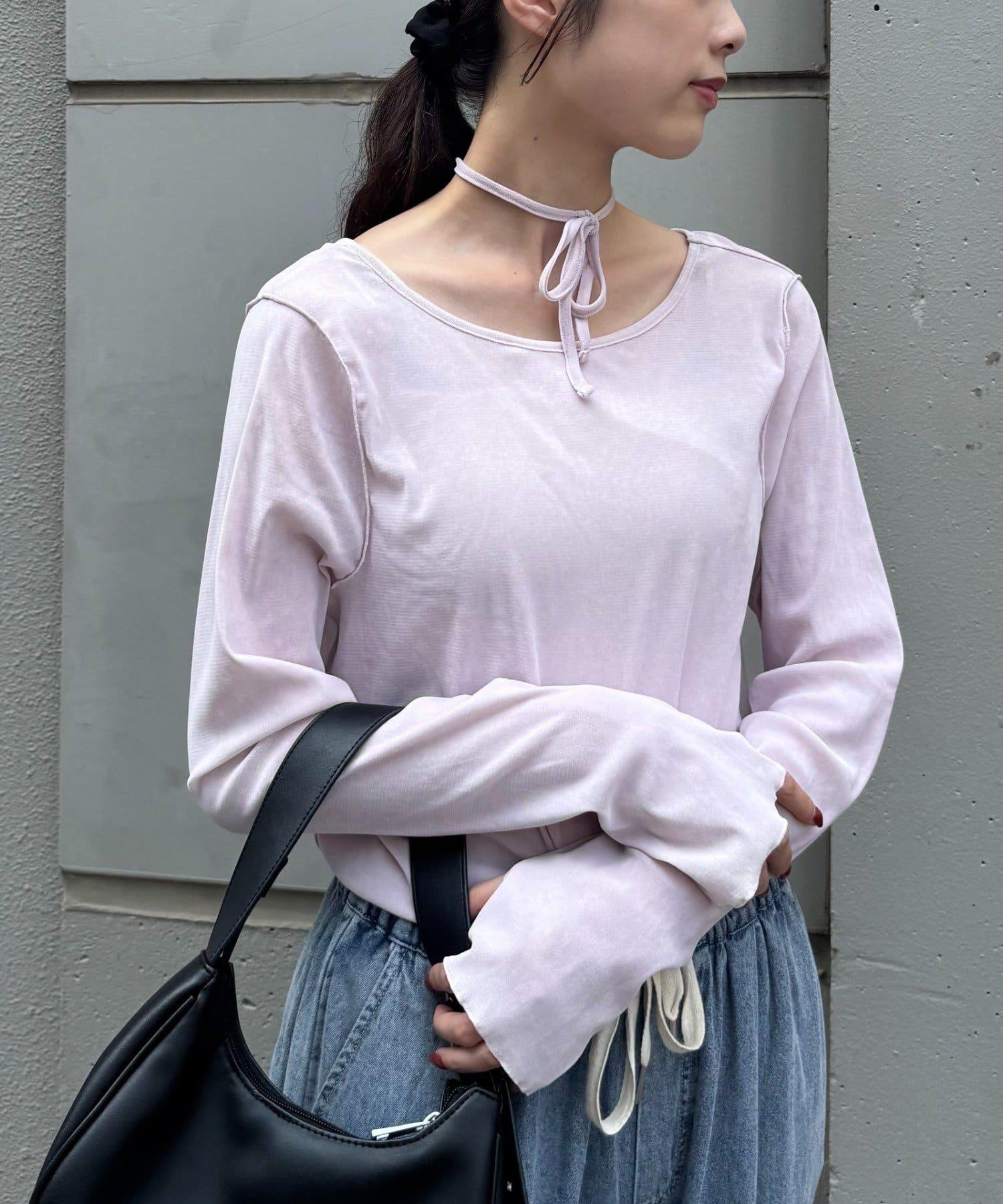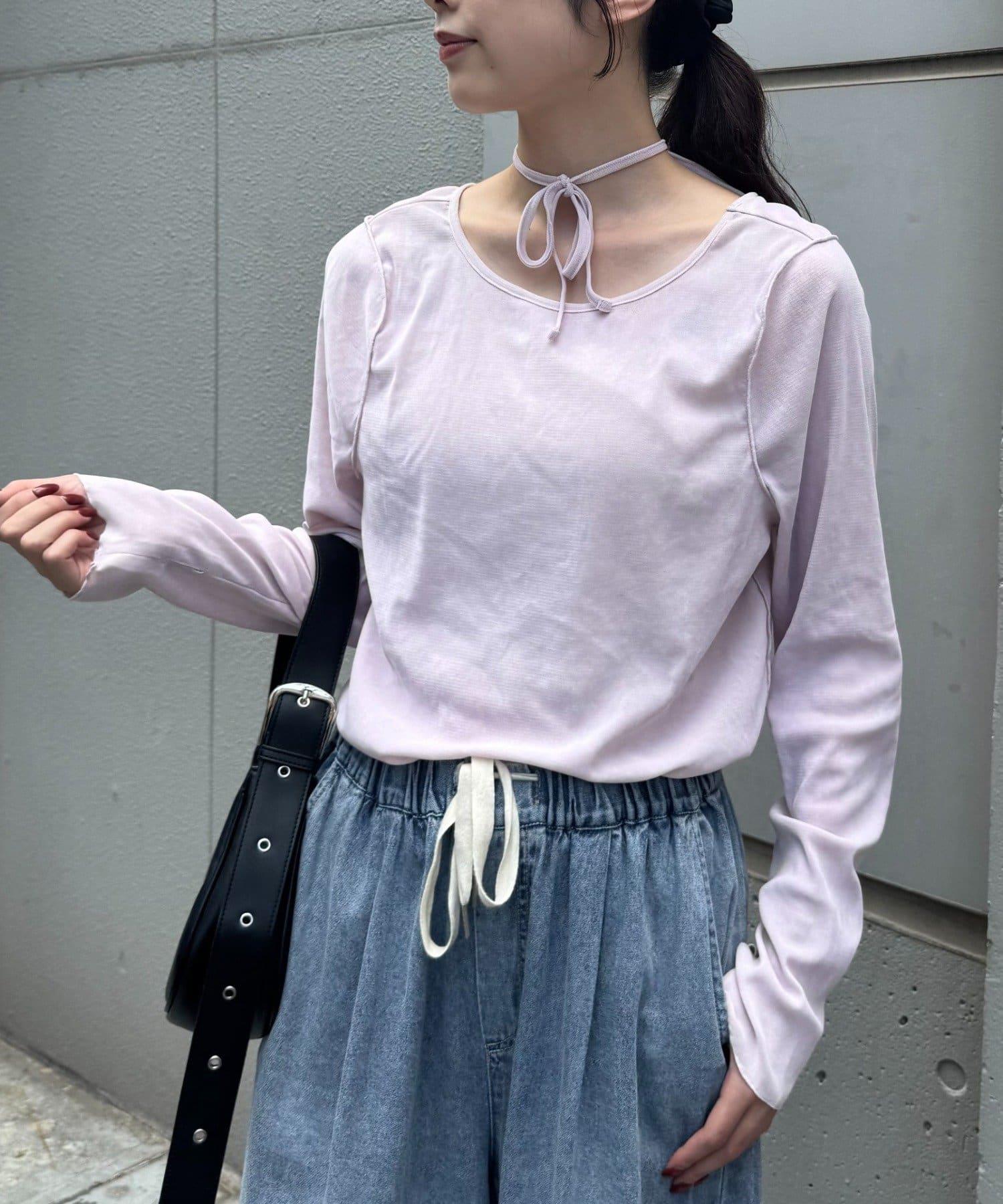如果將繫帶交叉系在脖子上,還可以享受時髦的choker款式◎。