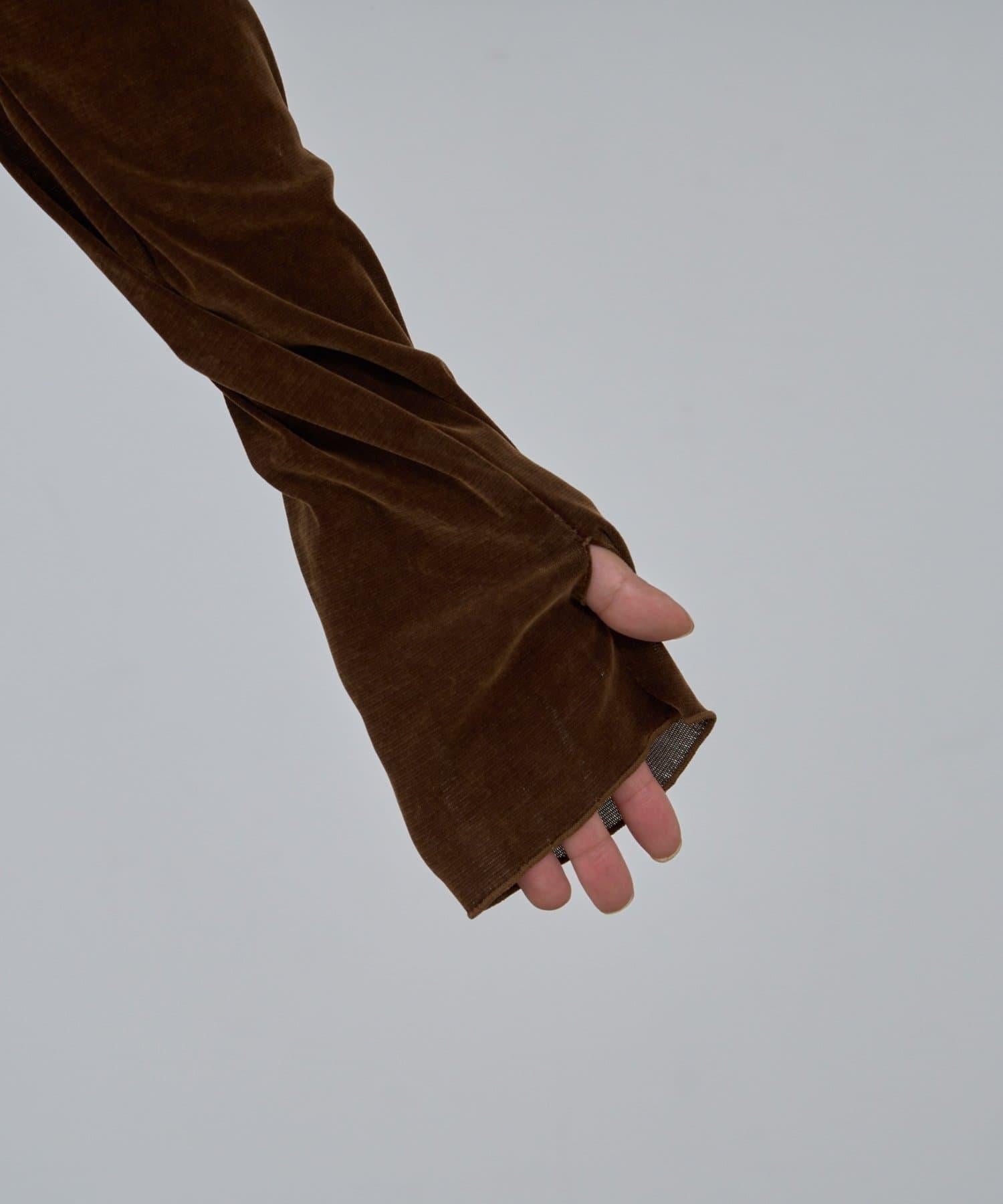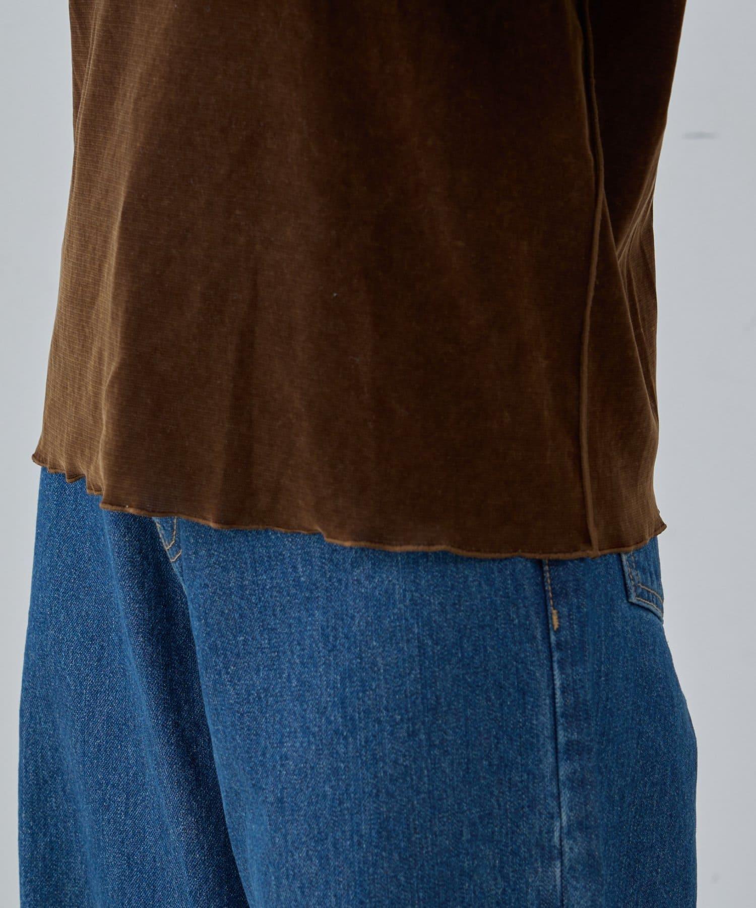 設計上衣採用透視面料,配以植絨印花,復古氣息濃郁。