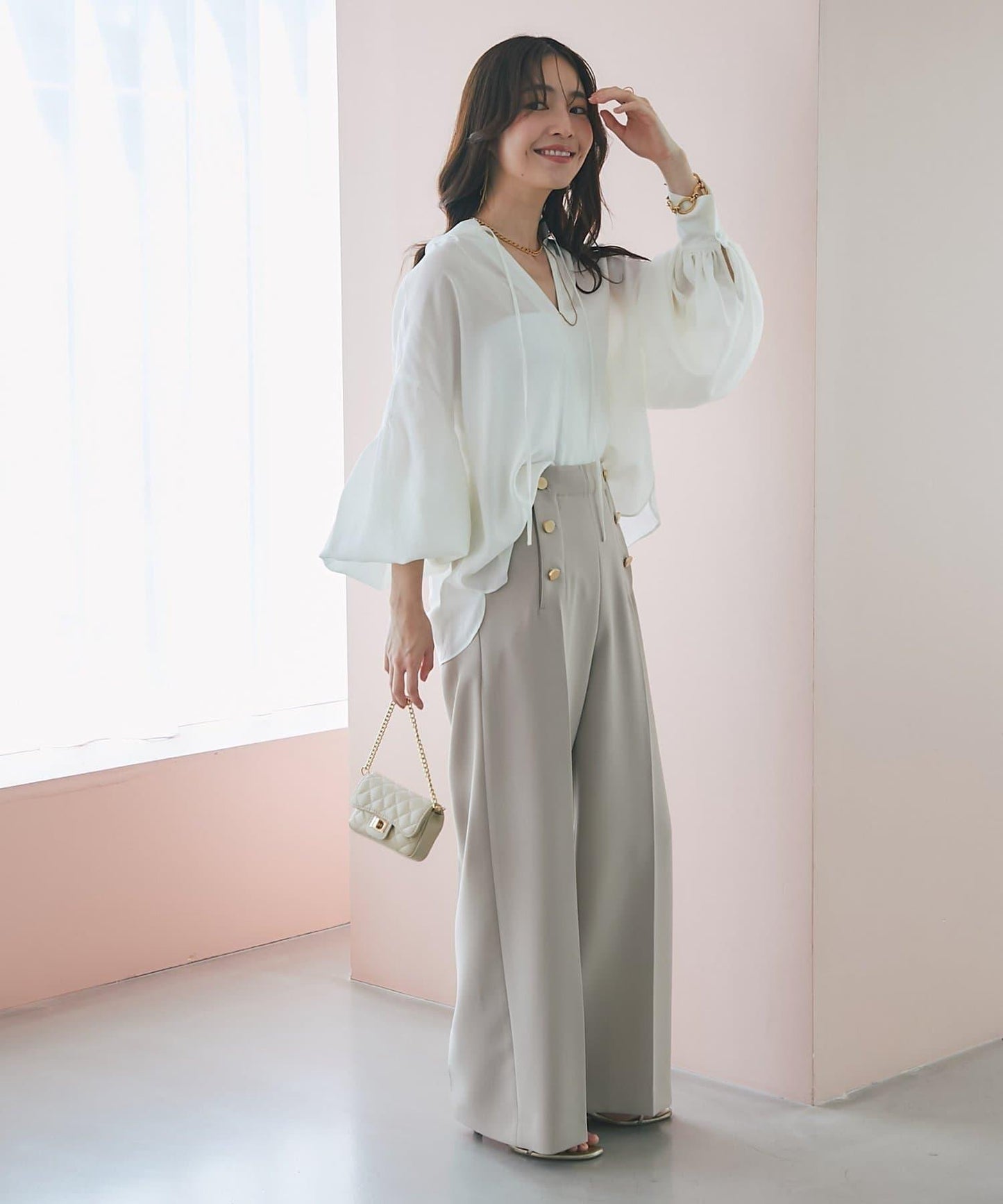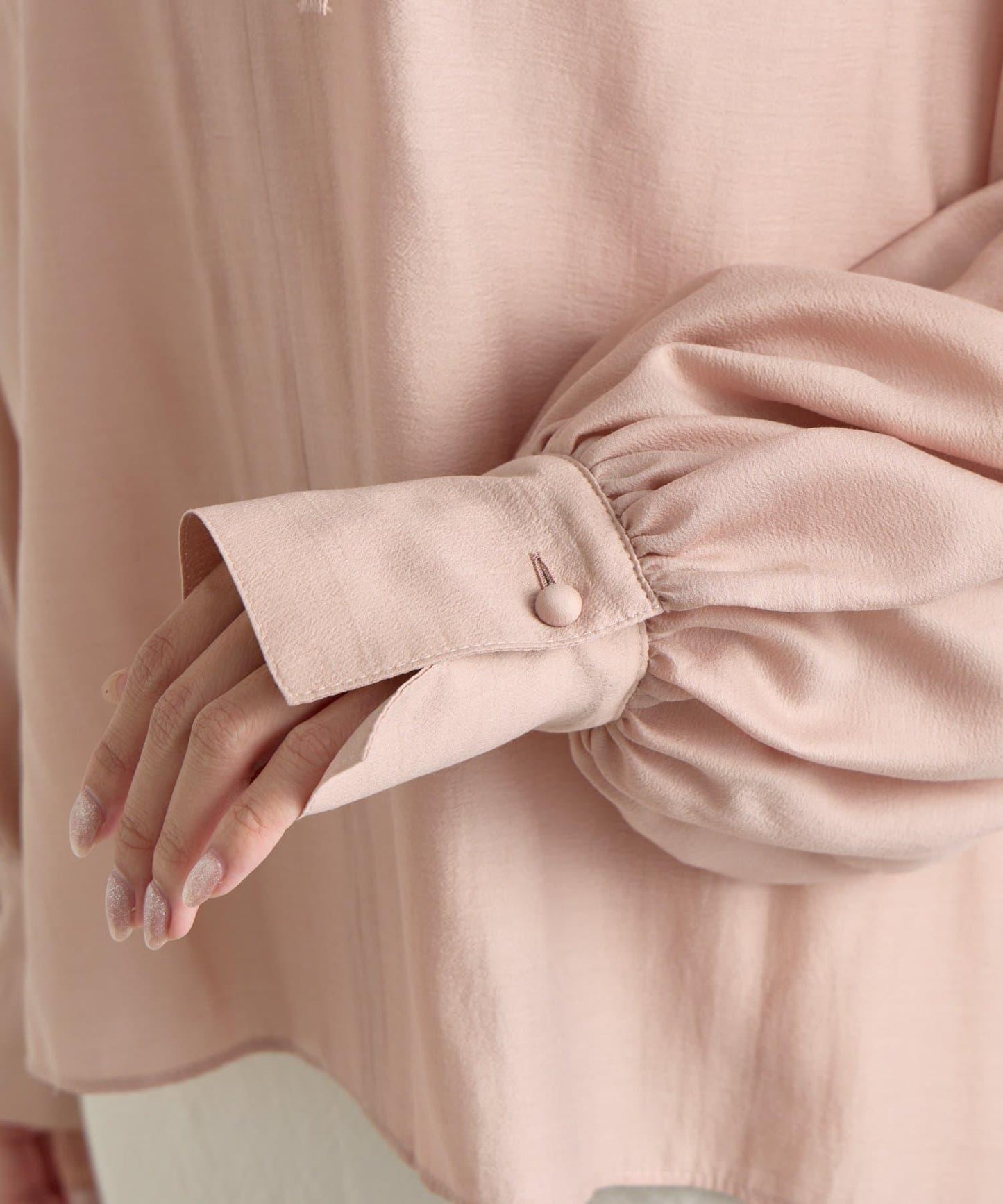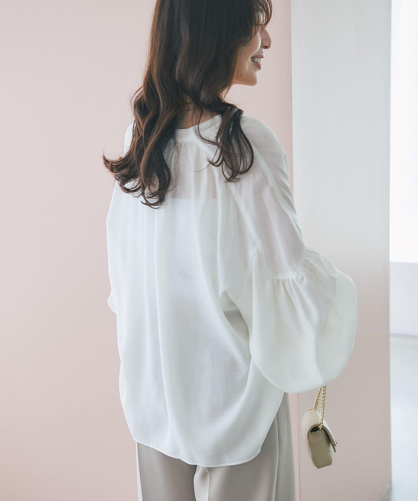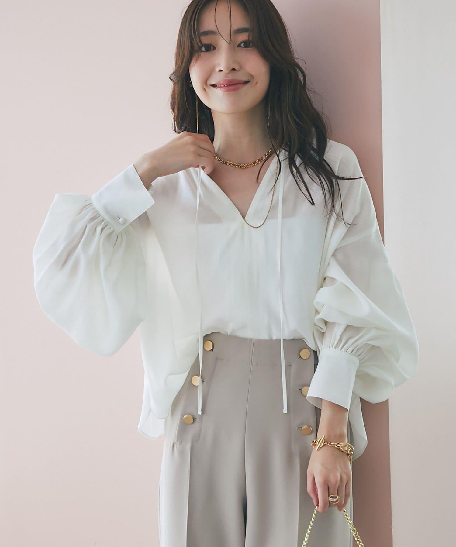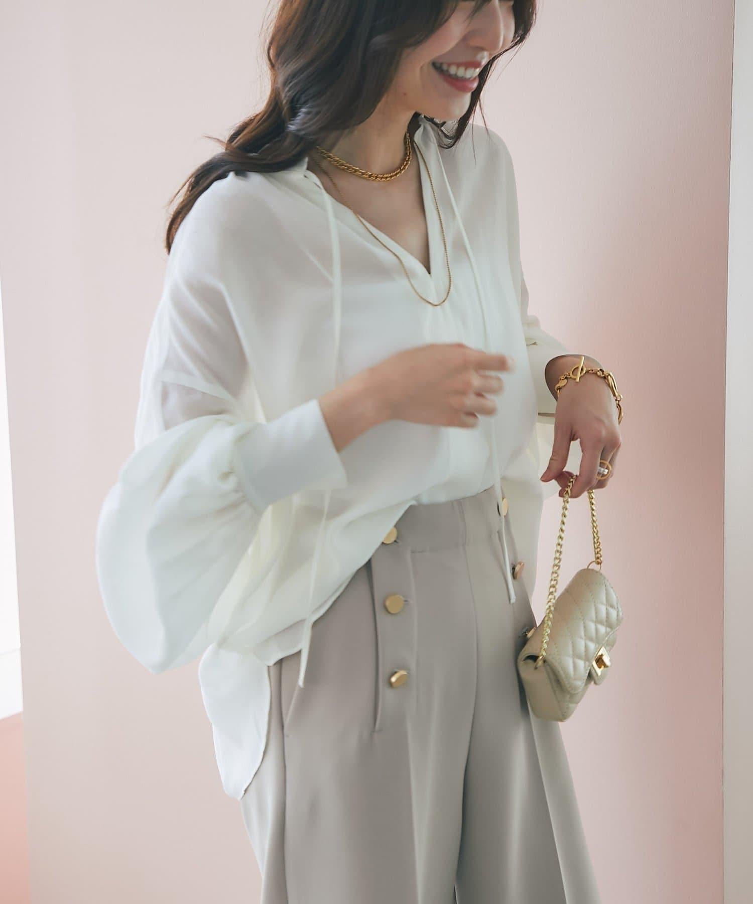 適度透明的氣球袖讓手臂顯得纖細,增添了女性的優雅氣質。