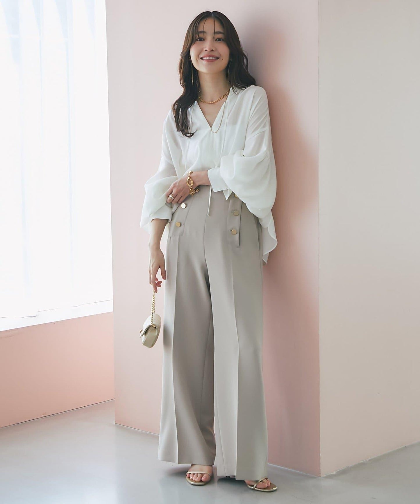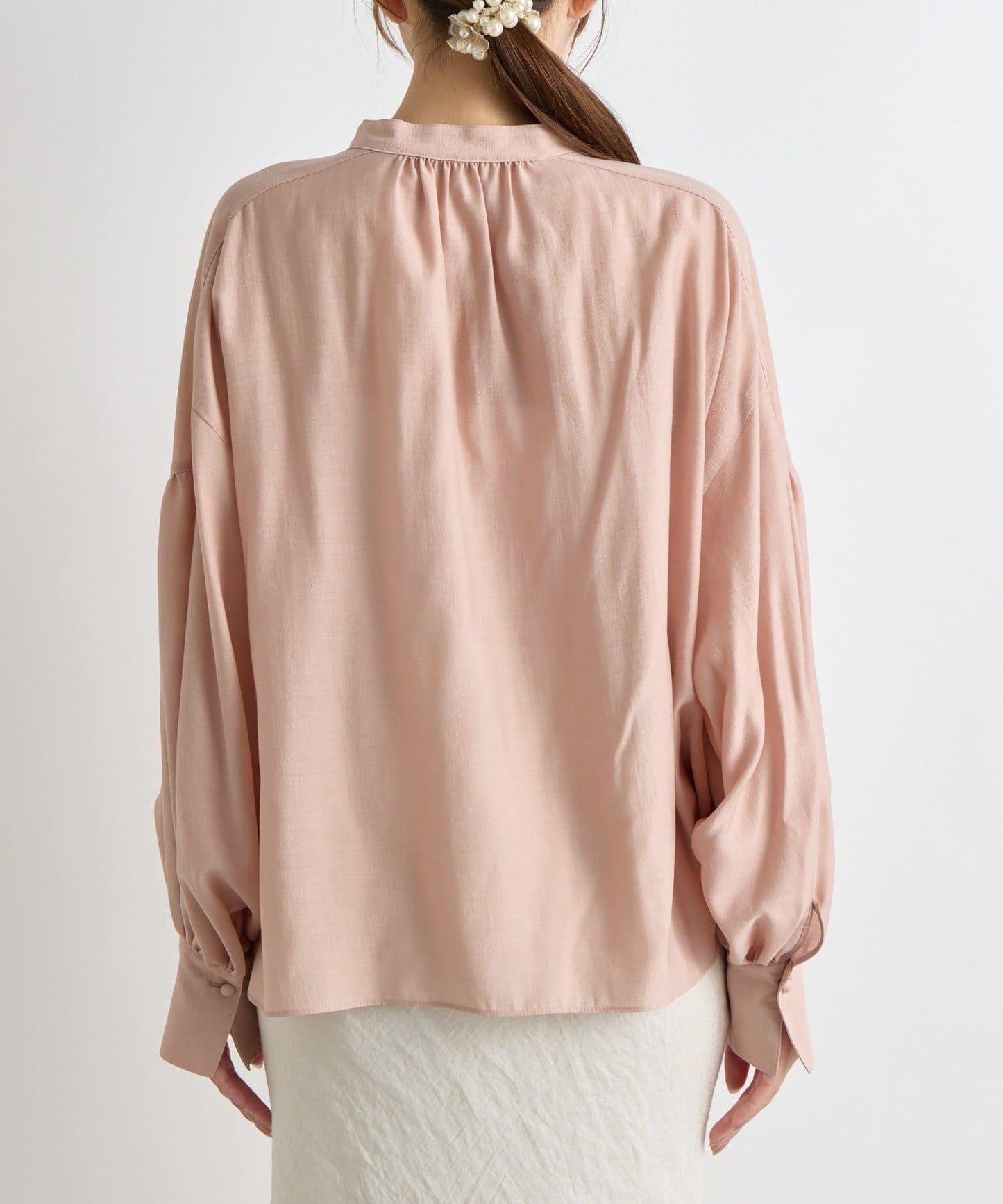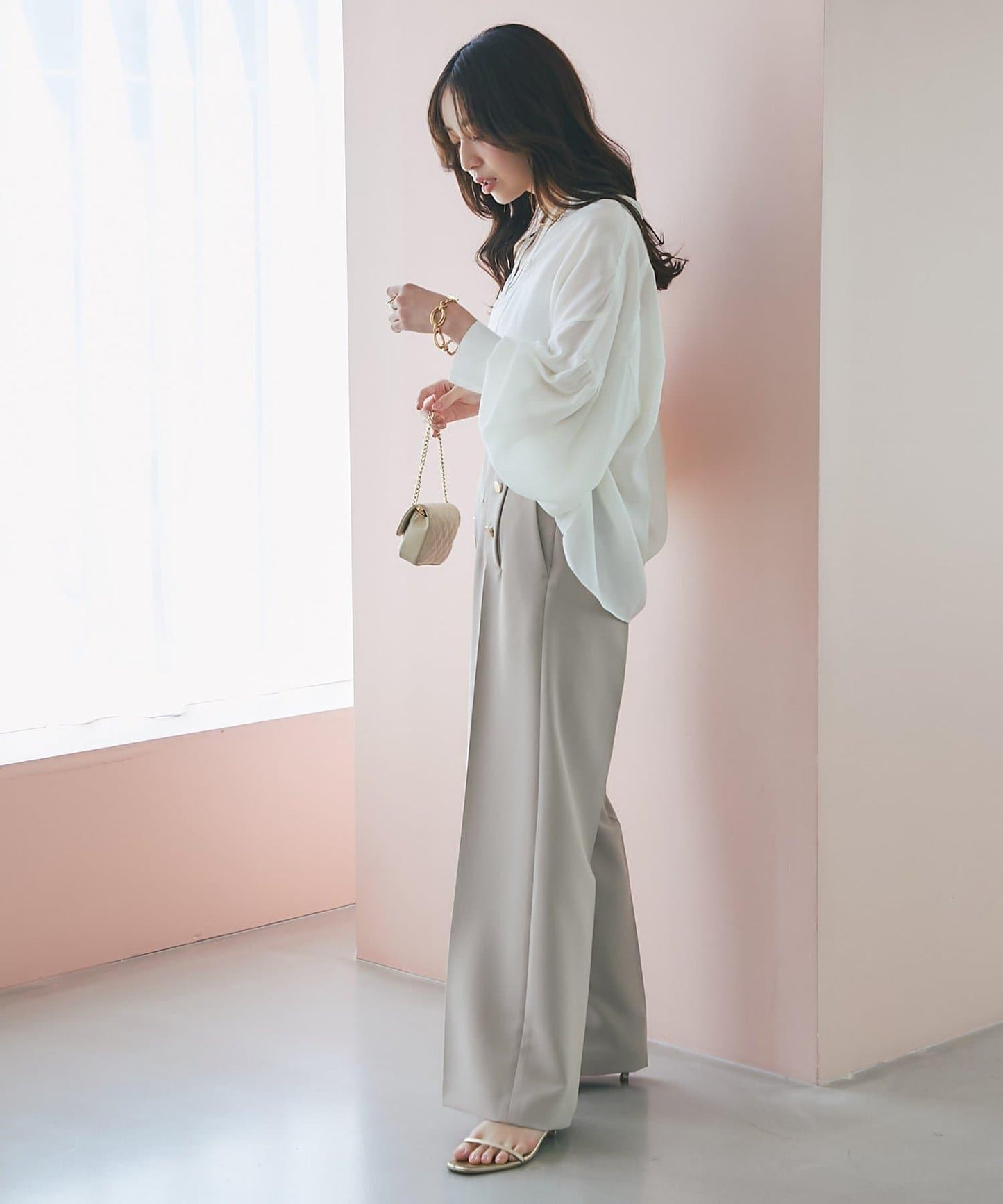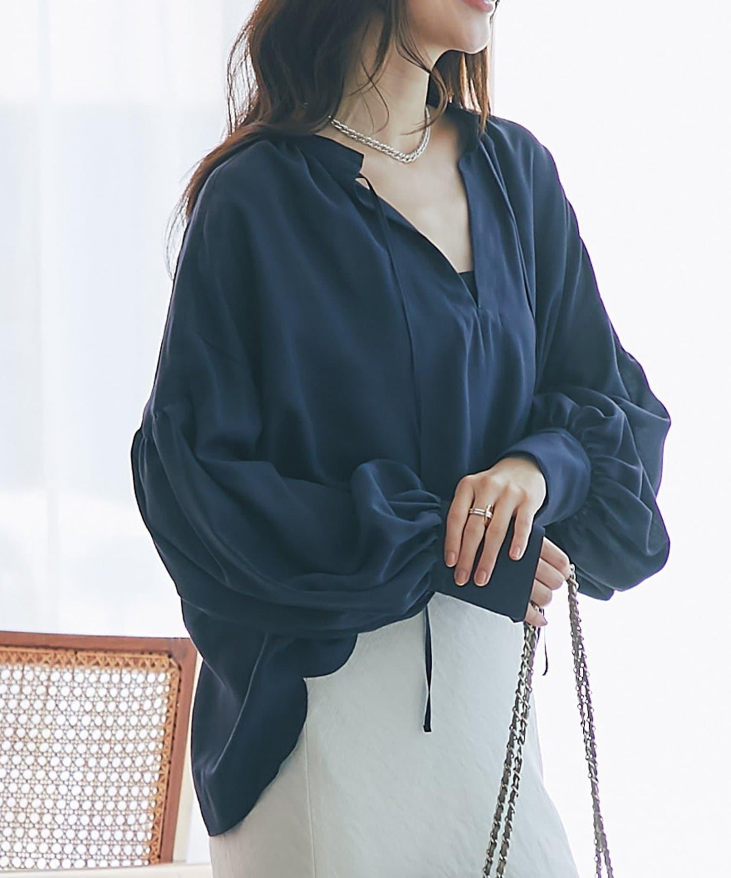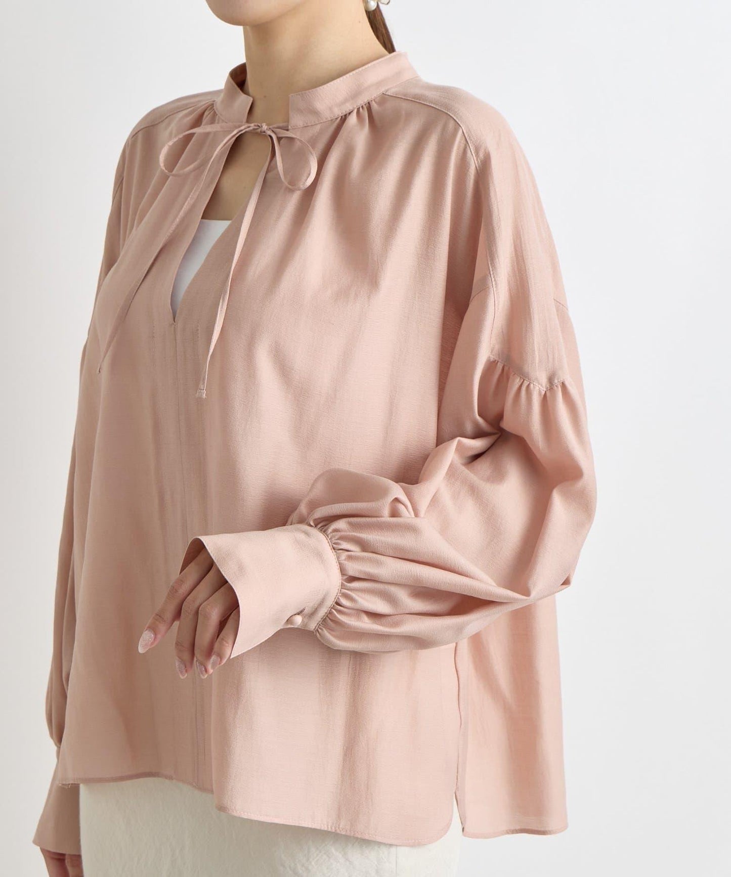 適度透明的氣球袖讓手臂顯得纖細,增添了女性的優雅氣質。