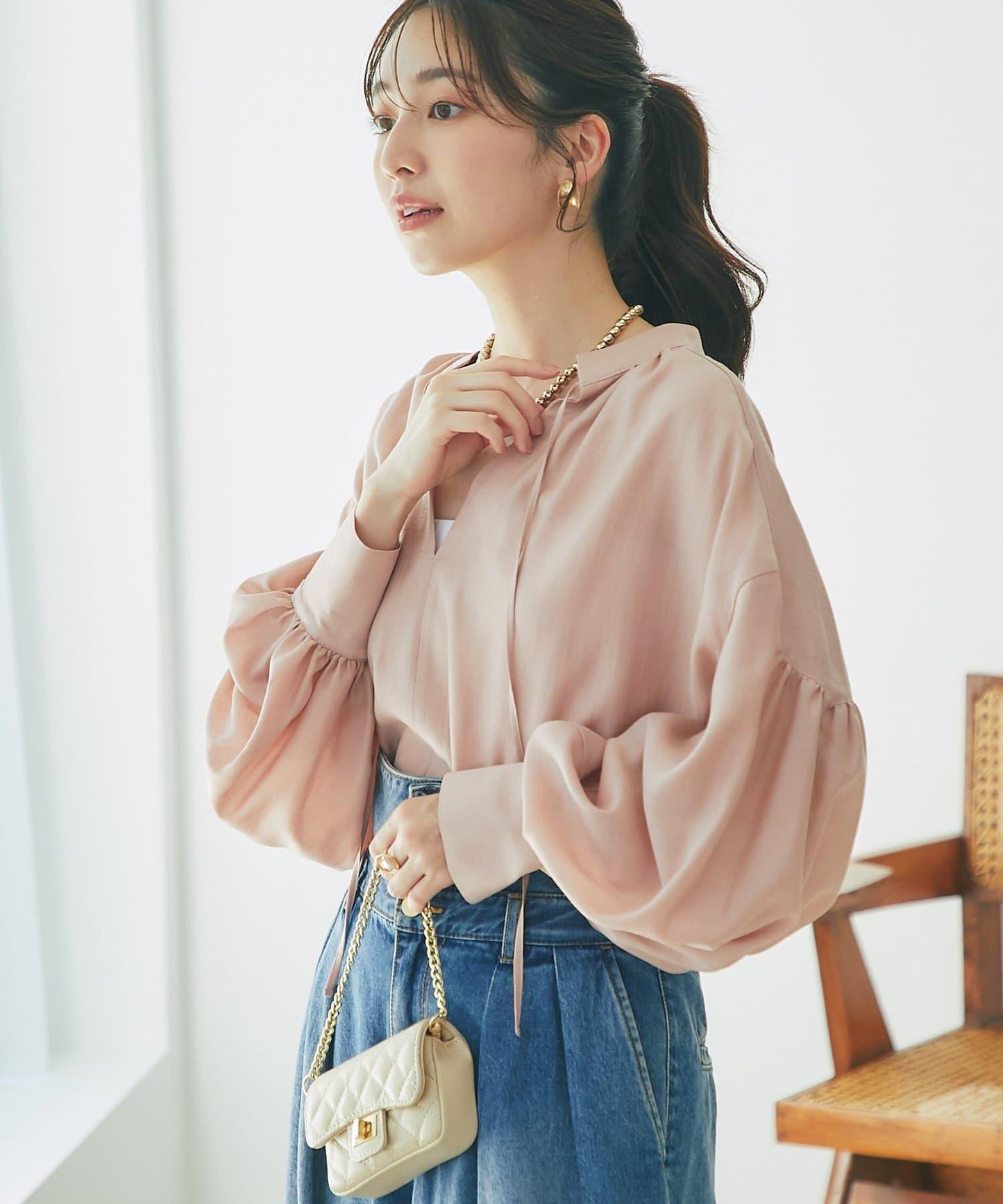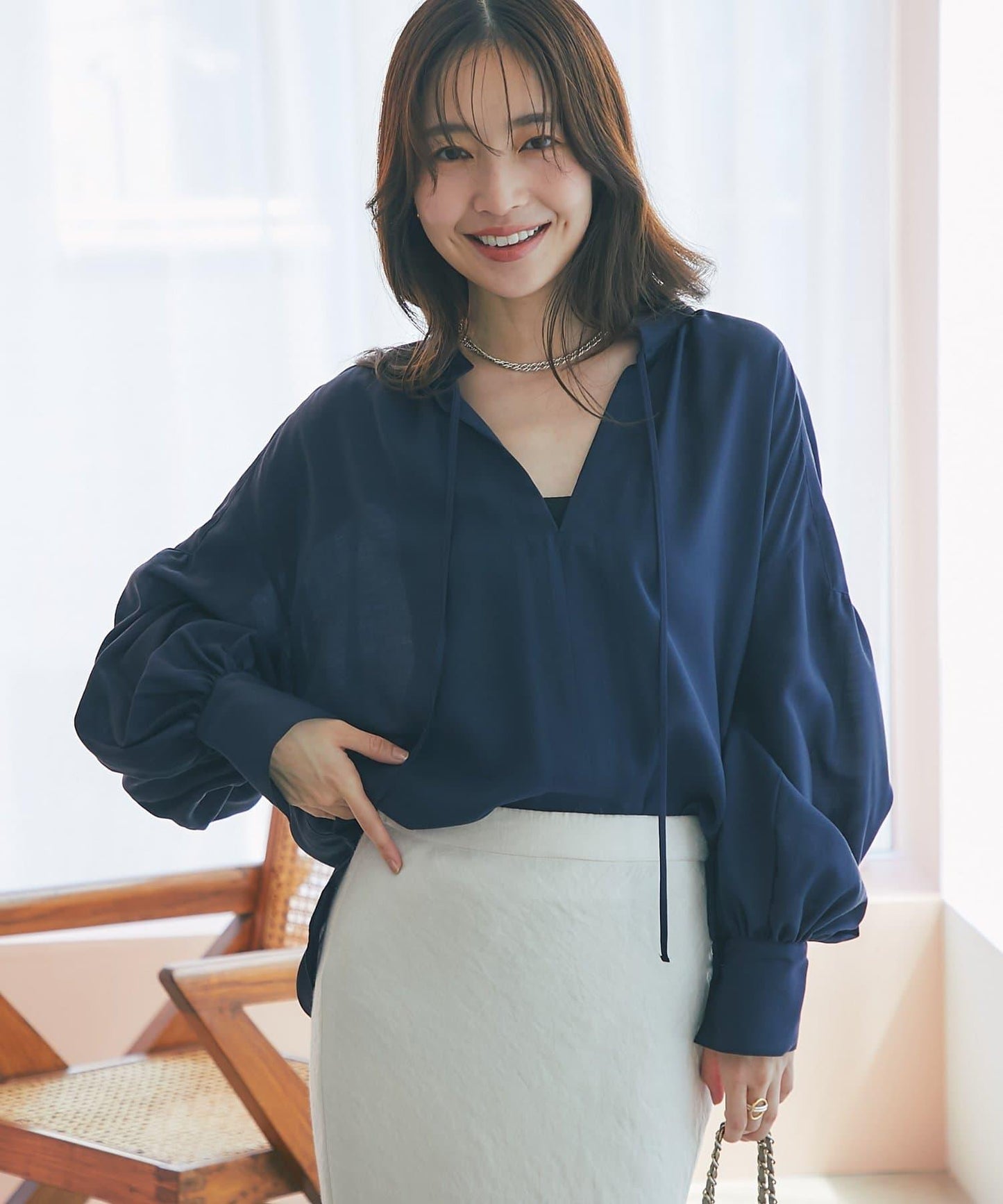 建議將緞帶垂下,穿出寬鬆感。
