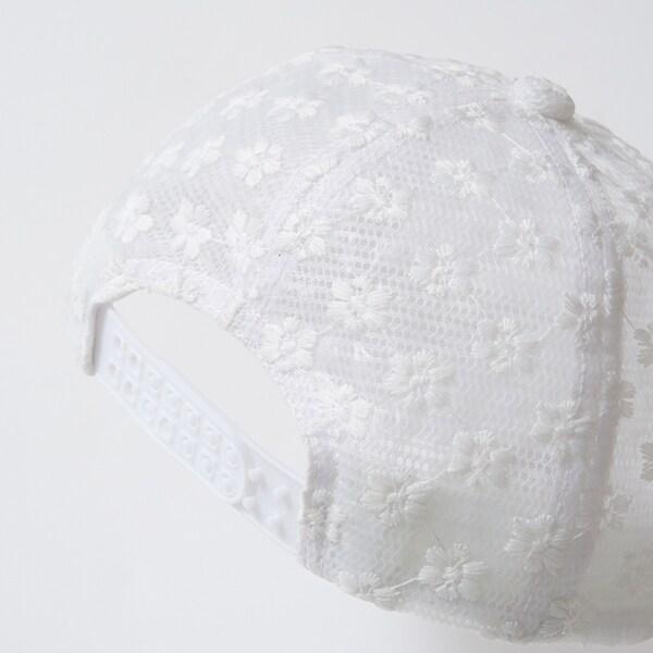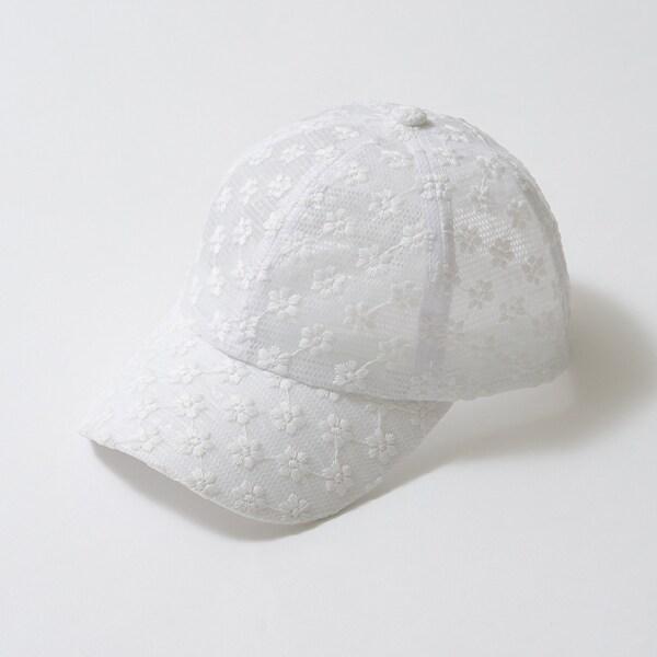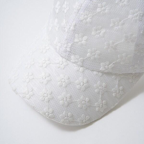 透明的材質和同色系的花朵刺繡是這款帽子的亮點。