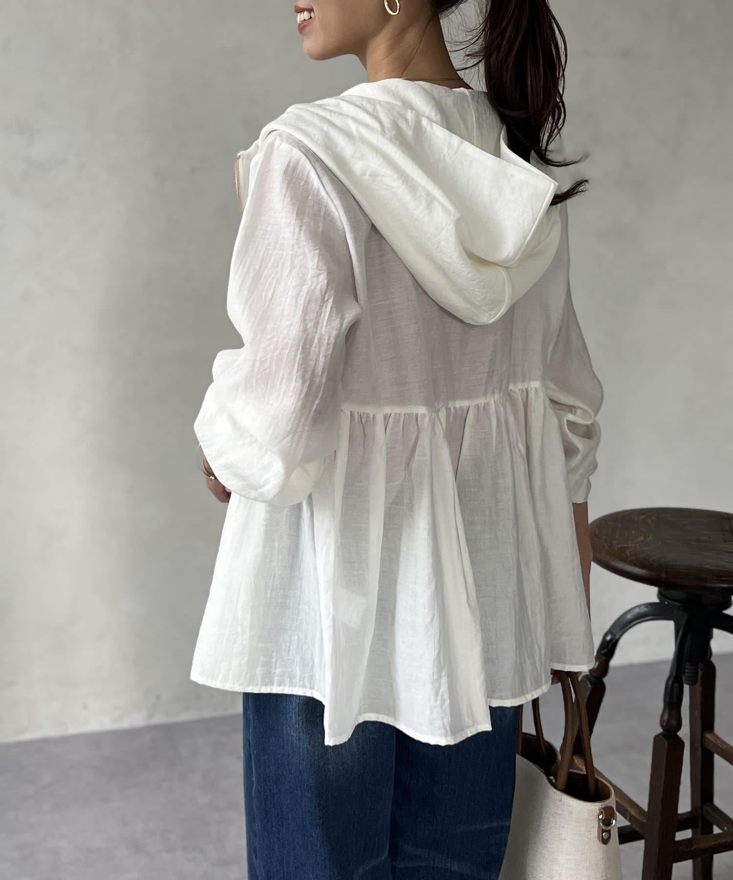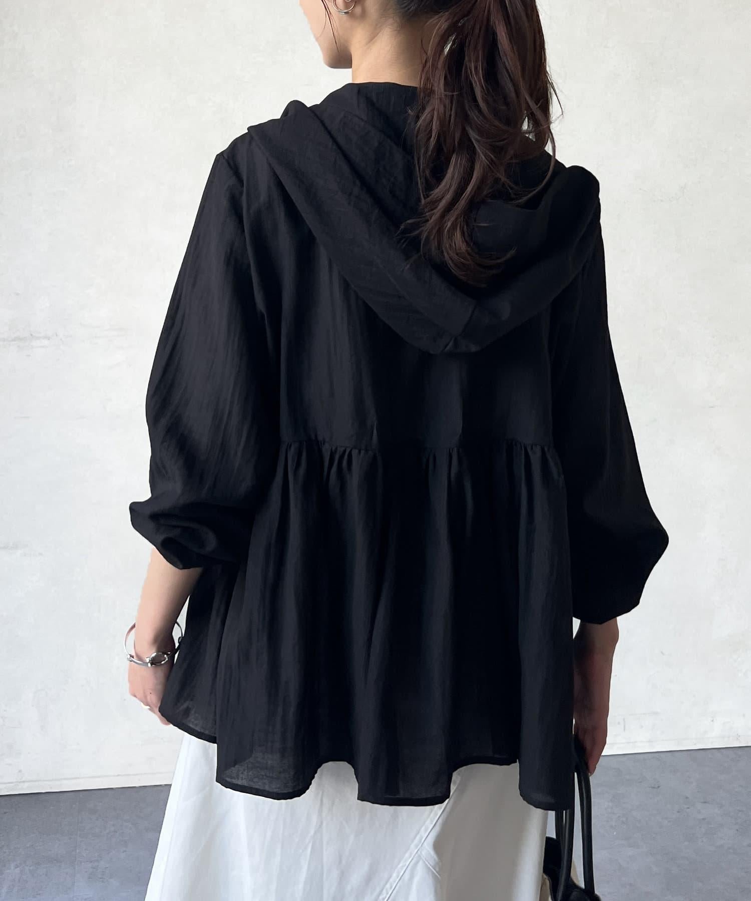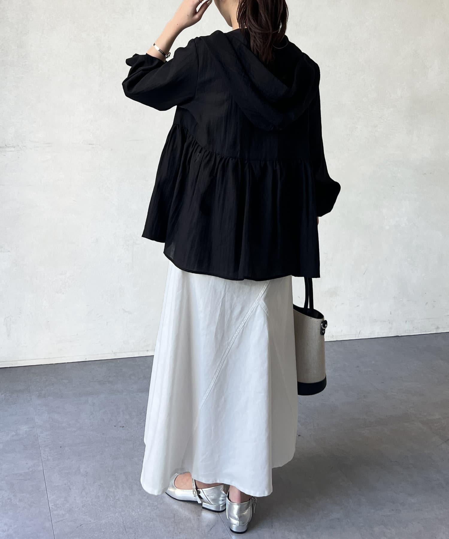 這款罩衫採用女性化的蓬蓬裙廓形,隨意地遮蓋住身材。