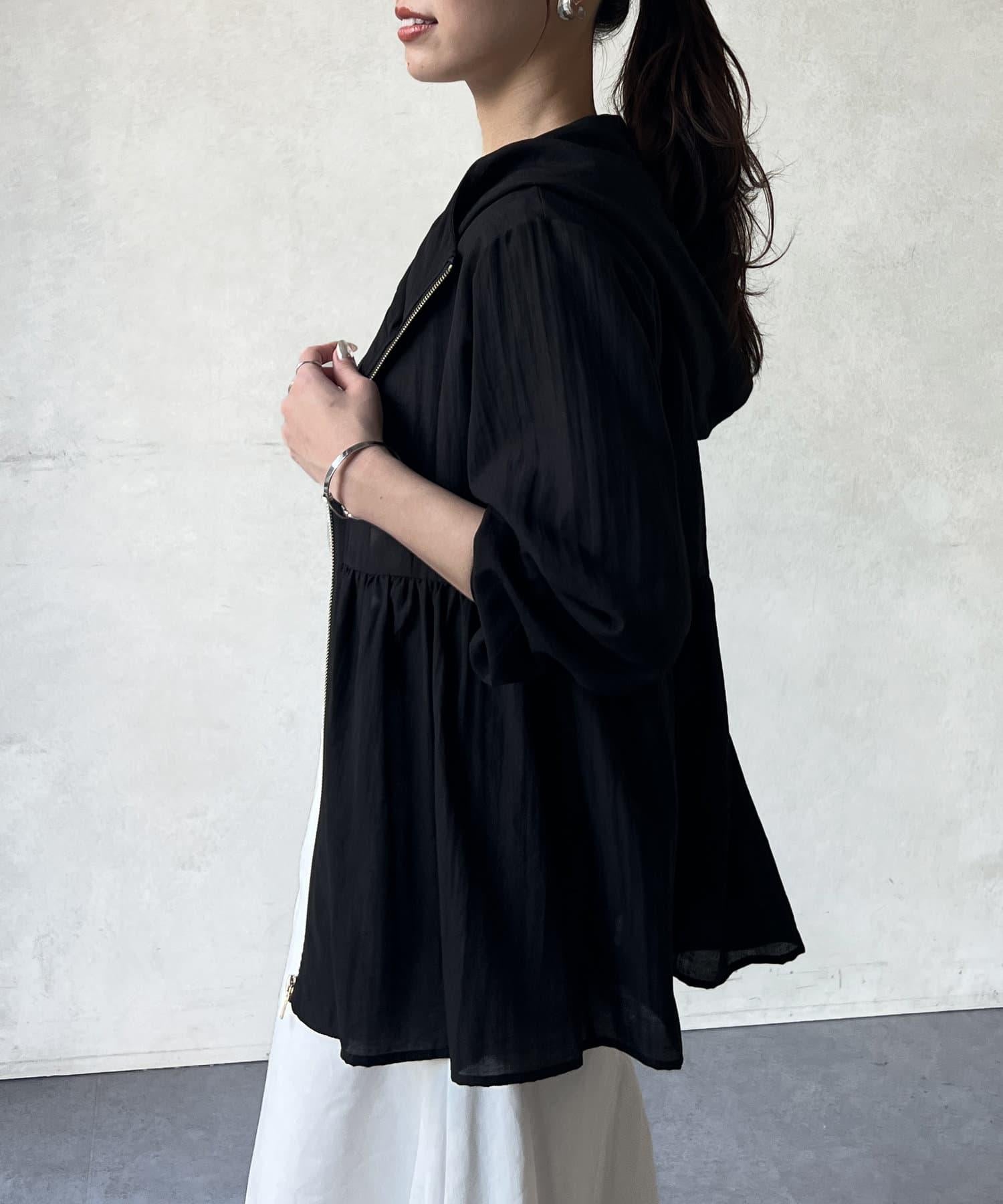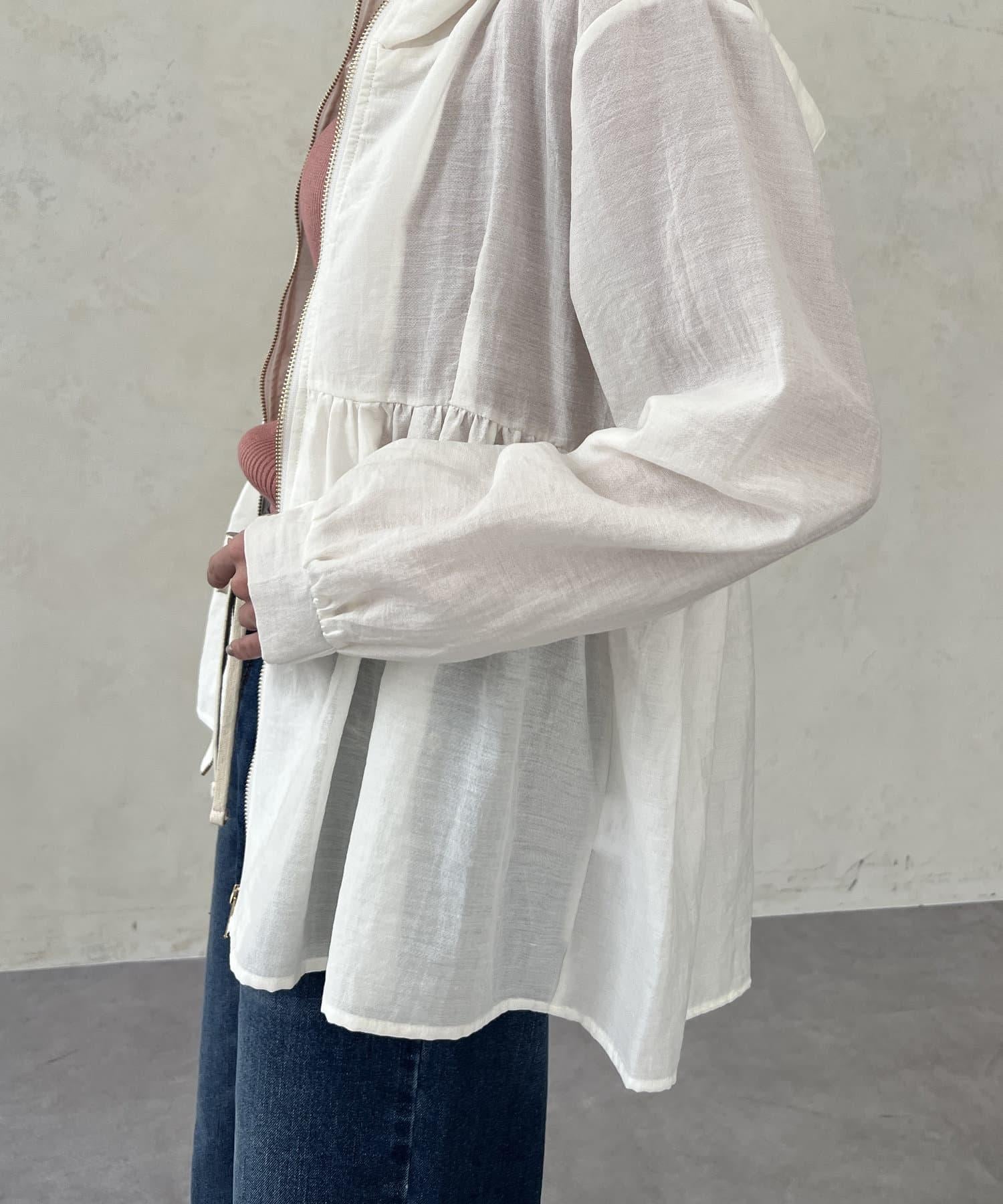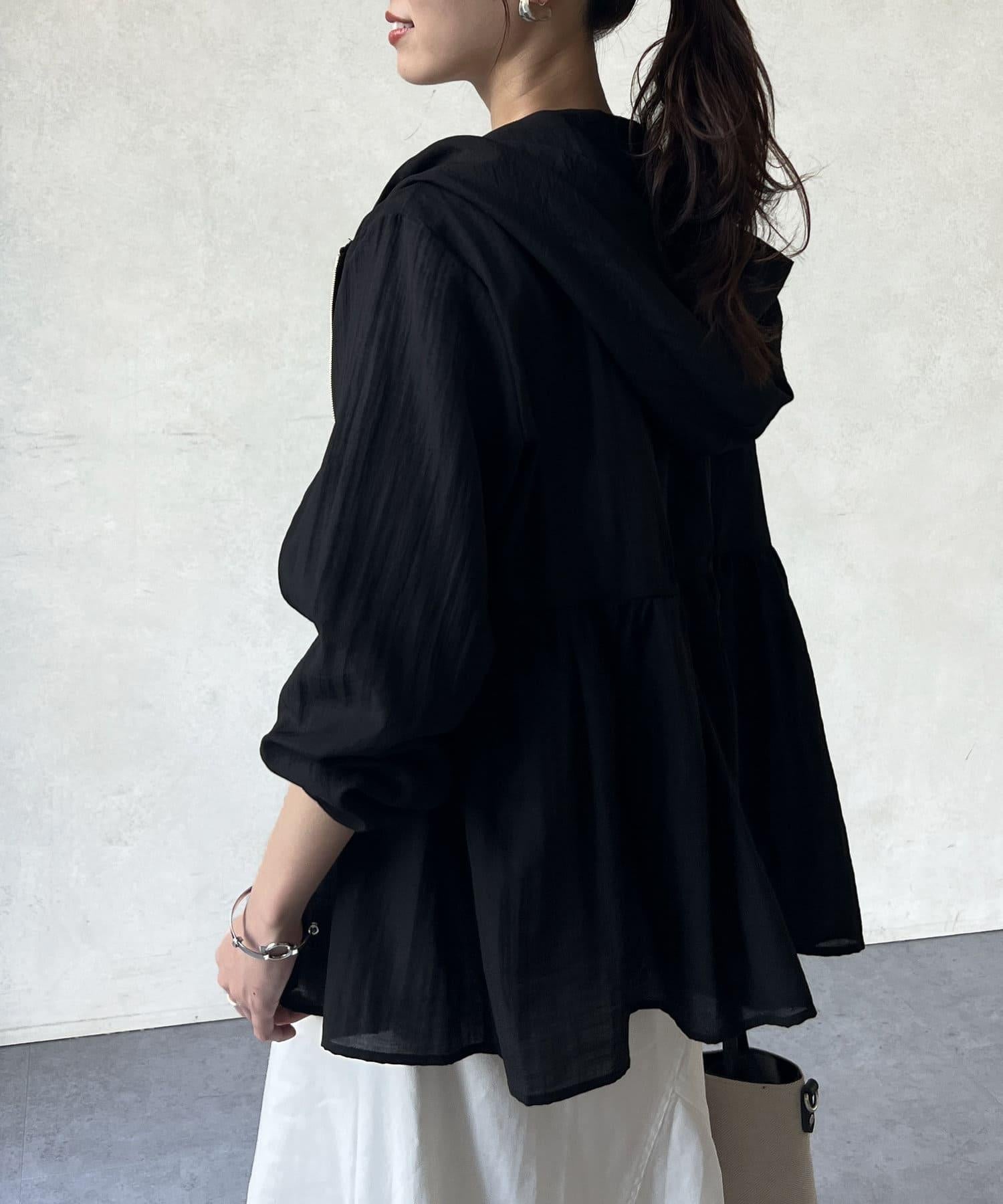 這款罩衫採用女性化的蓬蓬裙廓形,隨意地遮蓋住身材。