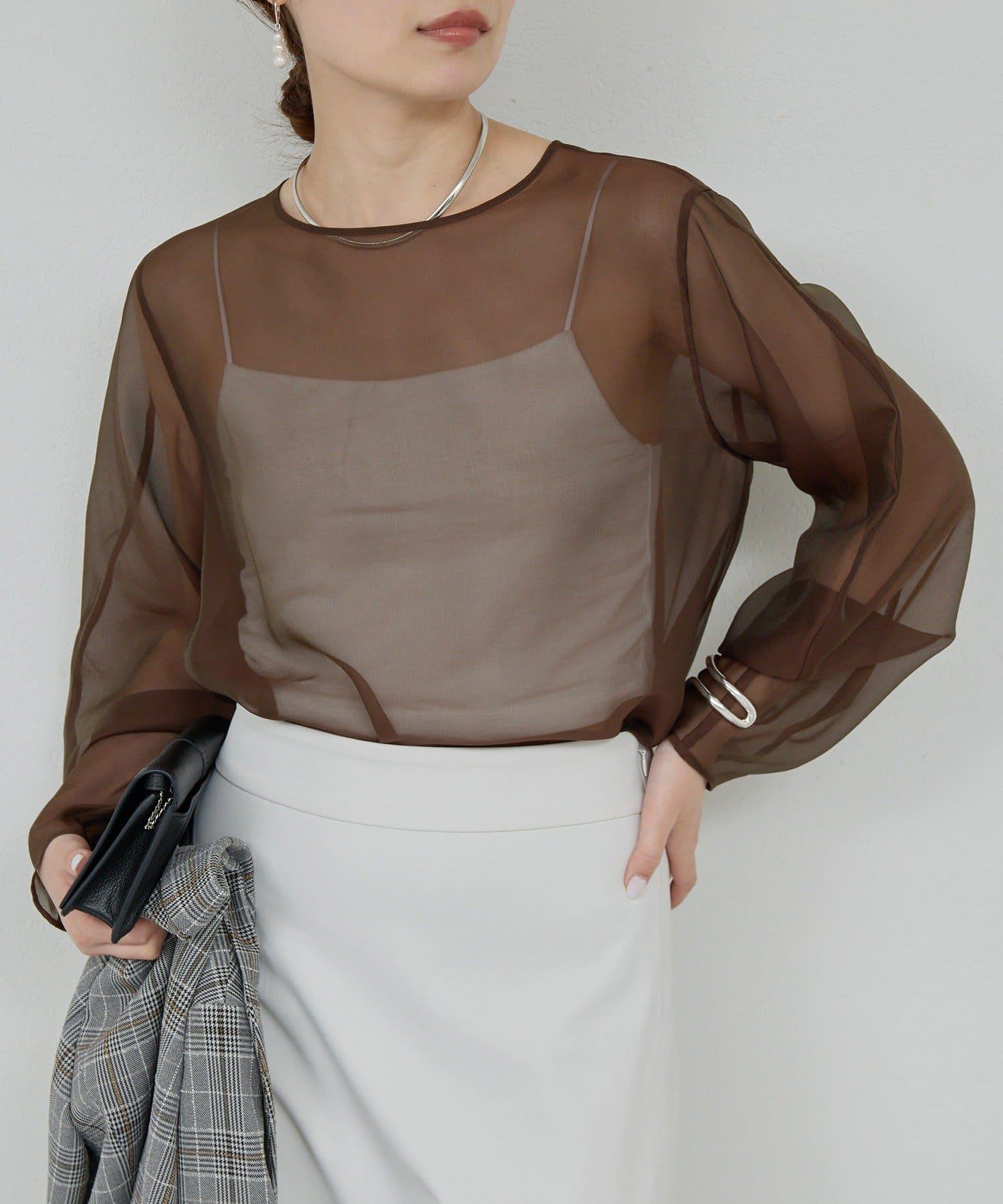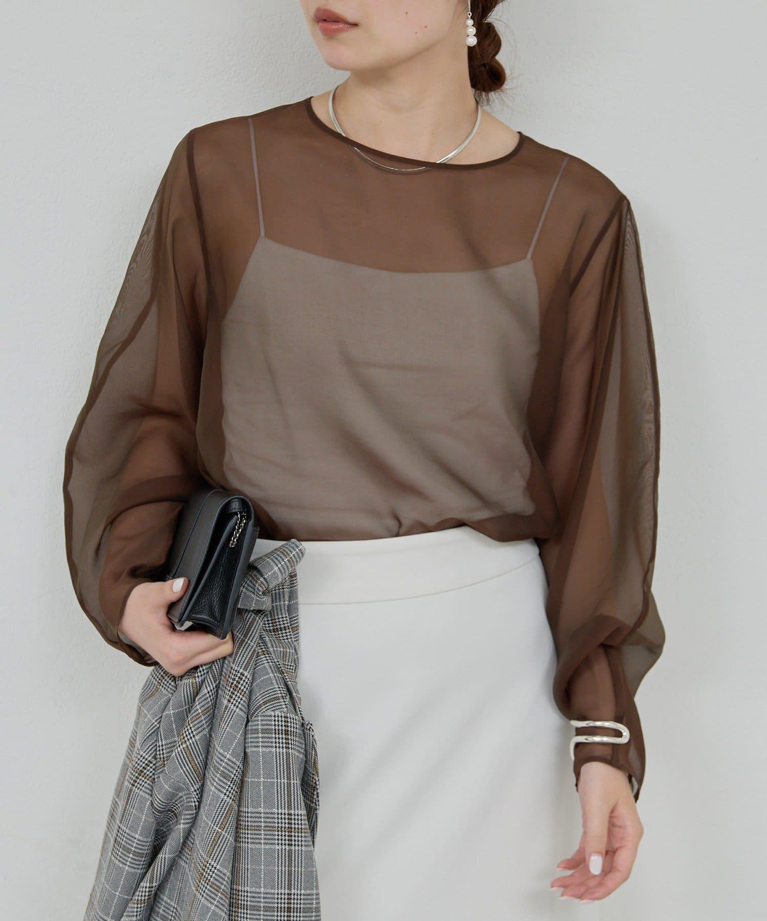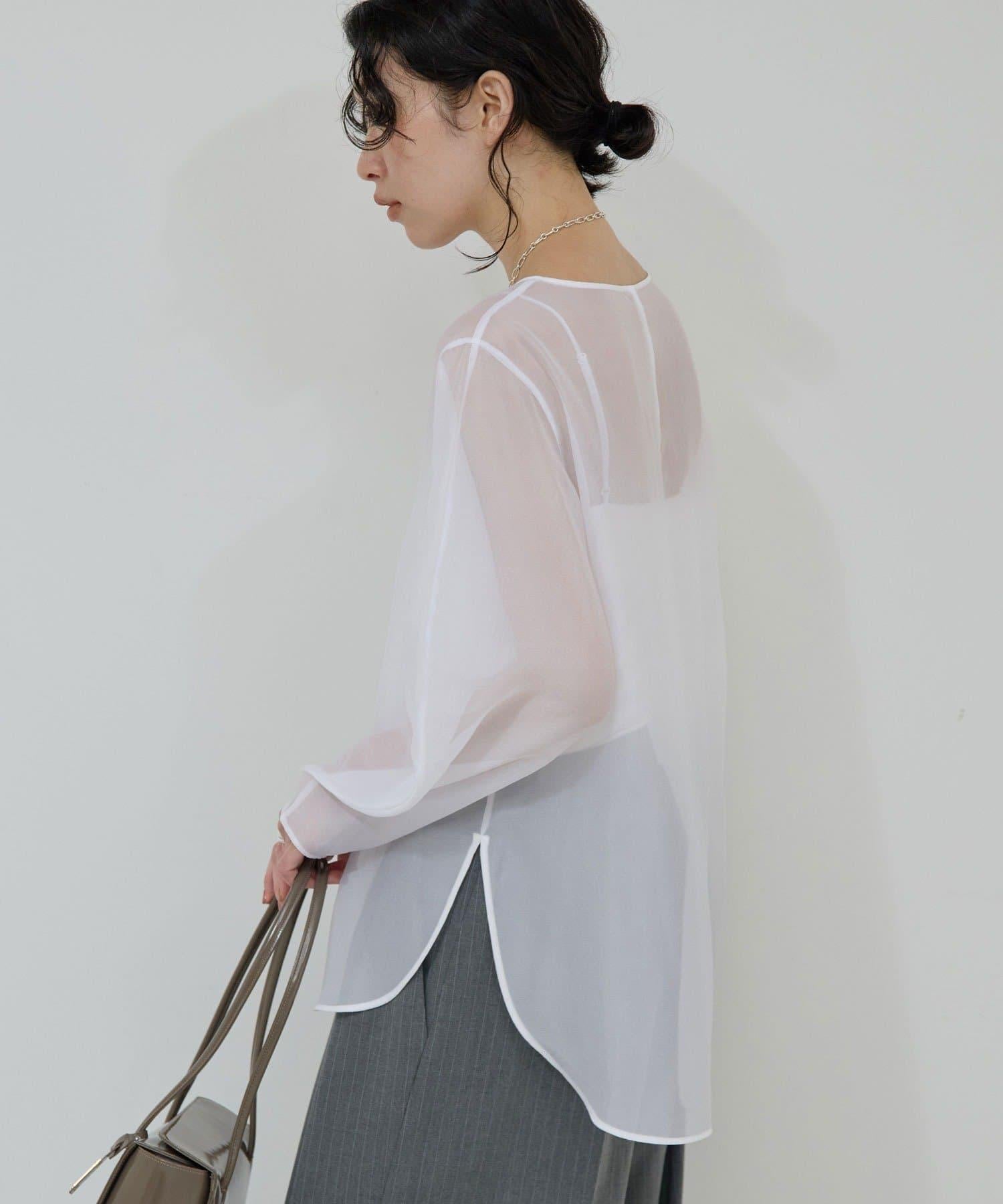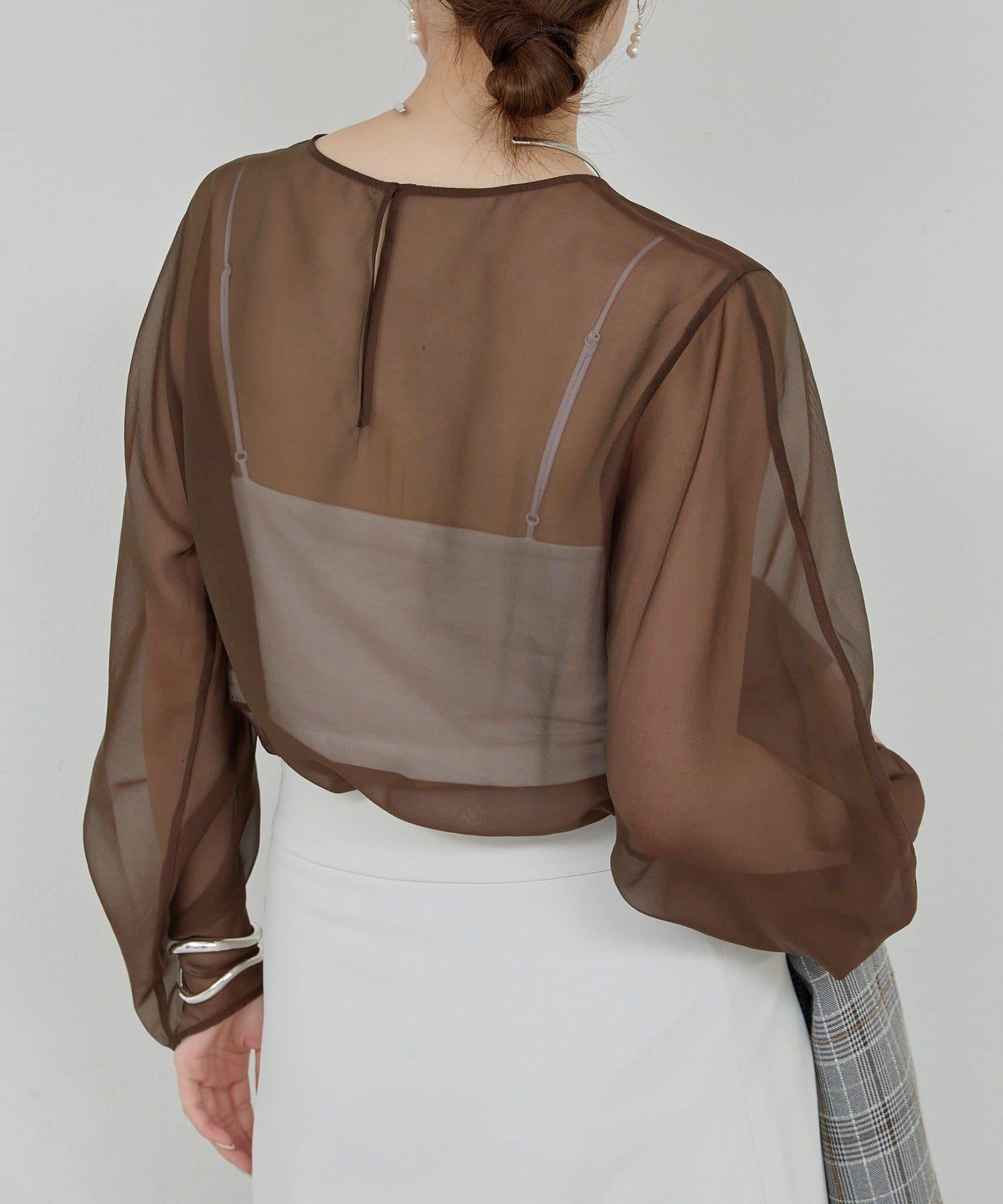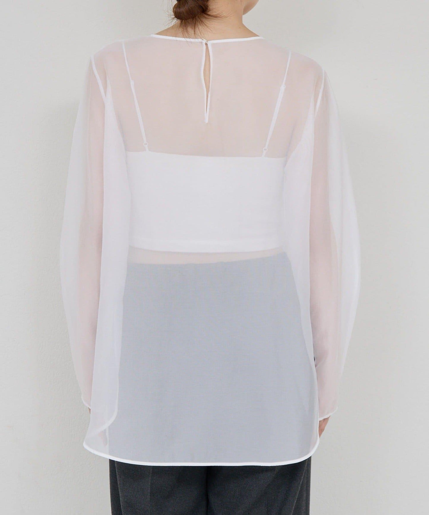透視荷葉邊袖上衣