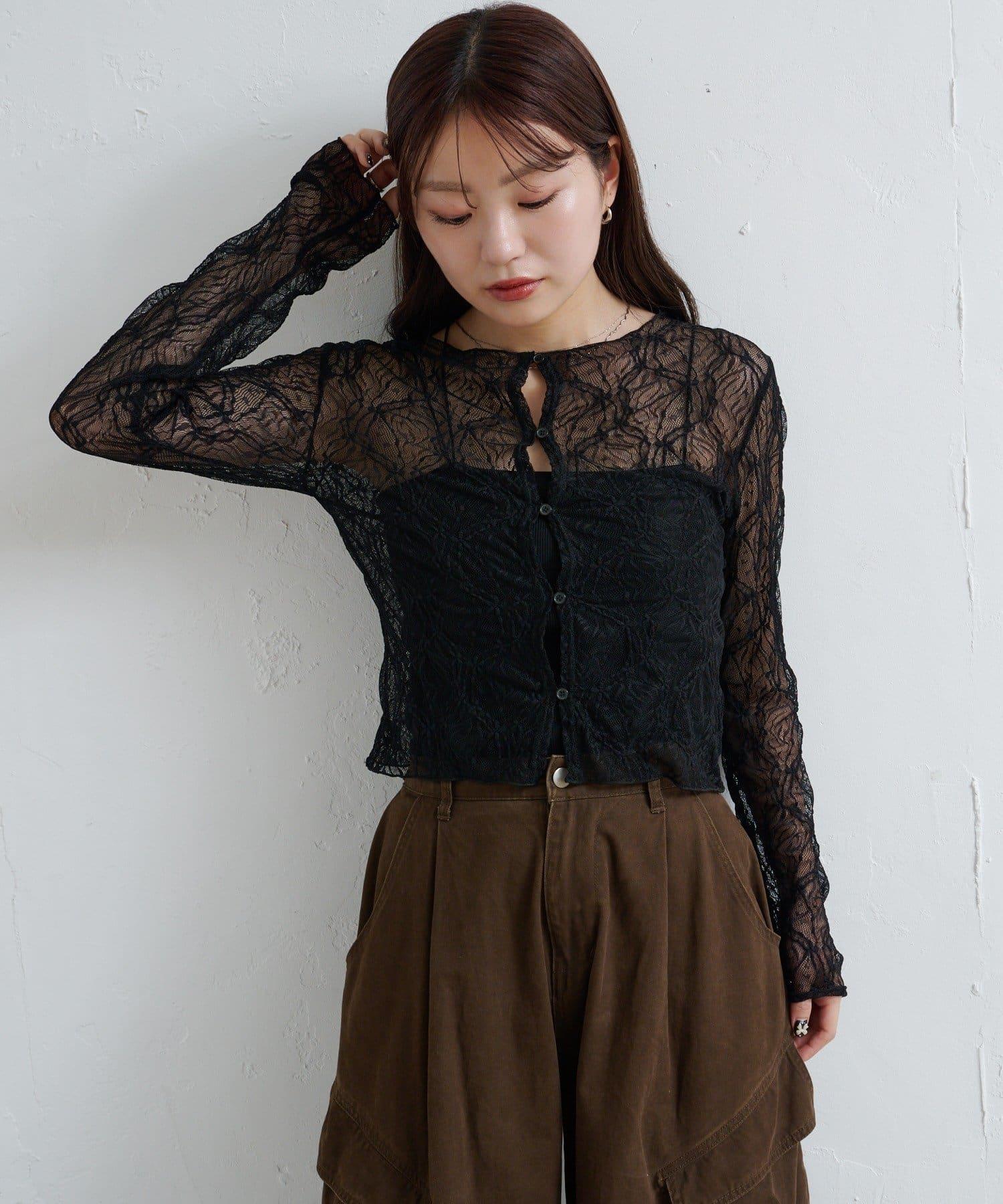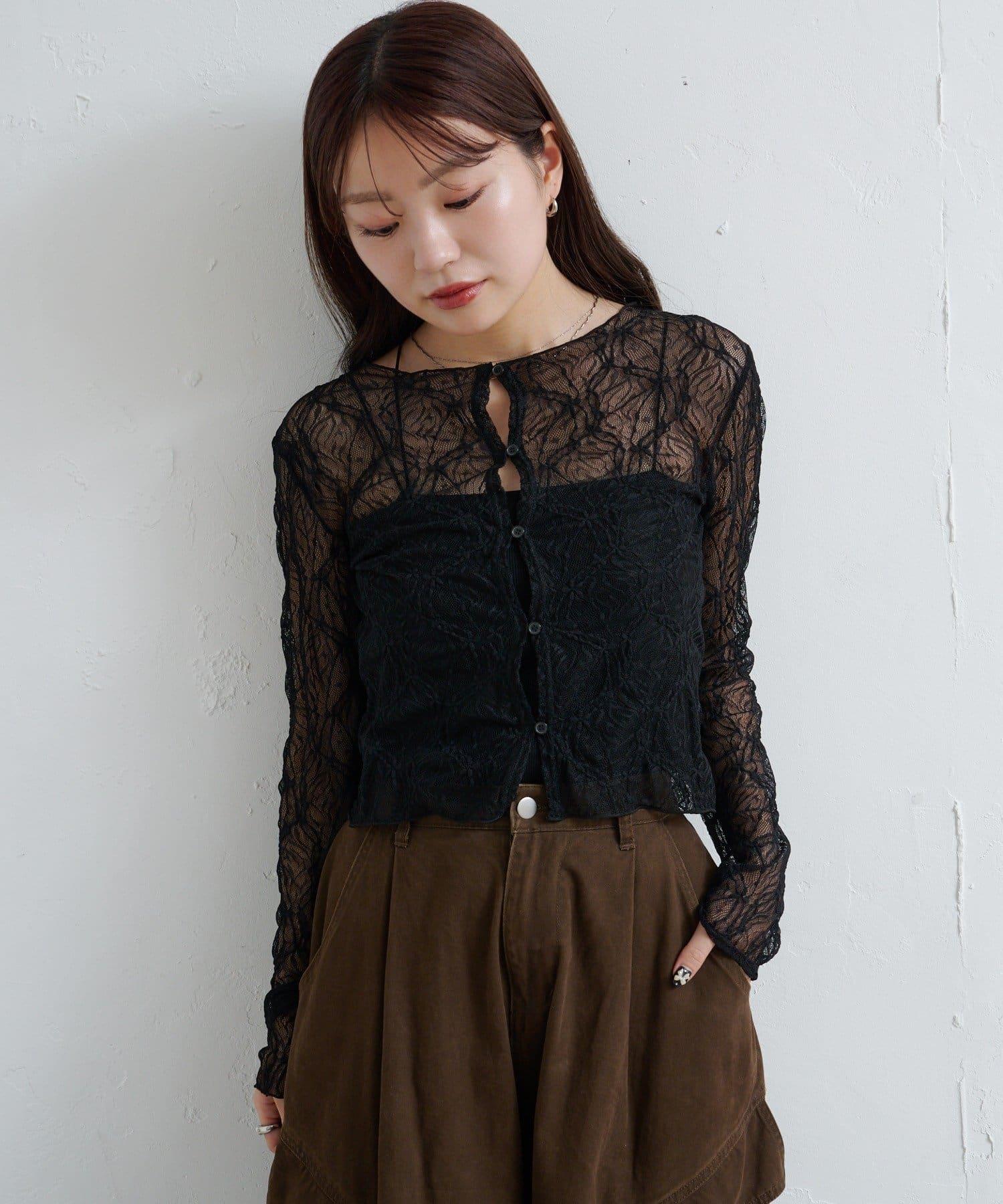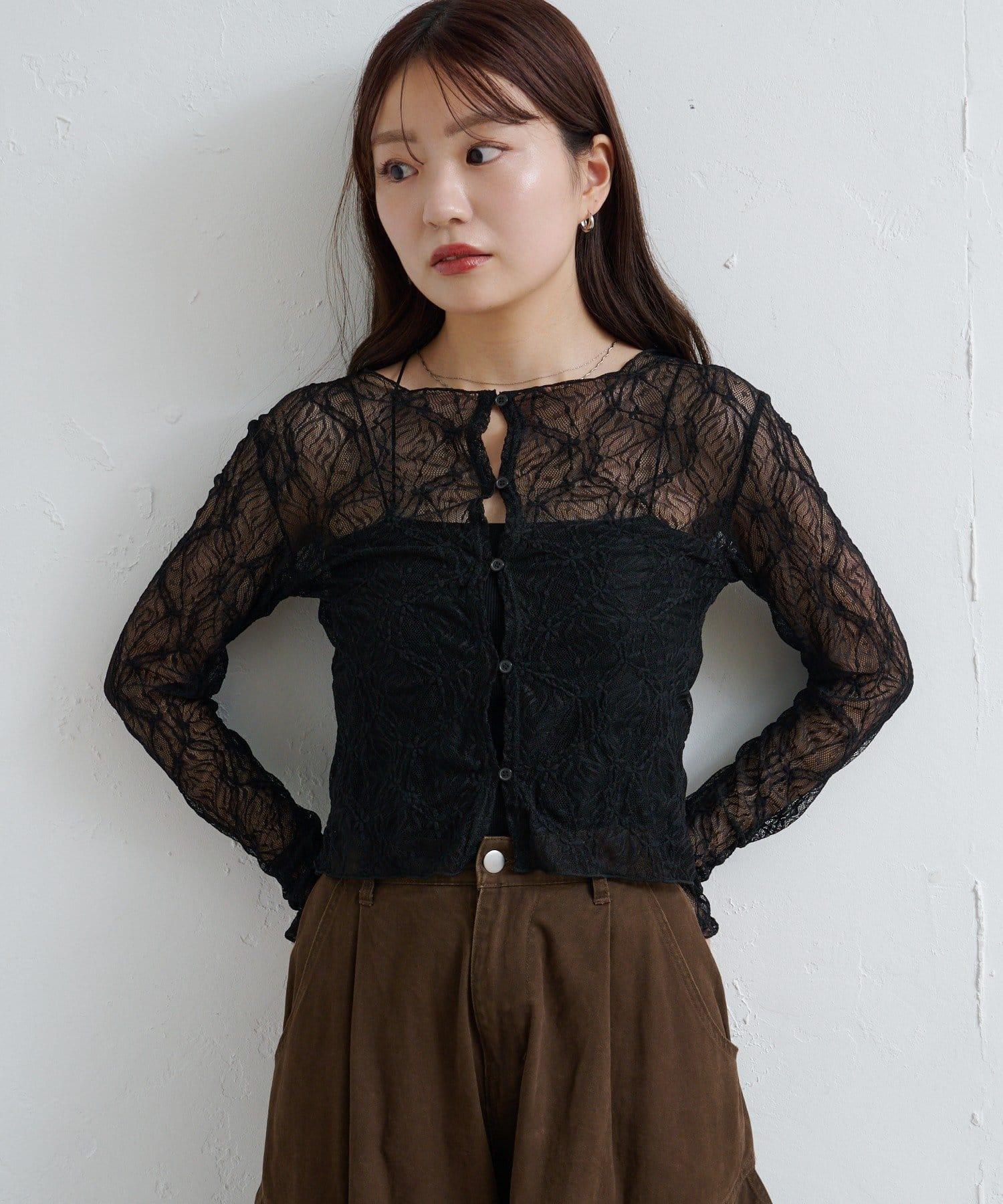 預約商品透視蕾絲兩穿開衫