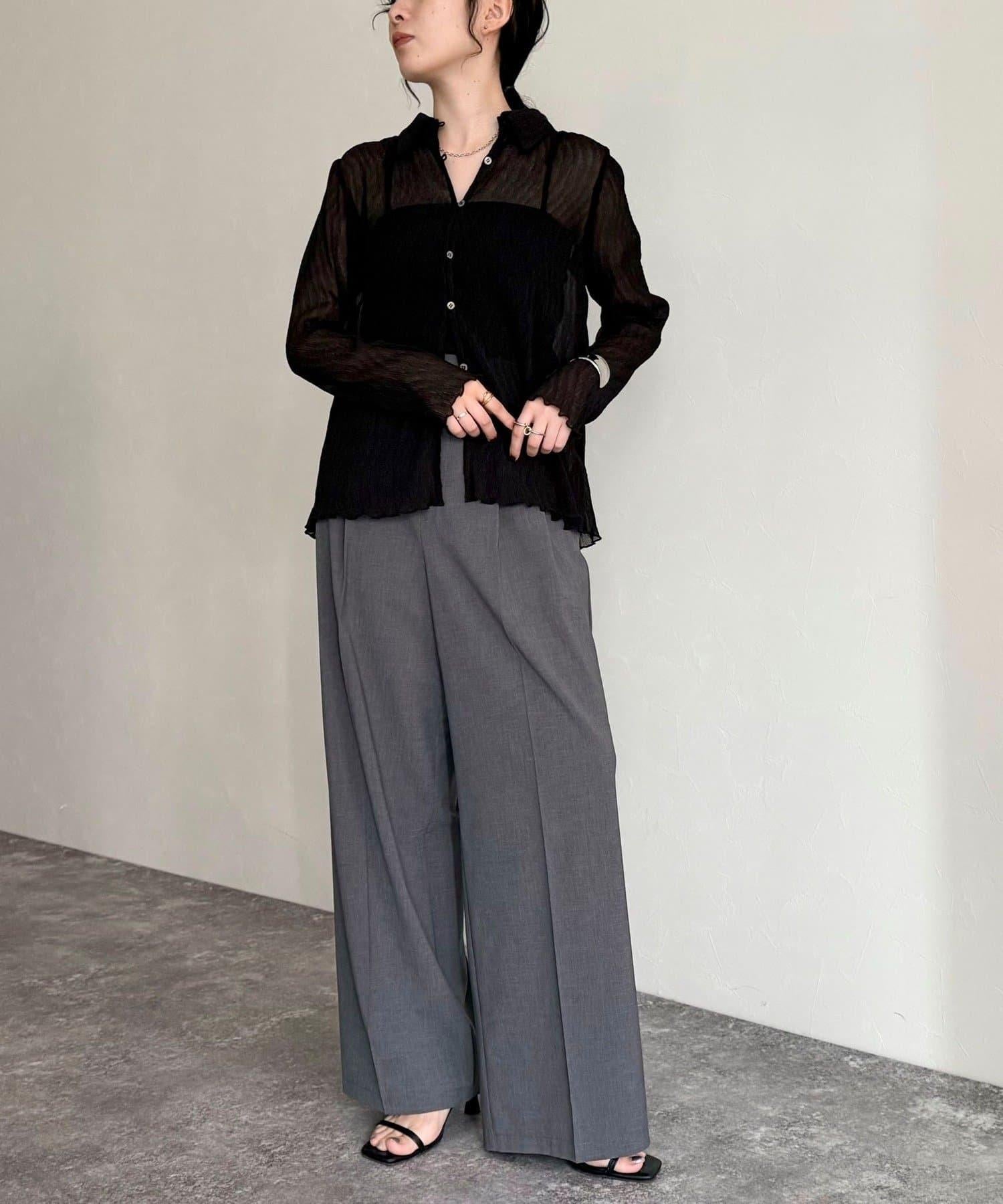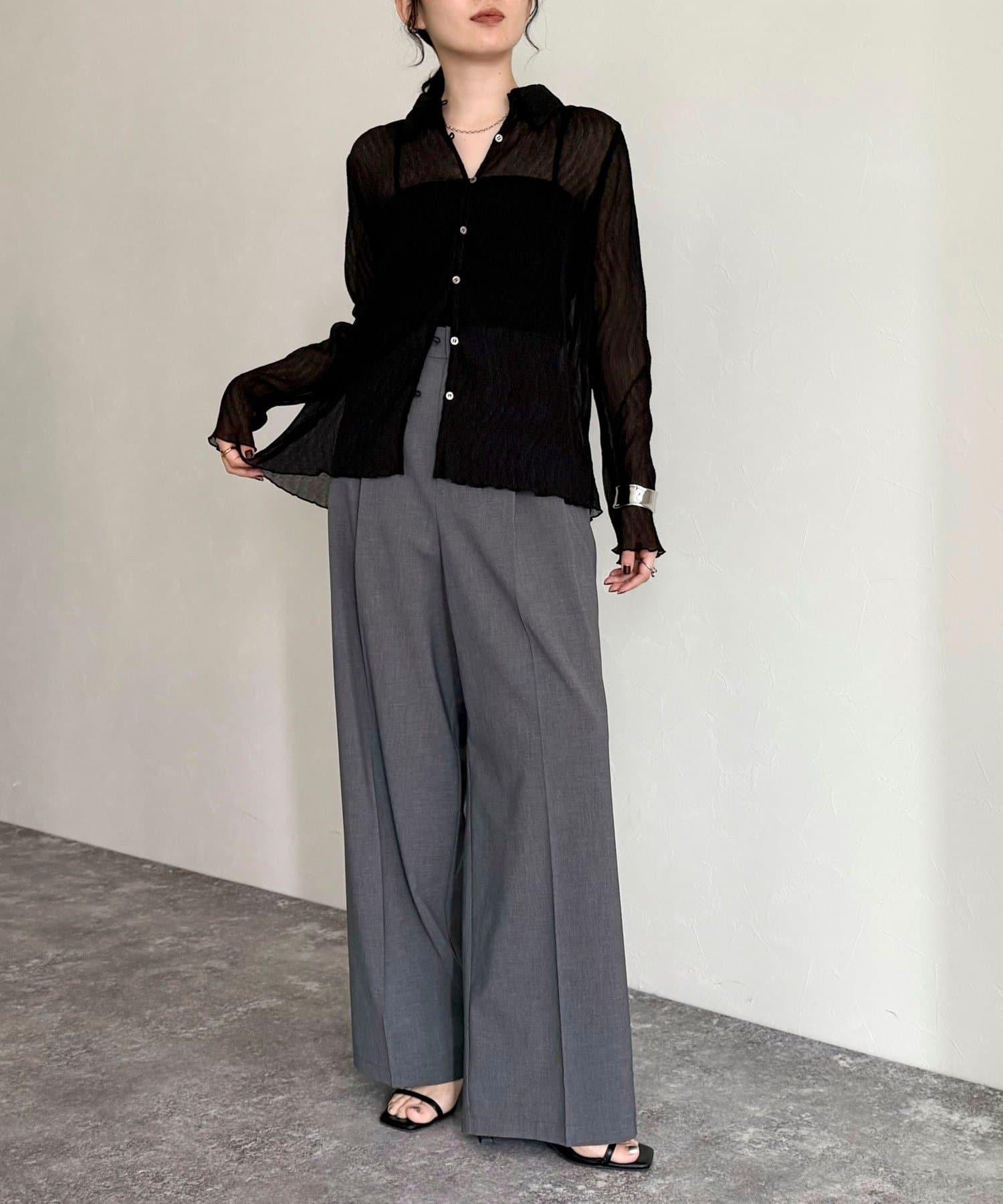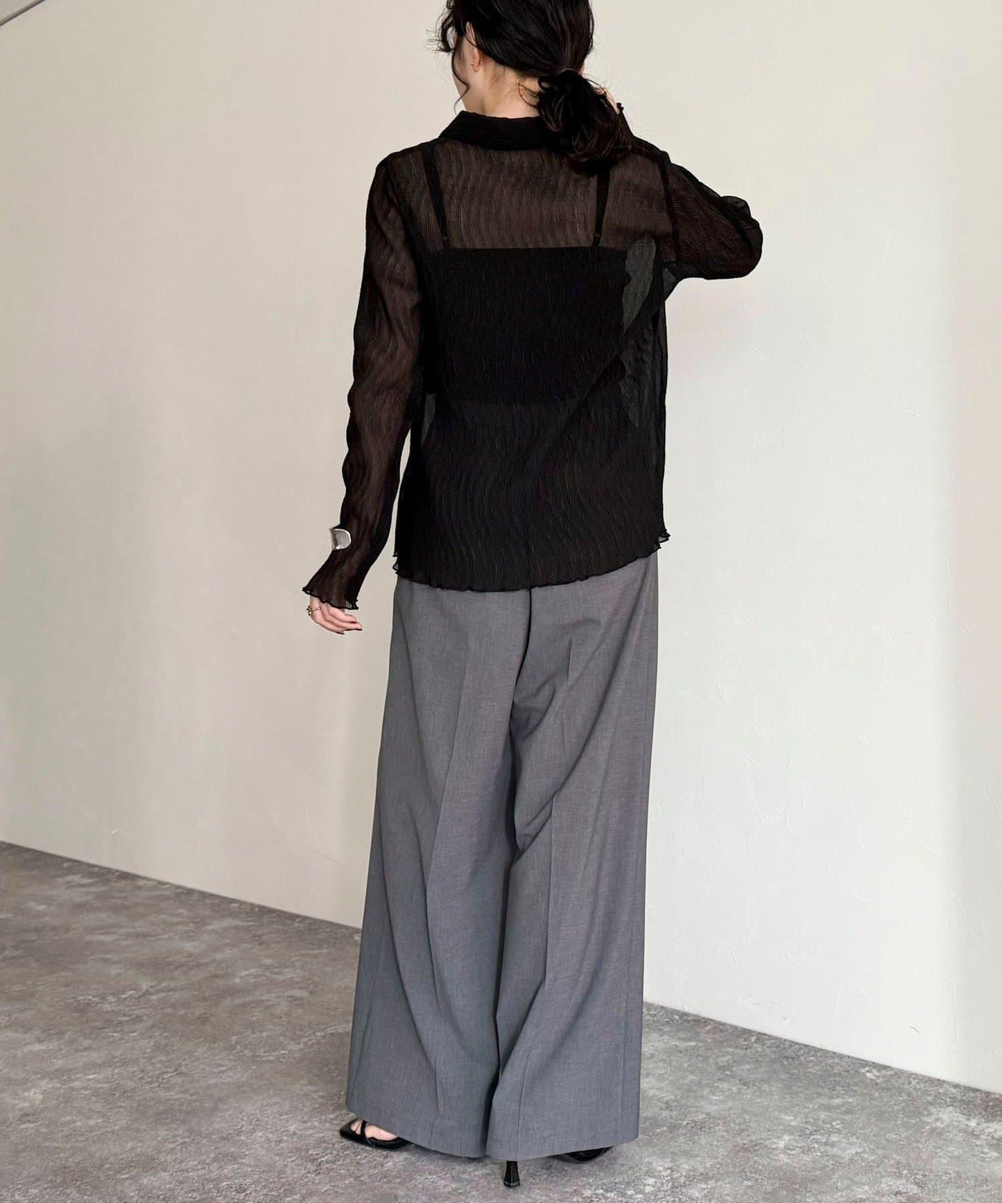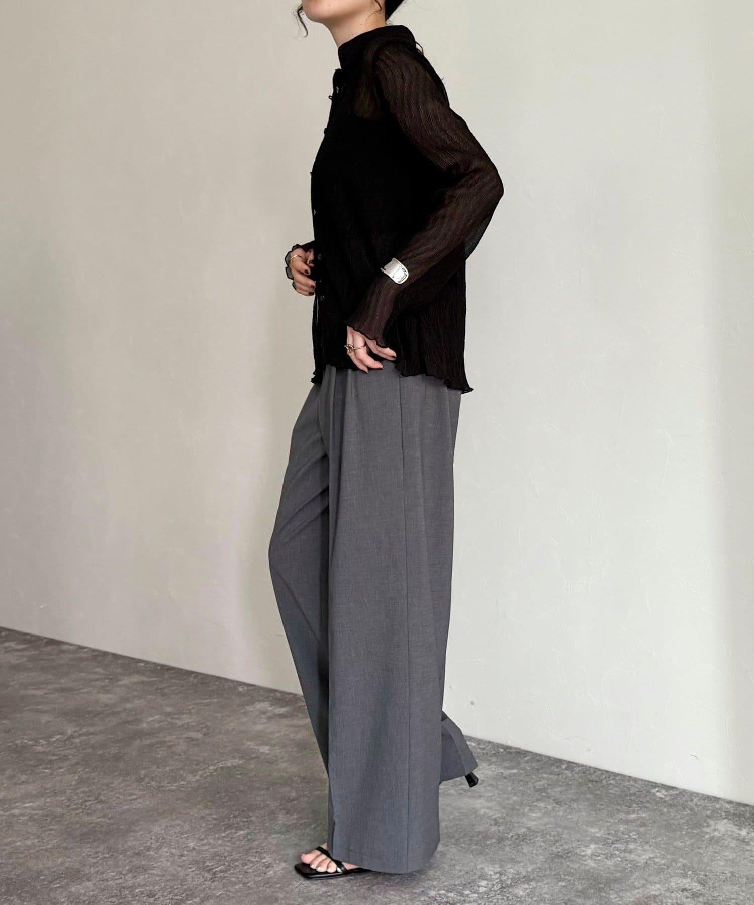 由於面料的特性,本產品的線頭在被夾住時容易彈出。穿著時,請注意與皮帶、包包和周圍牆壁等粗糙表面的摩擦和卡住。