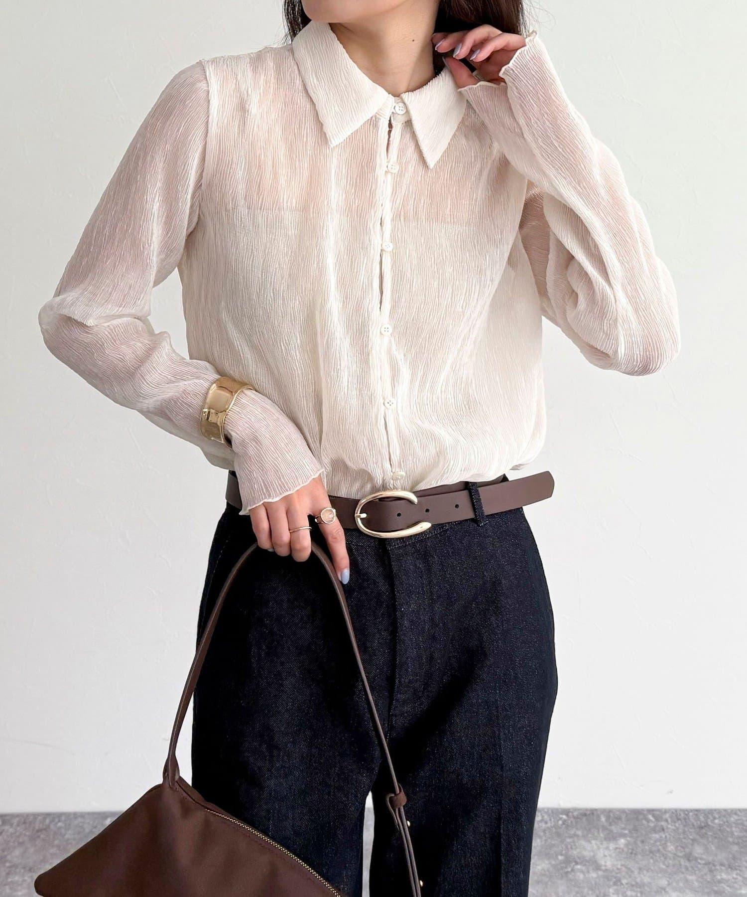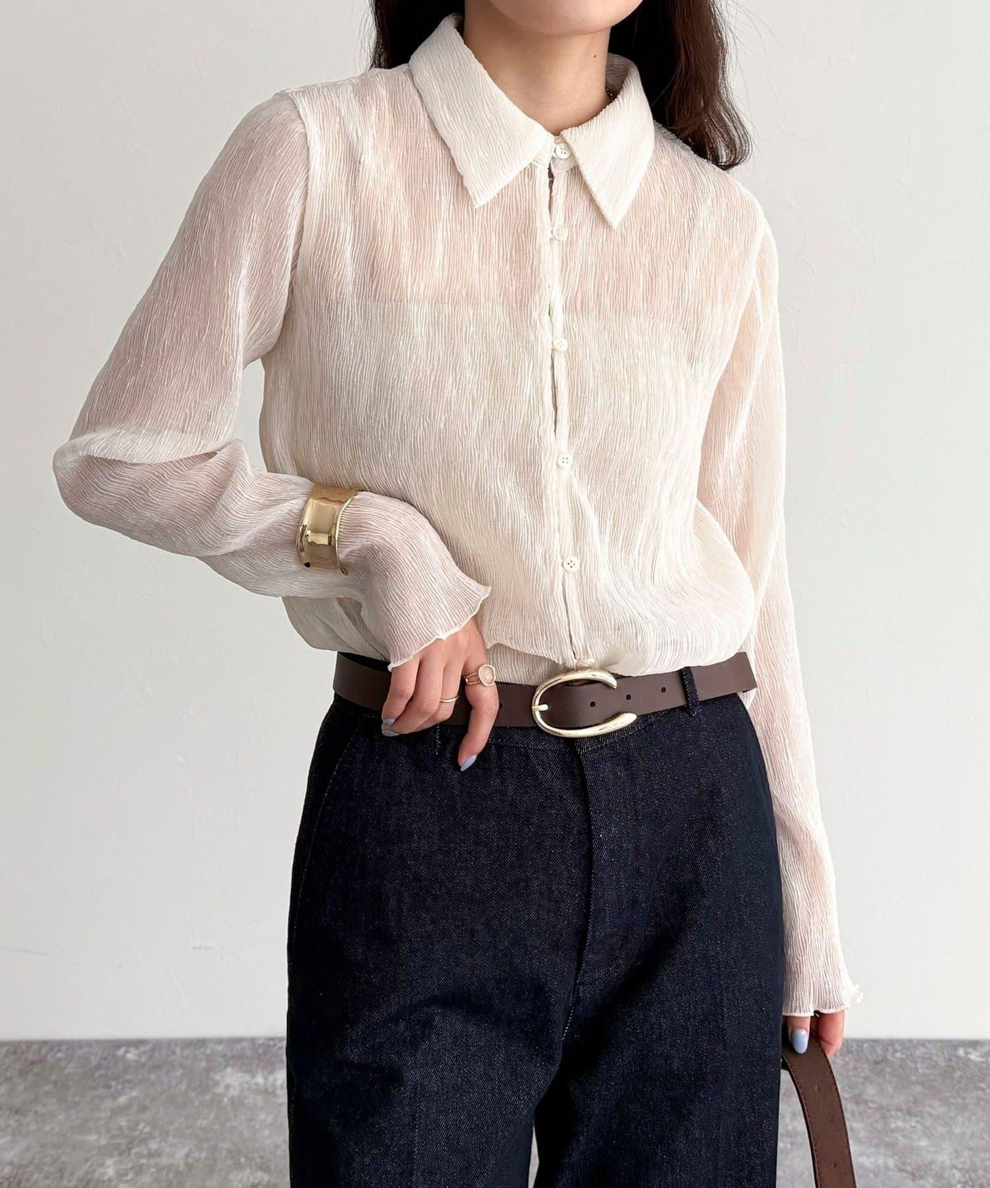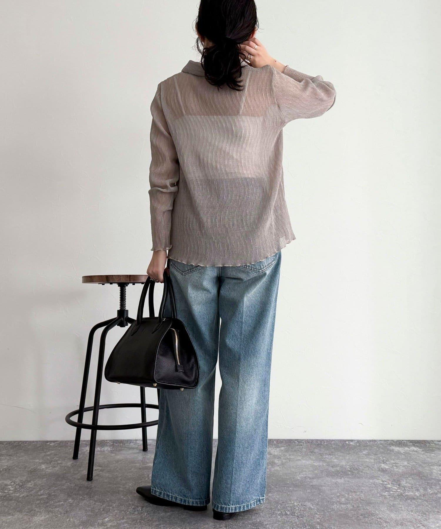 由於面料的特性,本產品的線頭在被夾住時容易彈出。穿著時,請注意與皮帶、包包和周圍牆壁等粗糙表面的摩擦和卡住。