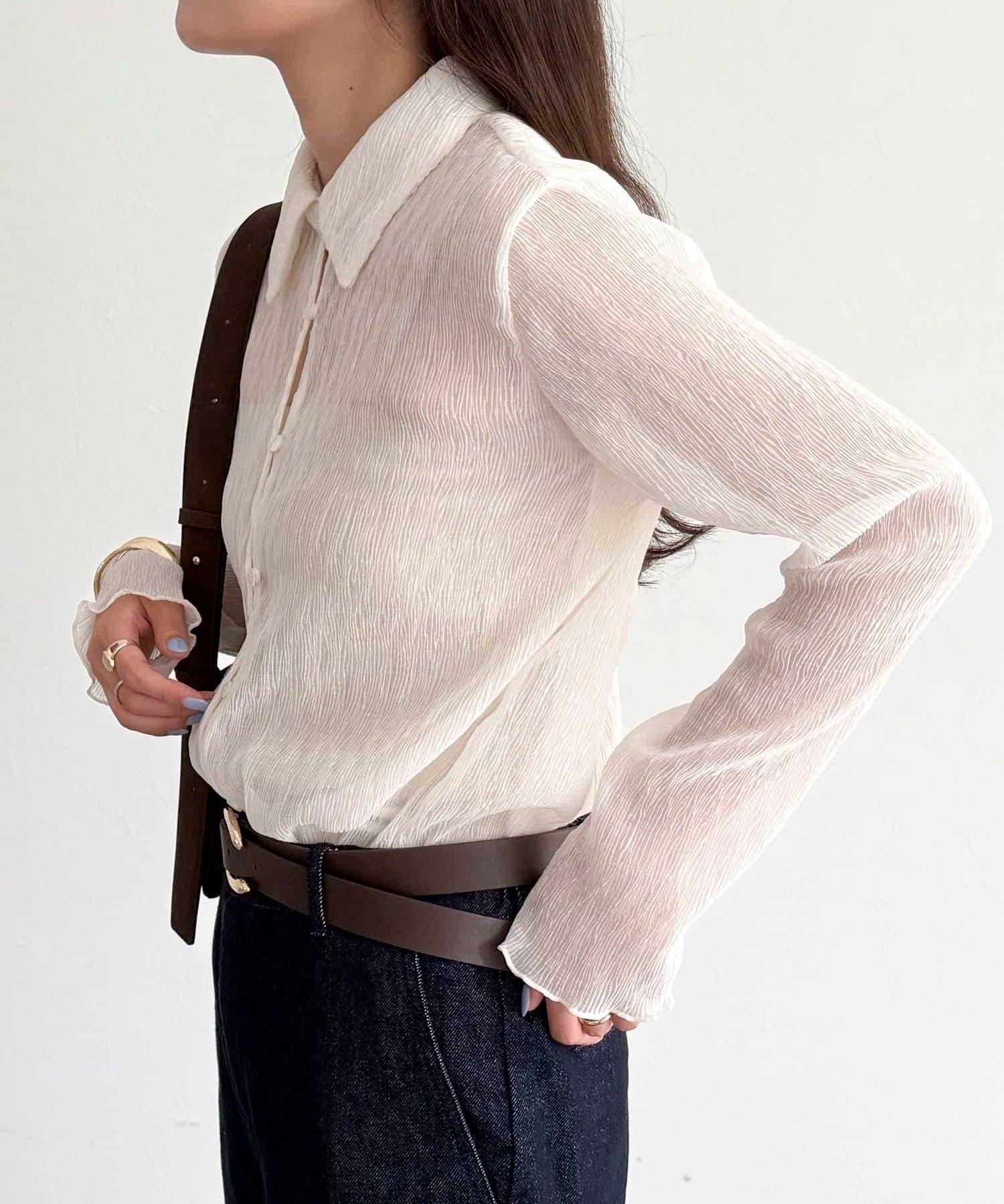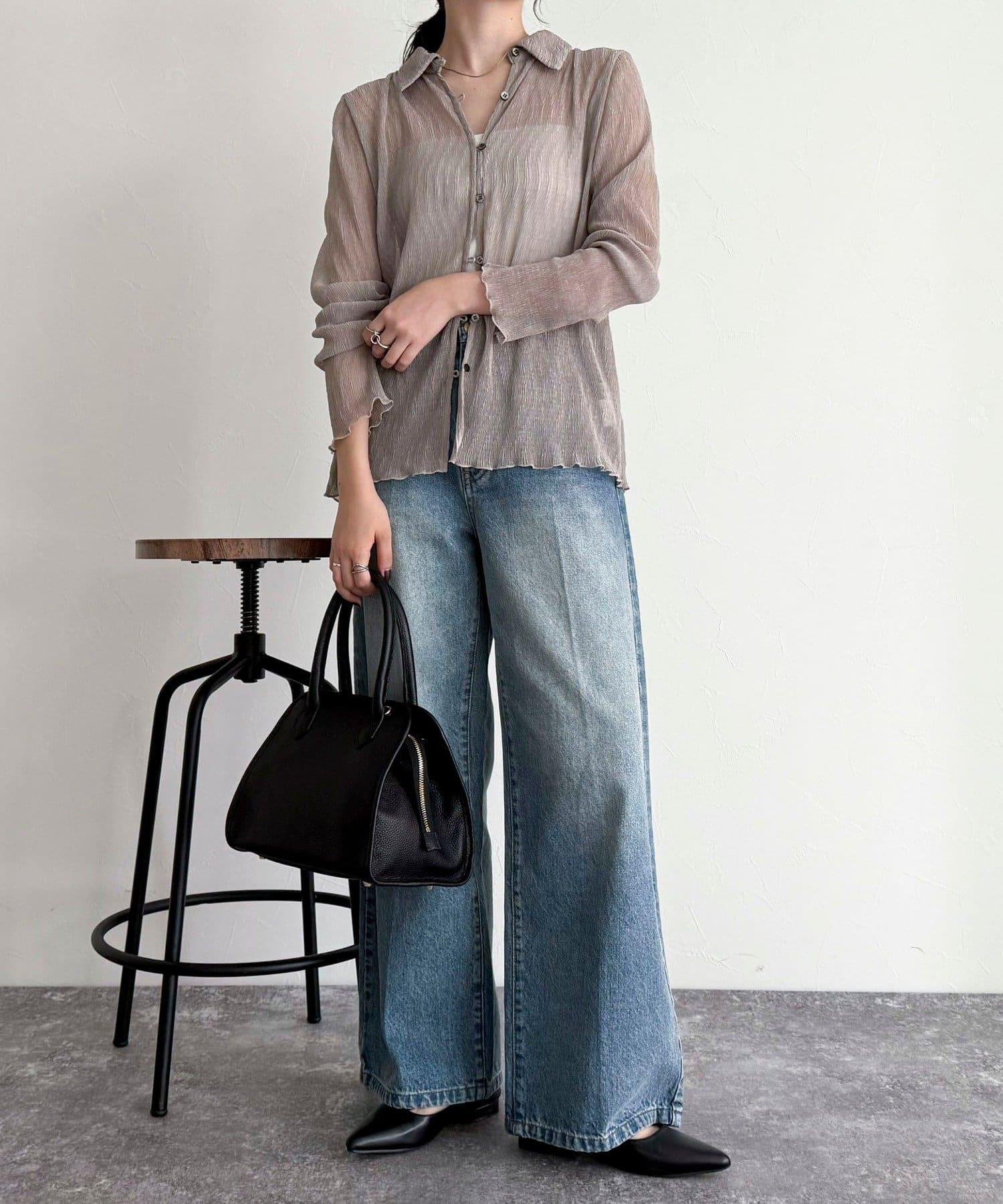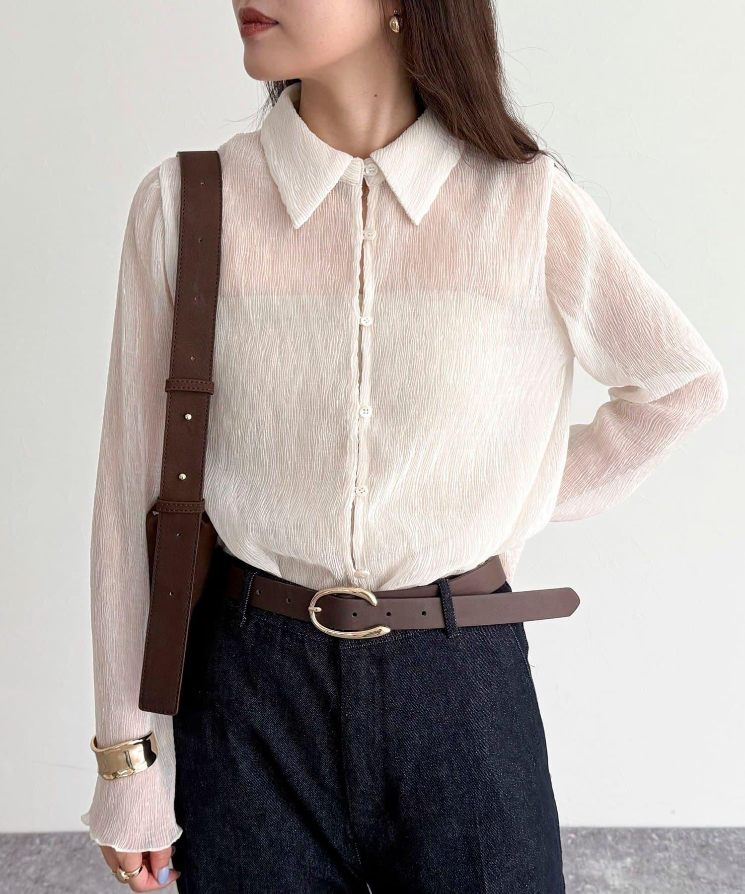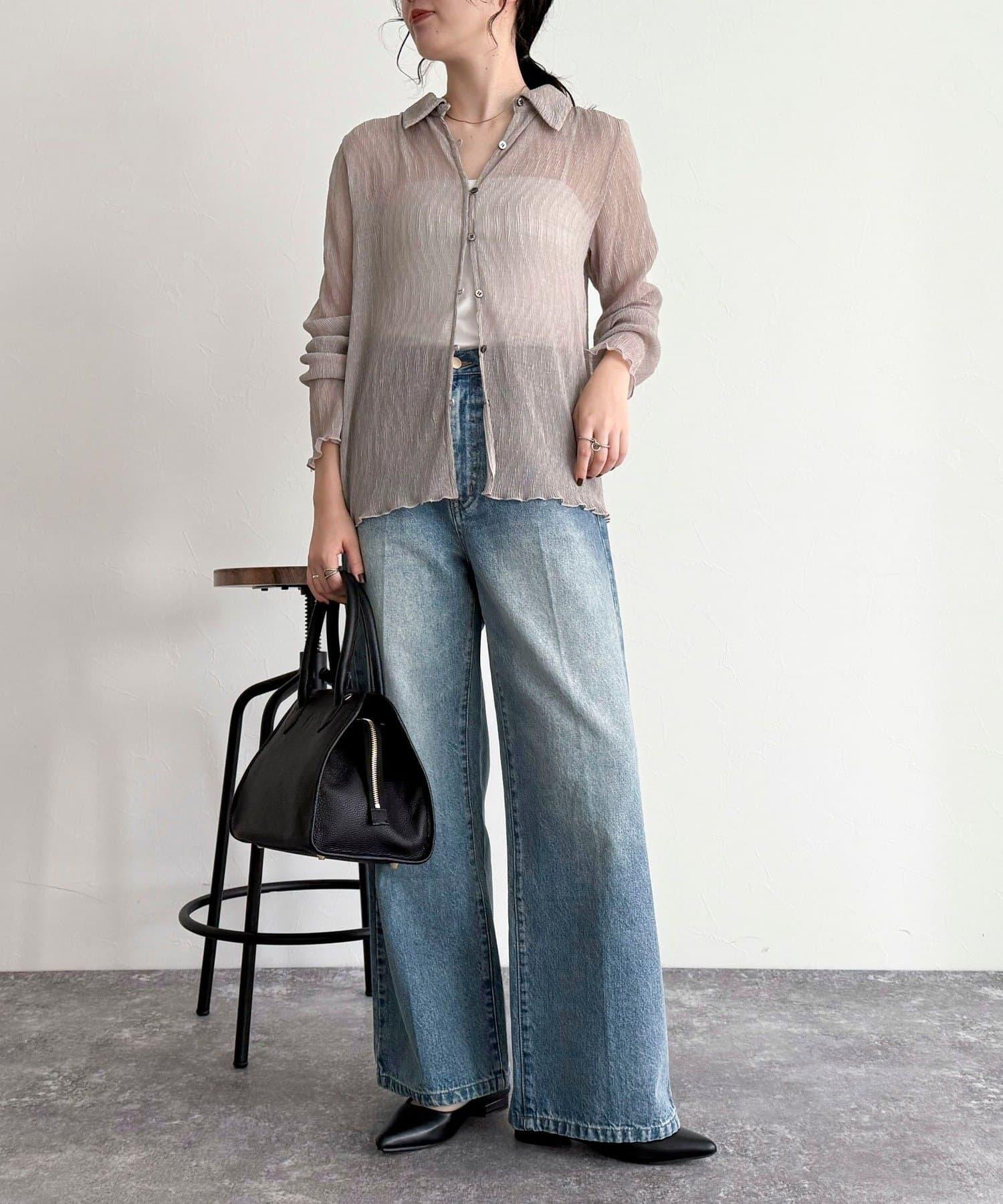 由於面料的特性,本產品的線頭在被夾住時容易彈出。穿著時,請注意與皮帶、包包和周圍牆壁等粗糙表面的摩擦和卡住。