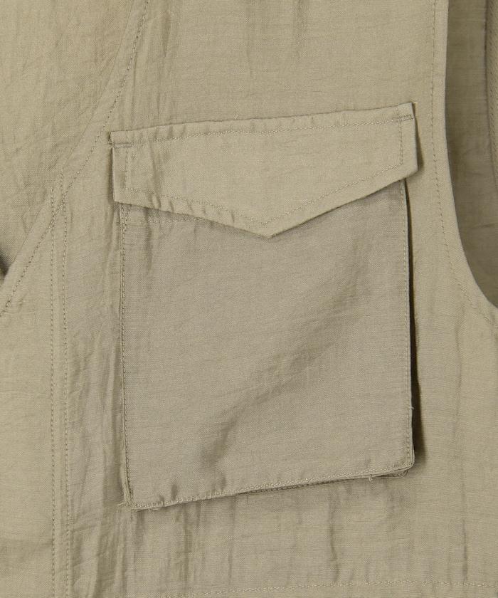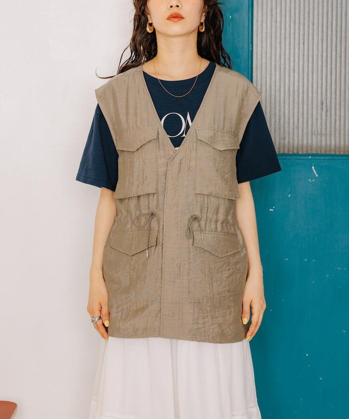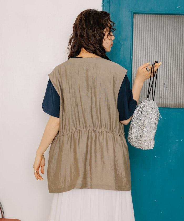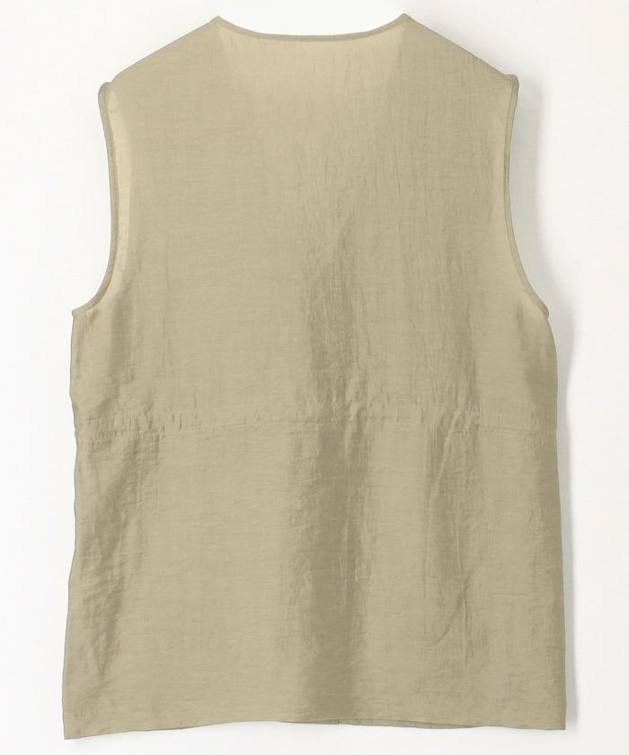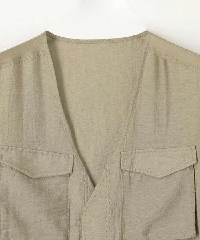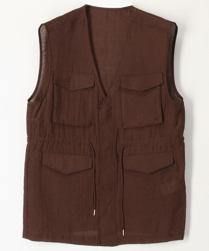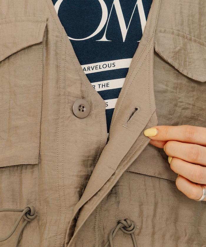 軍裝馬甲由透視面料製成,這是一種具有迷人光澤和透明度的時尚面料。