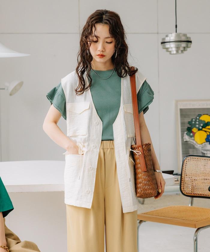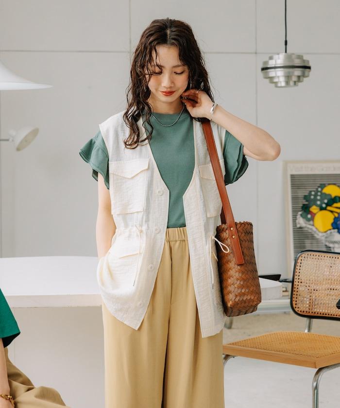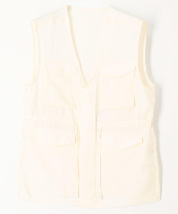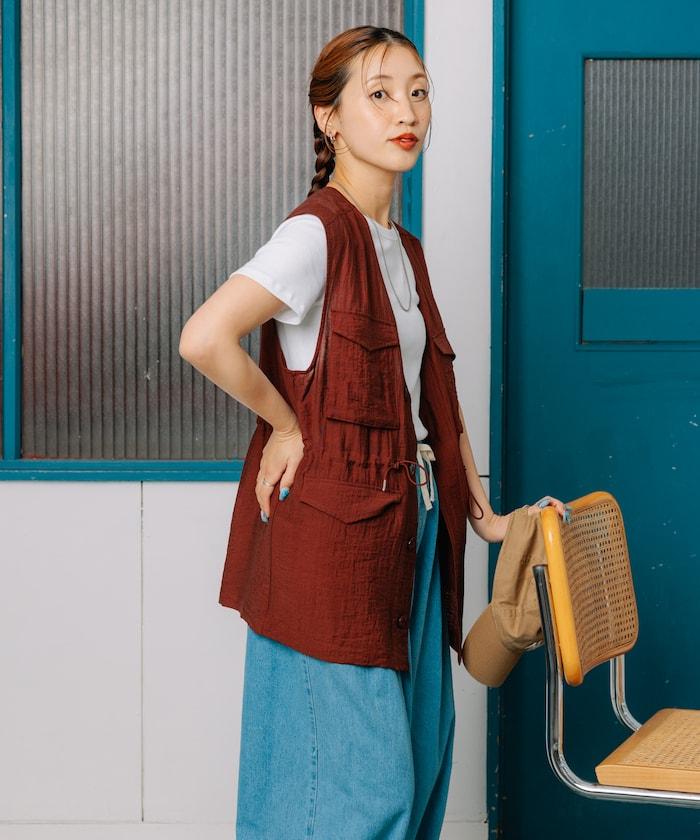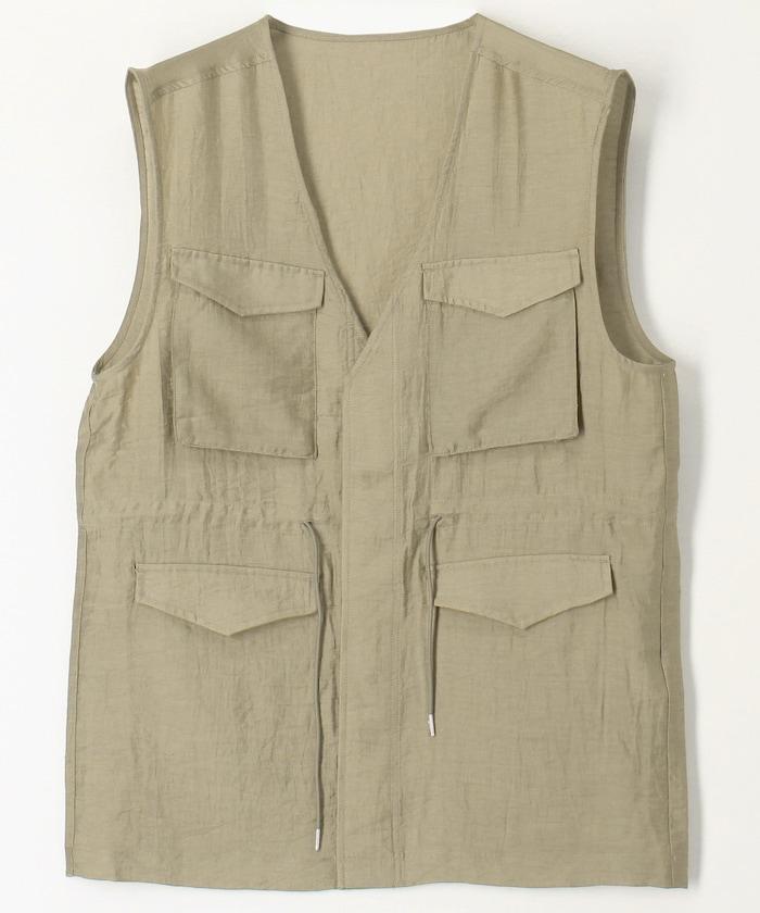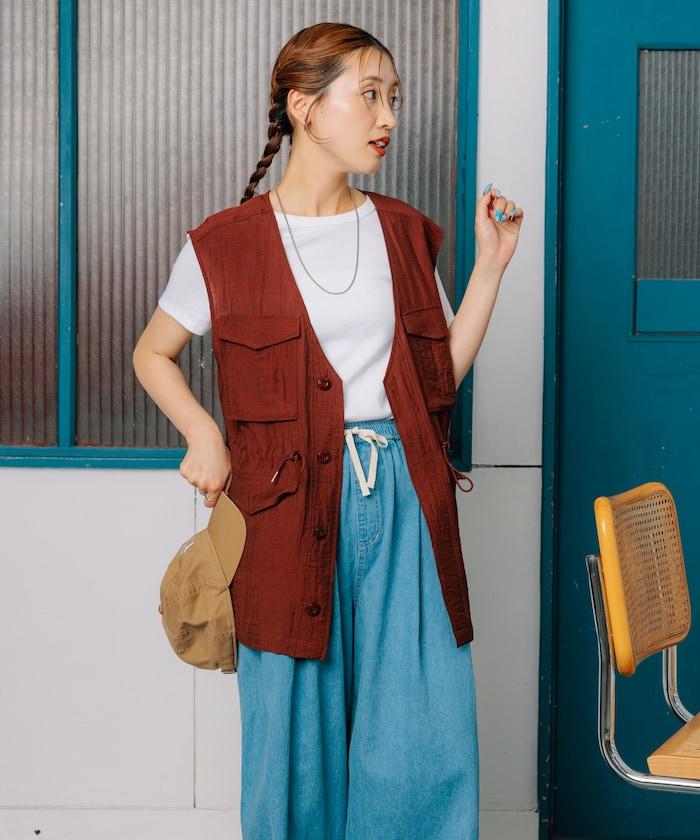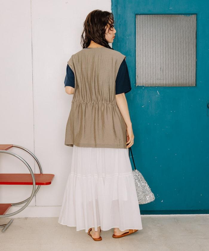 軍裝馬甲由透視面料製成,這是一種具有迷人光澤和透明度的時尚面料。