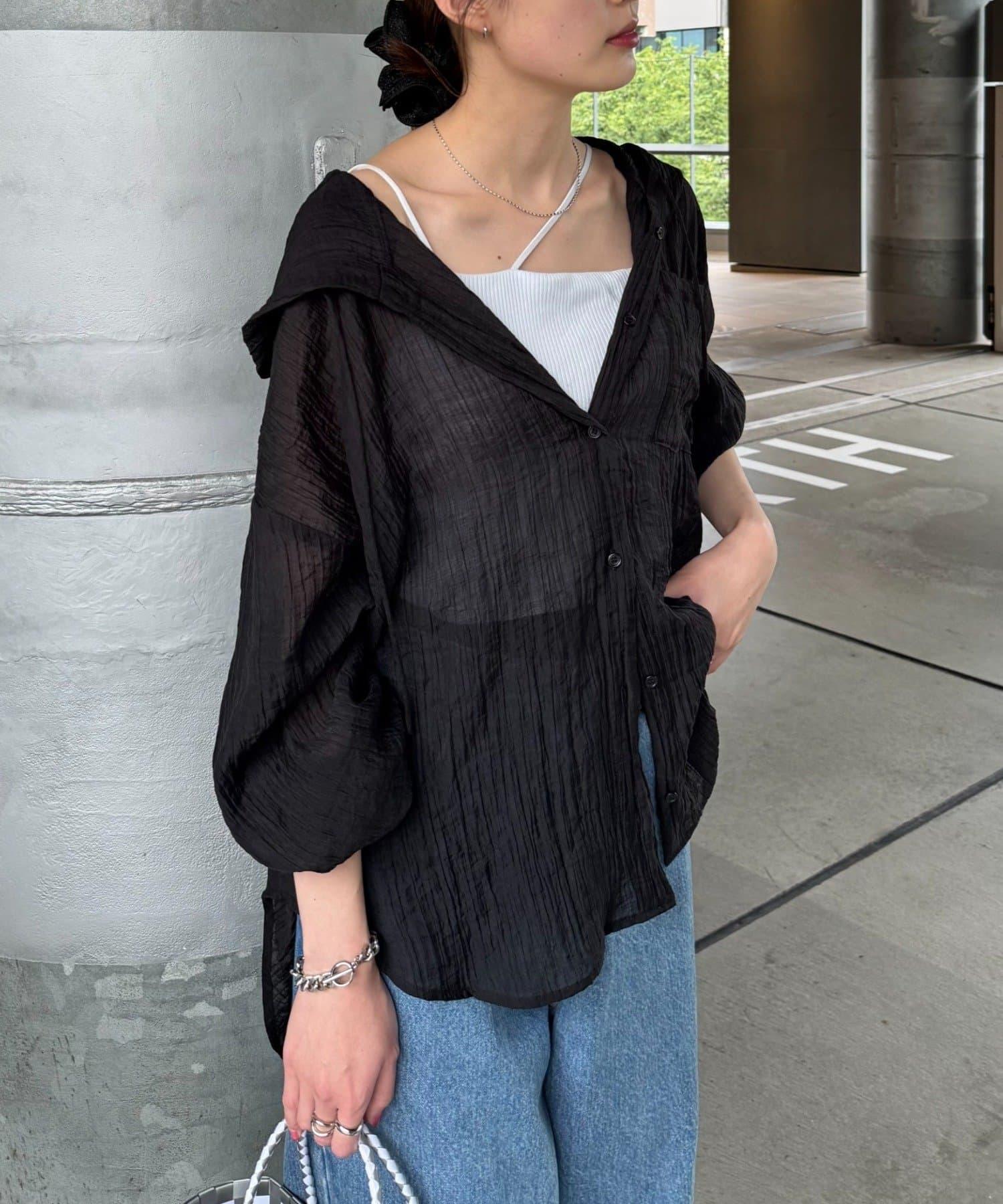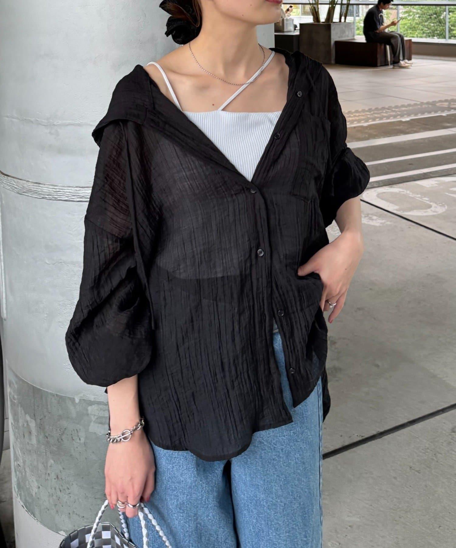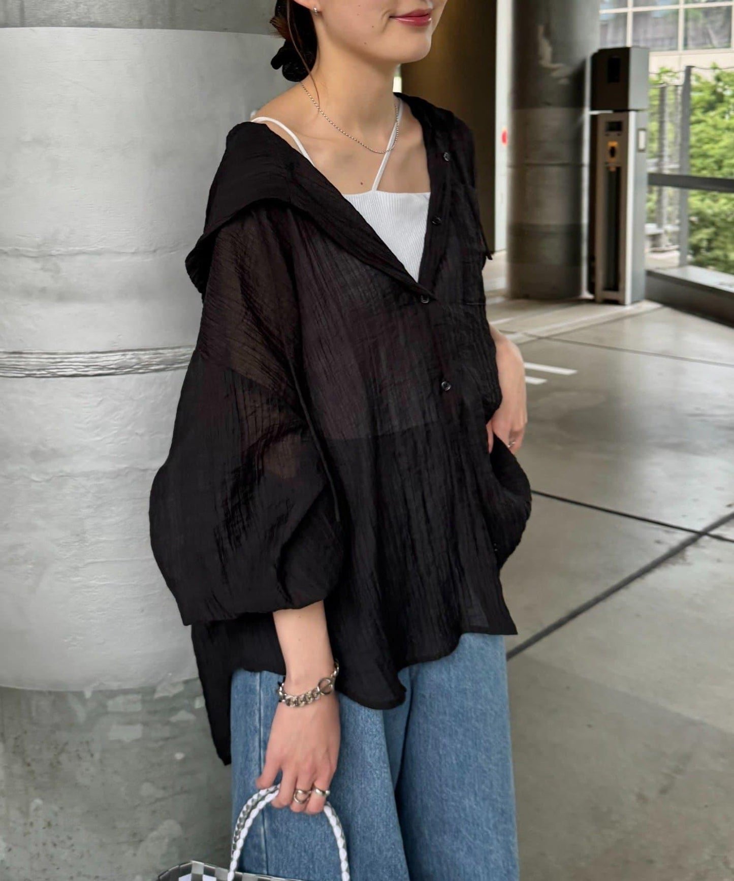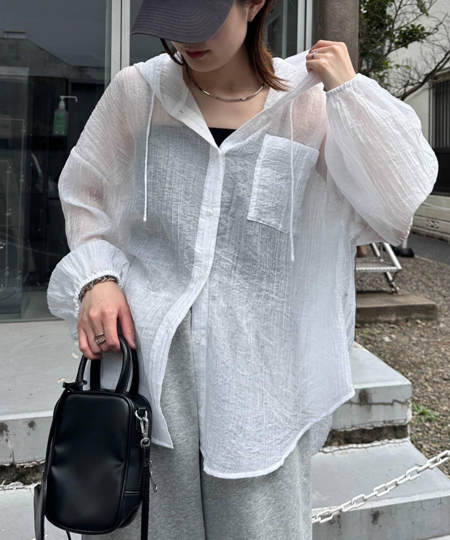 "遮住身形×顯得時尚 "的薄紗上衣。
