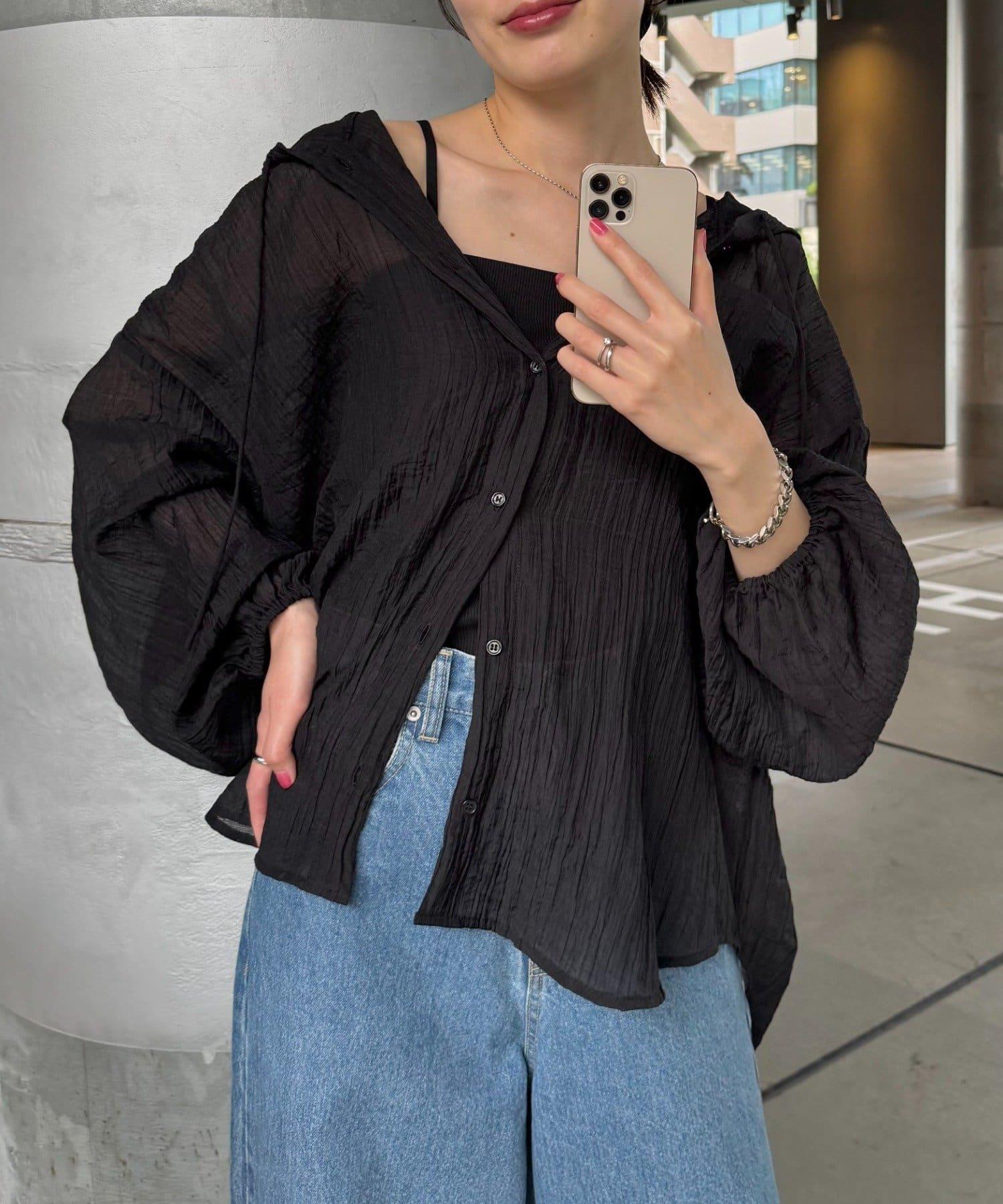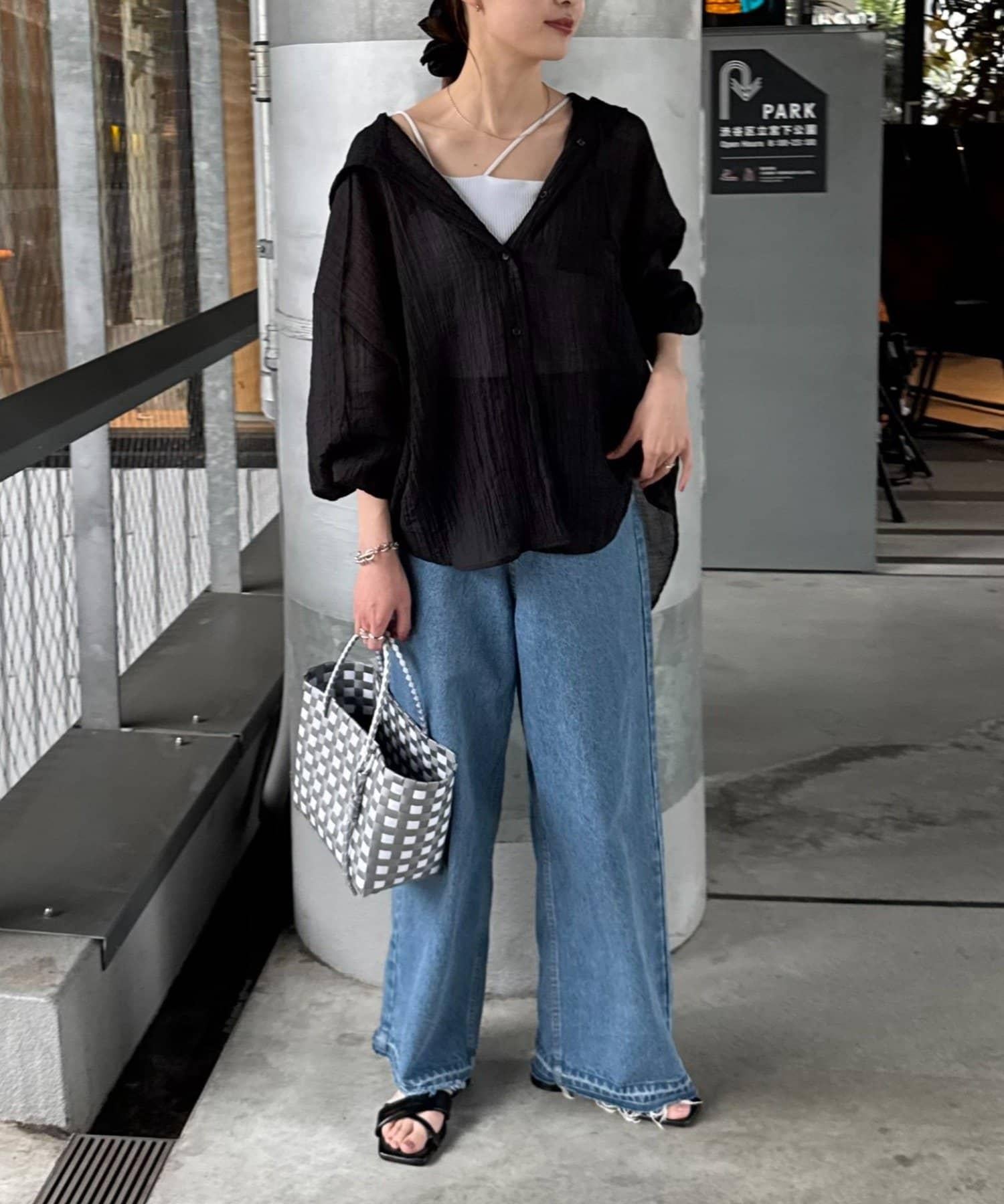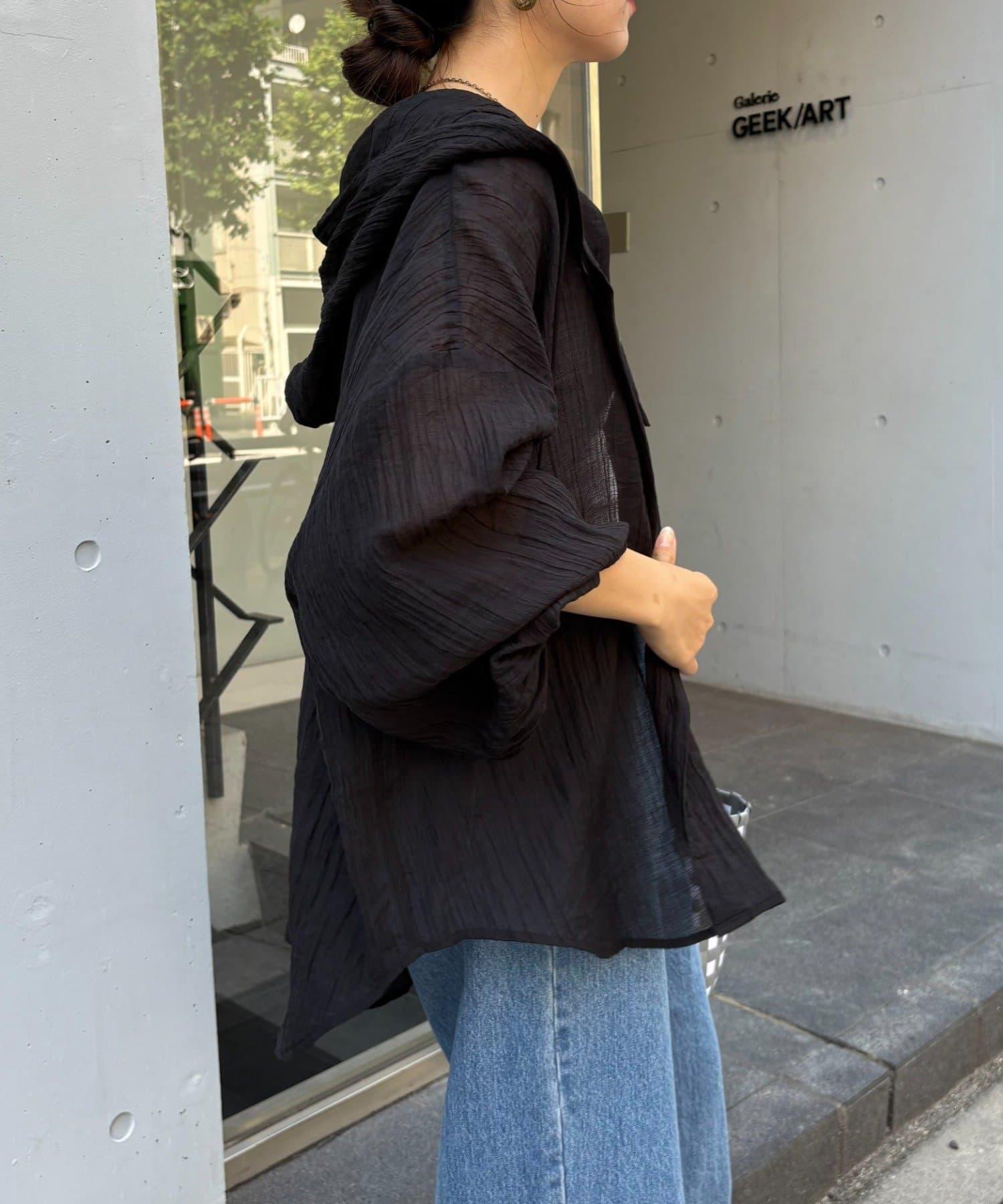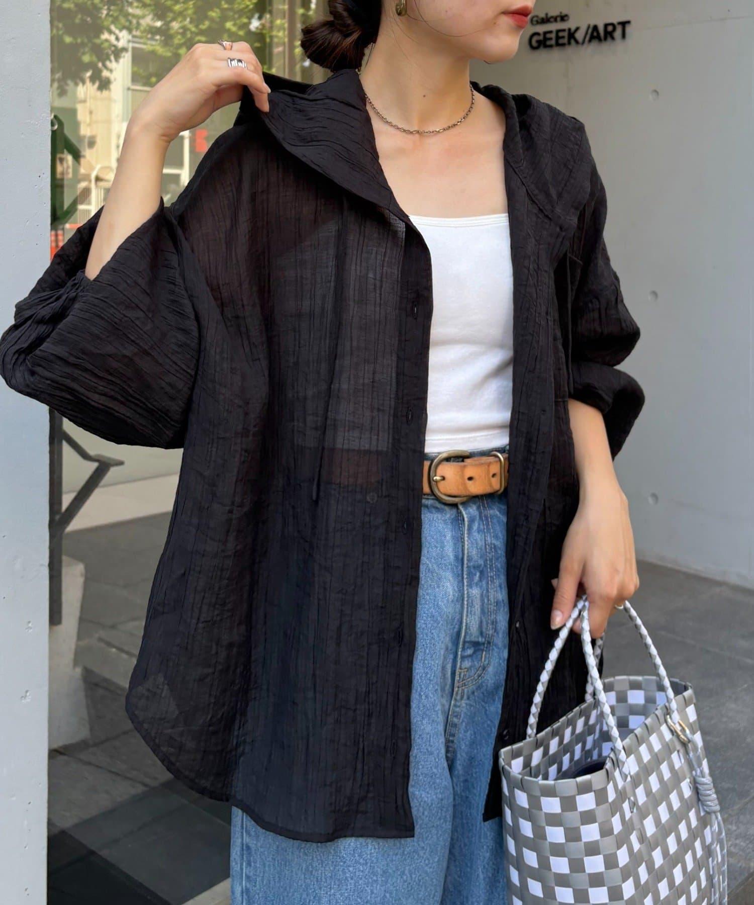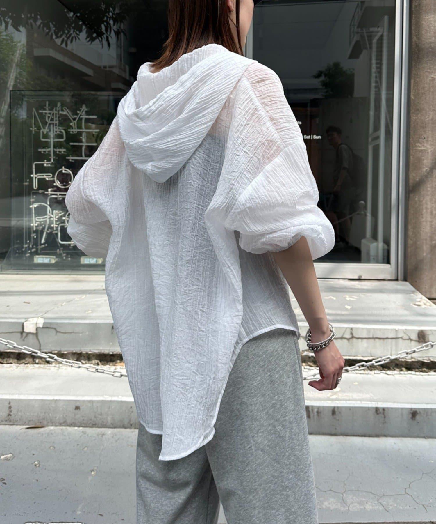 "遮住身形×顯得時尚 "的薄紗上衣。