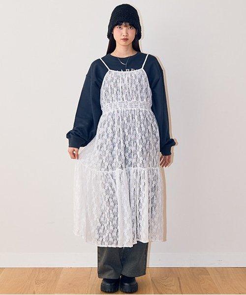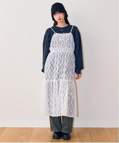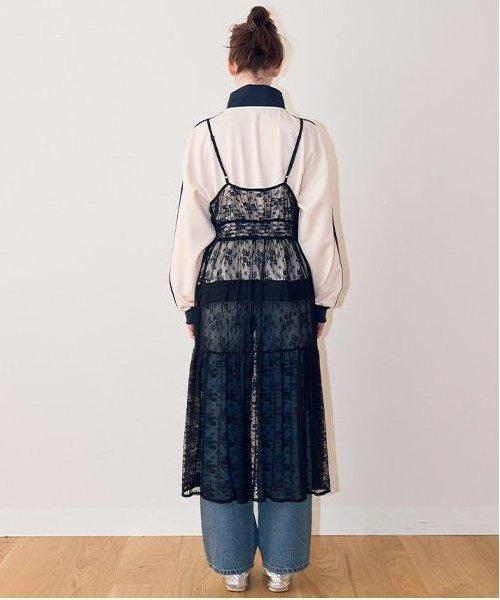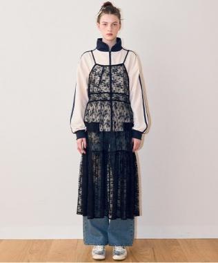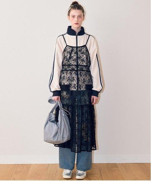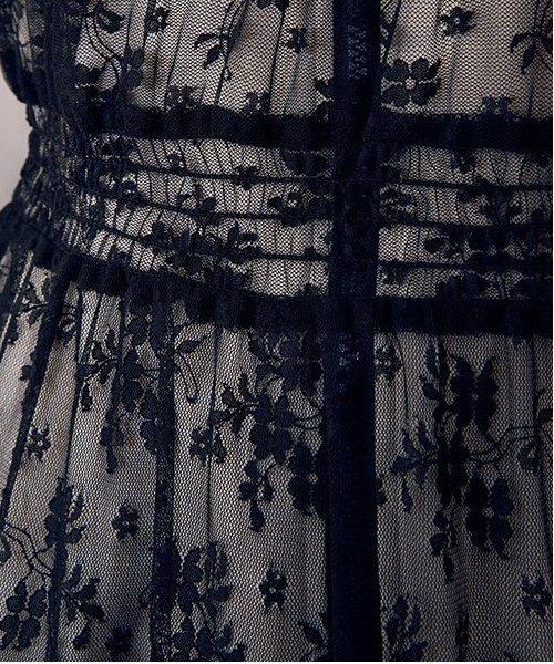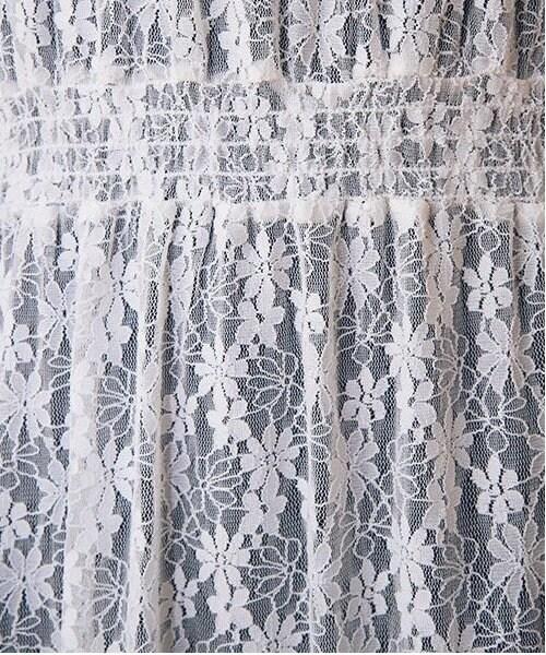 蕾絲上有米白色和黑色的不同圖案,多層圖案上有花卉圖案,讓你享受豐富的搭配變化。
