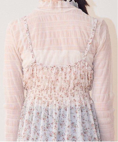 上半身合身,下半身蓬鬆,輪廓可愛。褶皺的過渡給人一種柔和的感覺,平衡了整體造型。