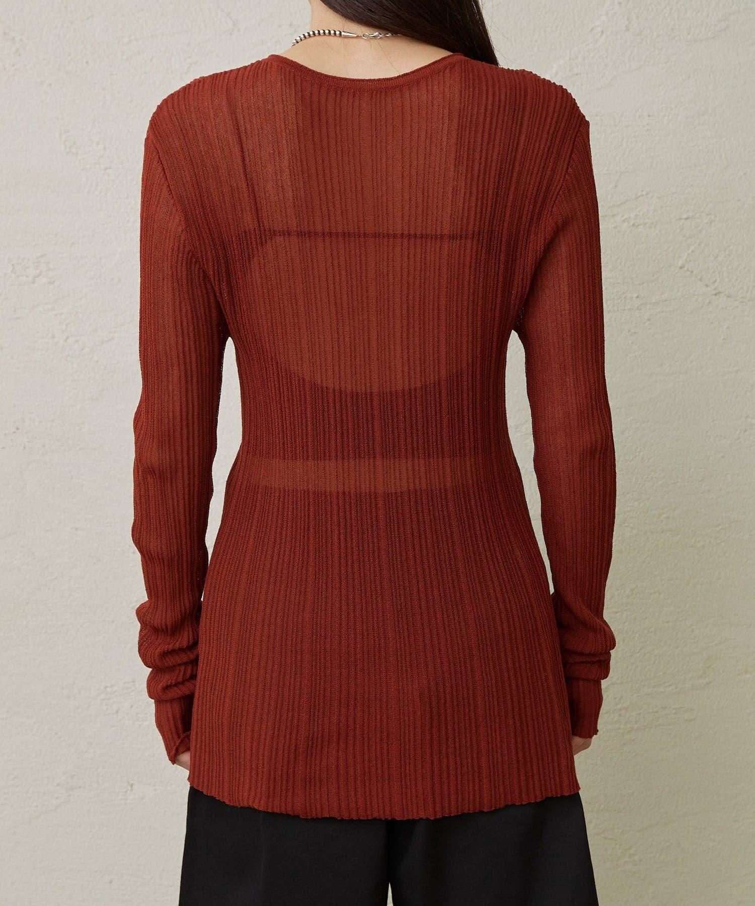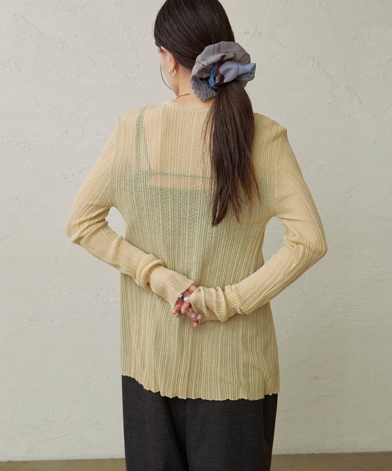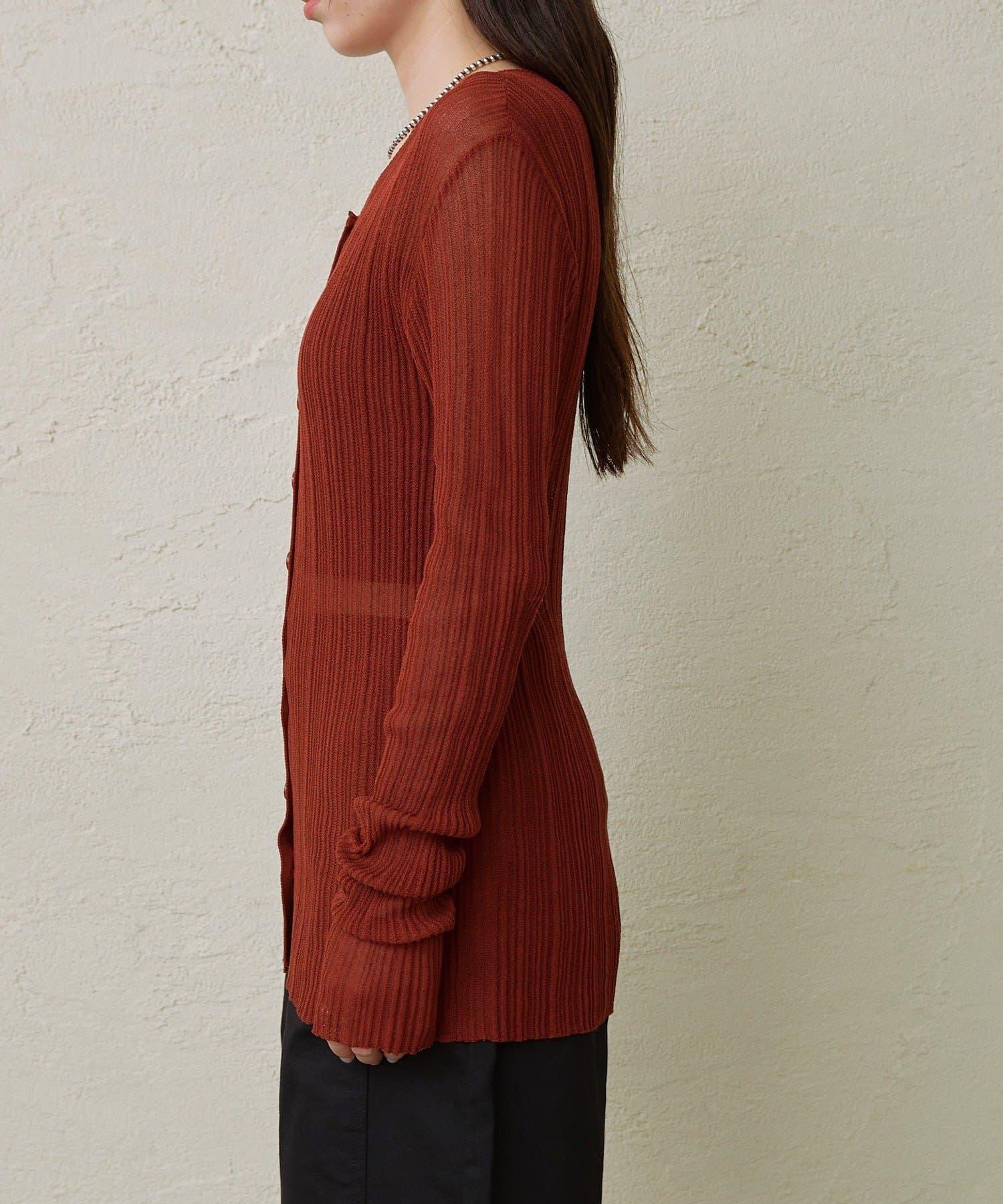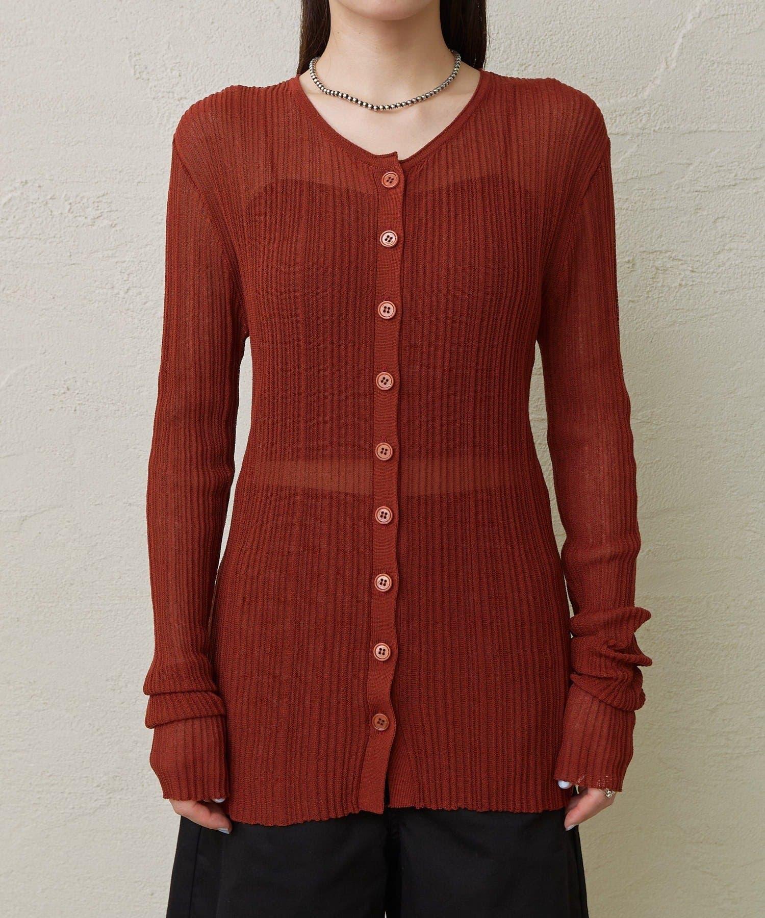 這款針織開衫的透視面料給人一種寬鬆的感覺。