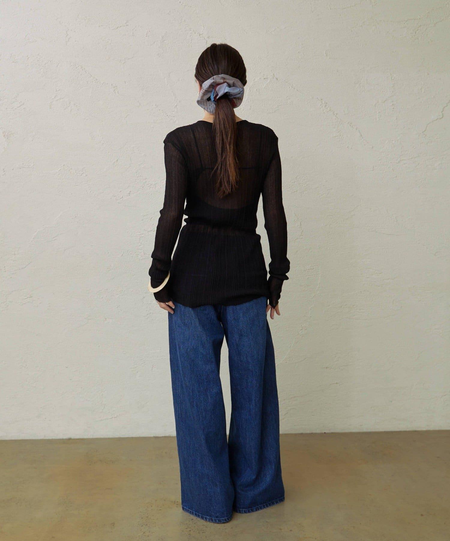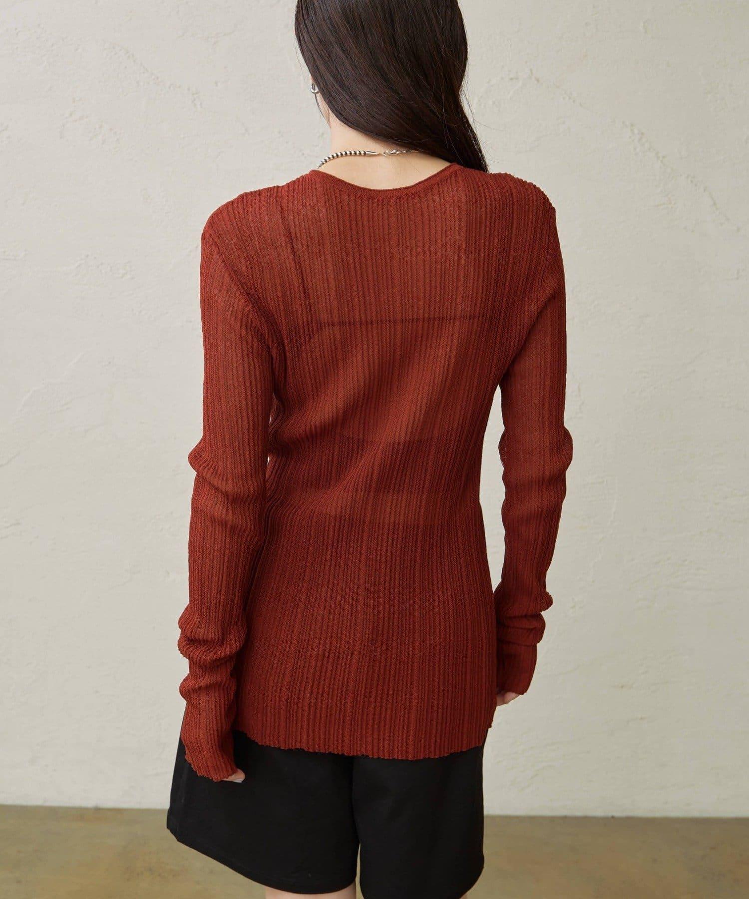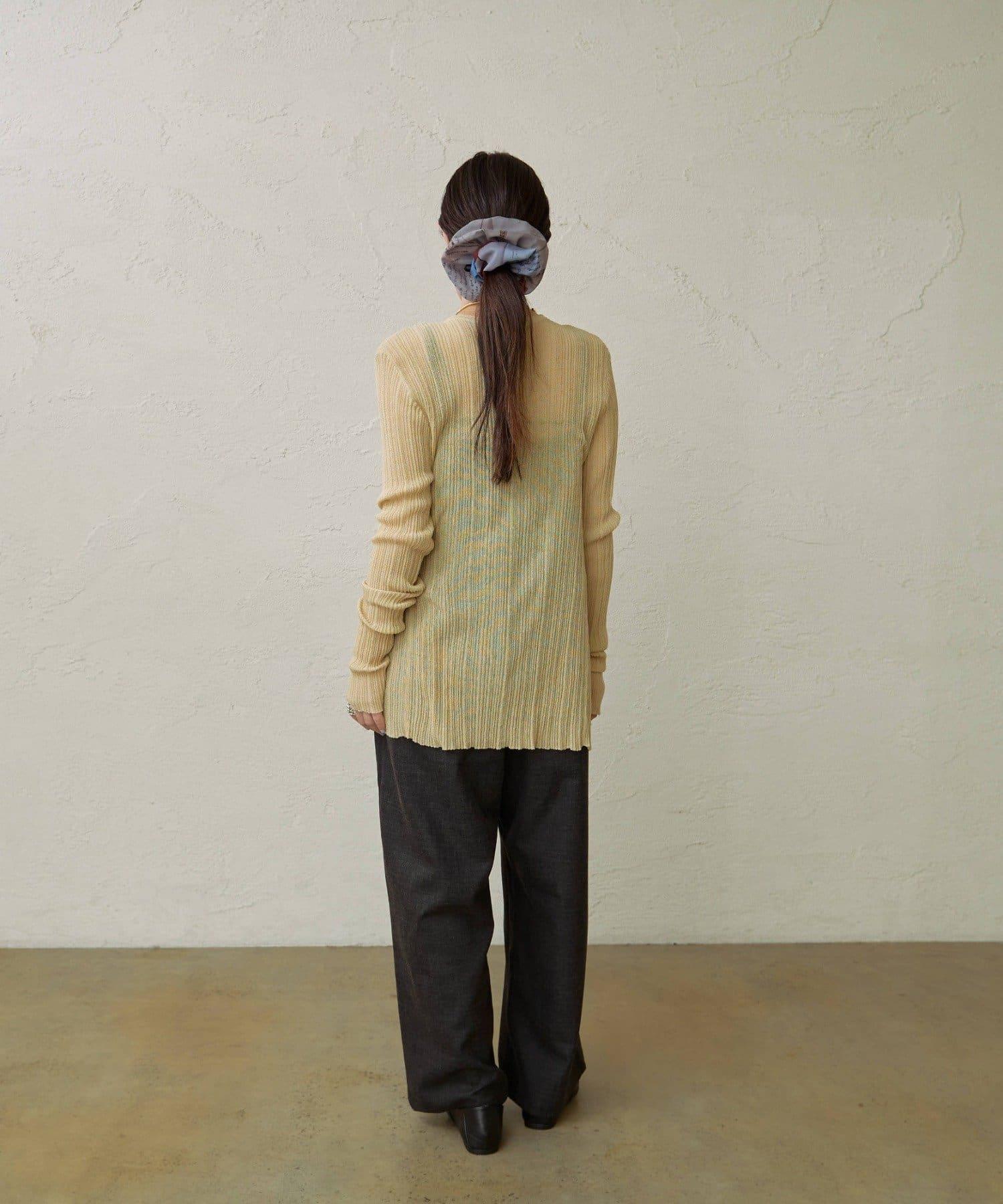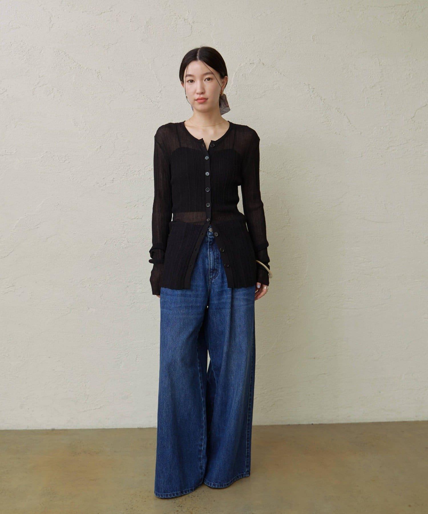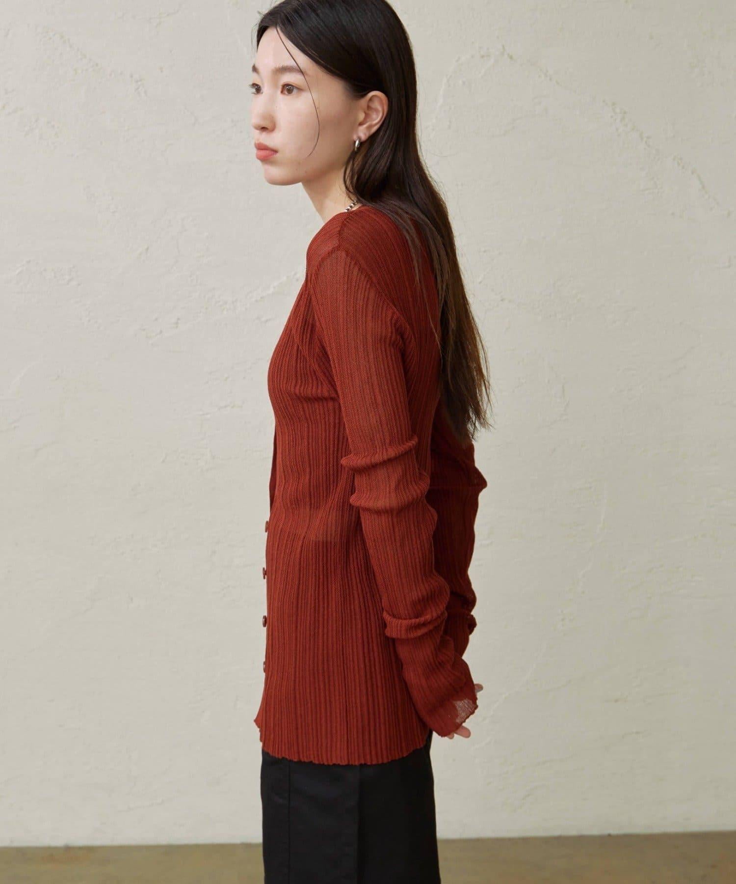 這款針織開衫的透視面料給人一種寬鬆的感覺。