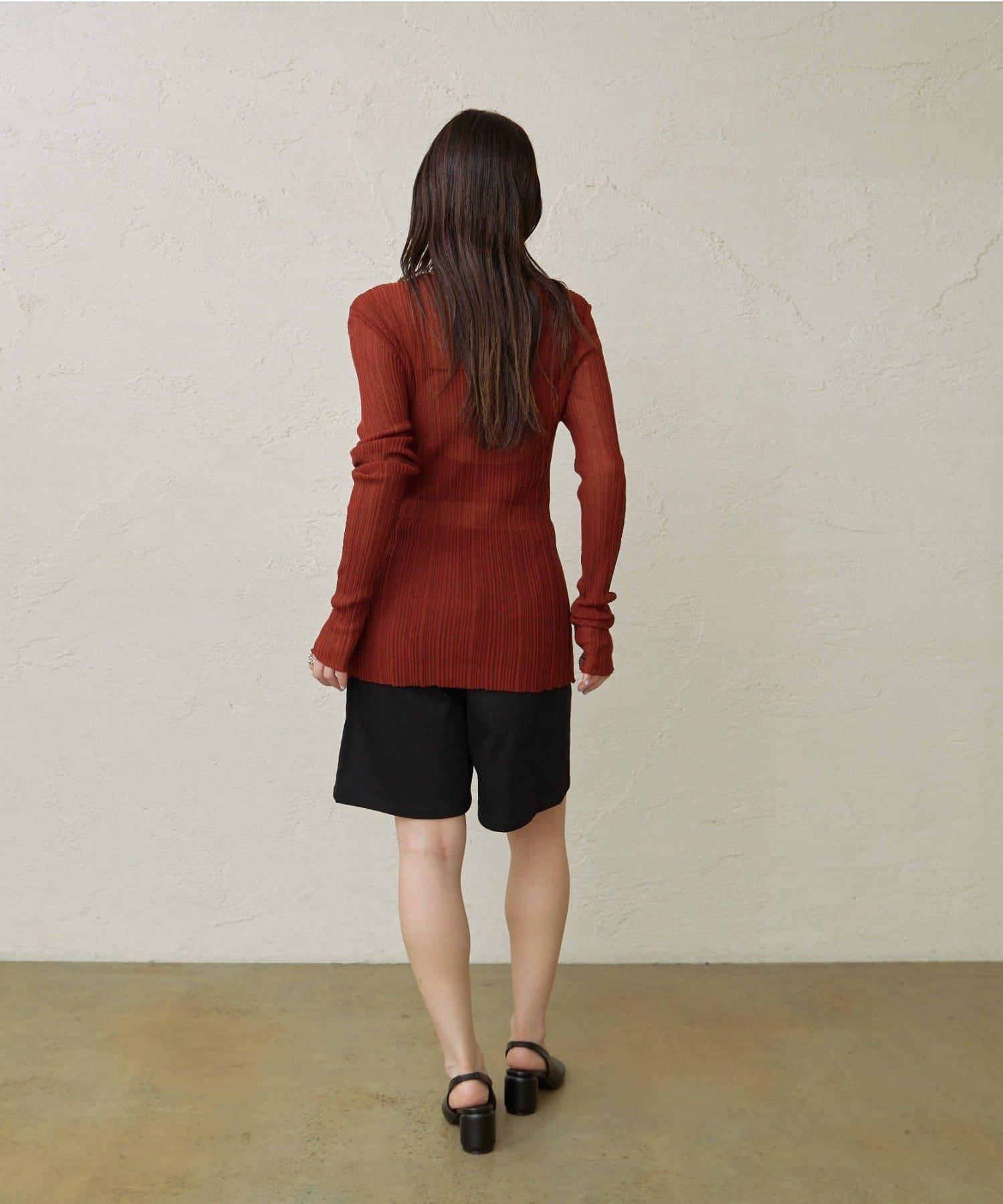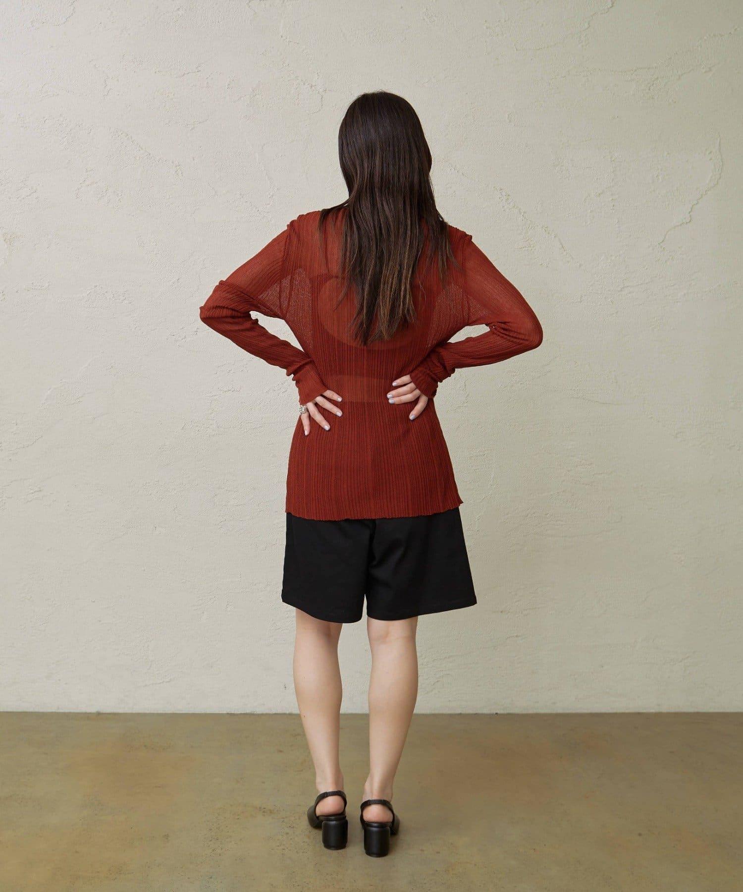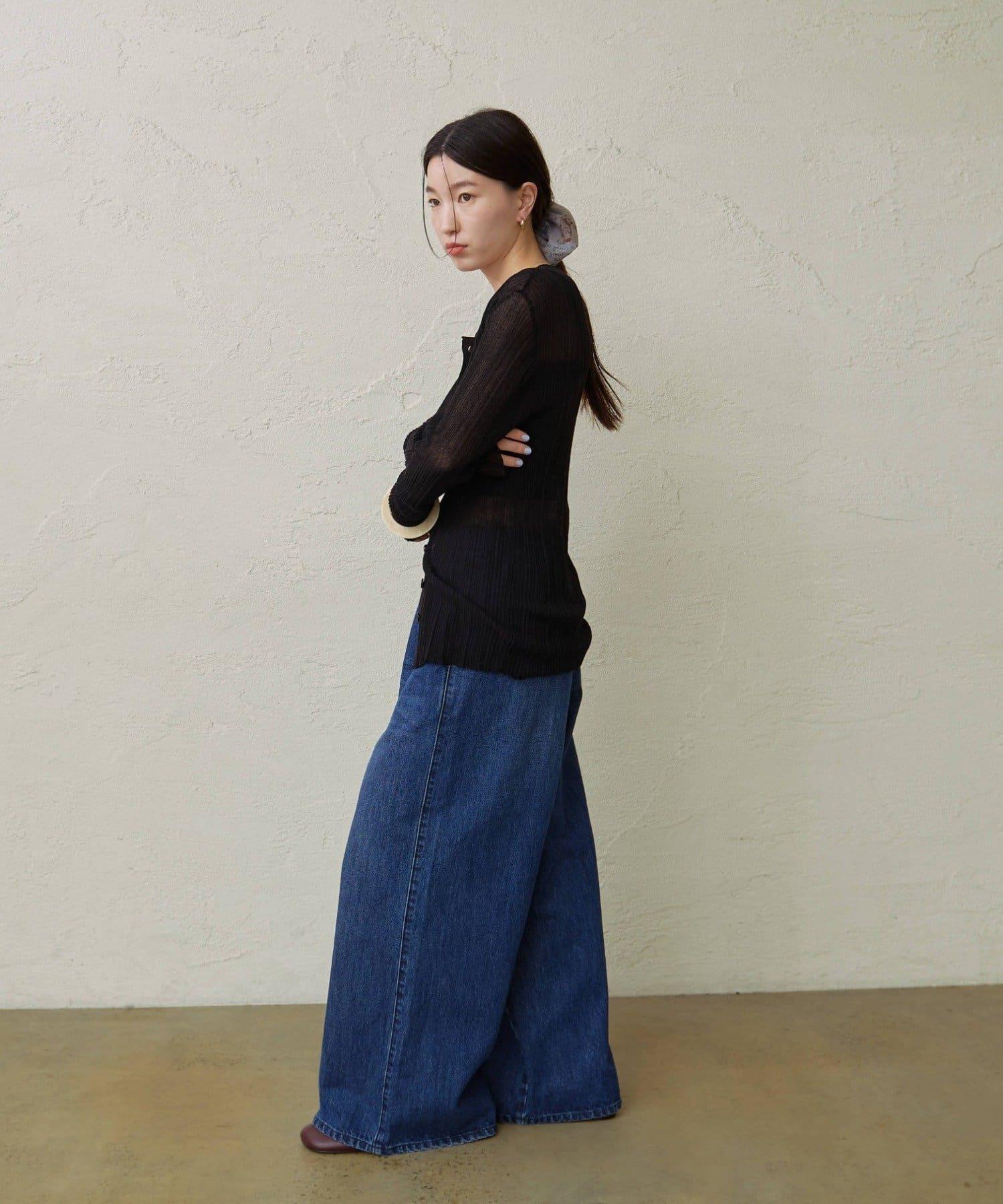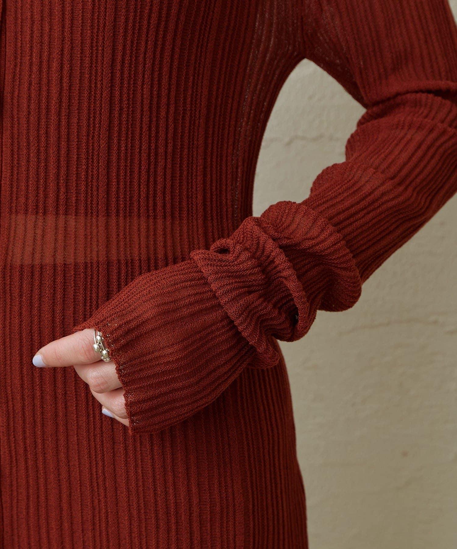 這款針織開衫的透視面料給人一種寬鬆的感覺。