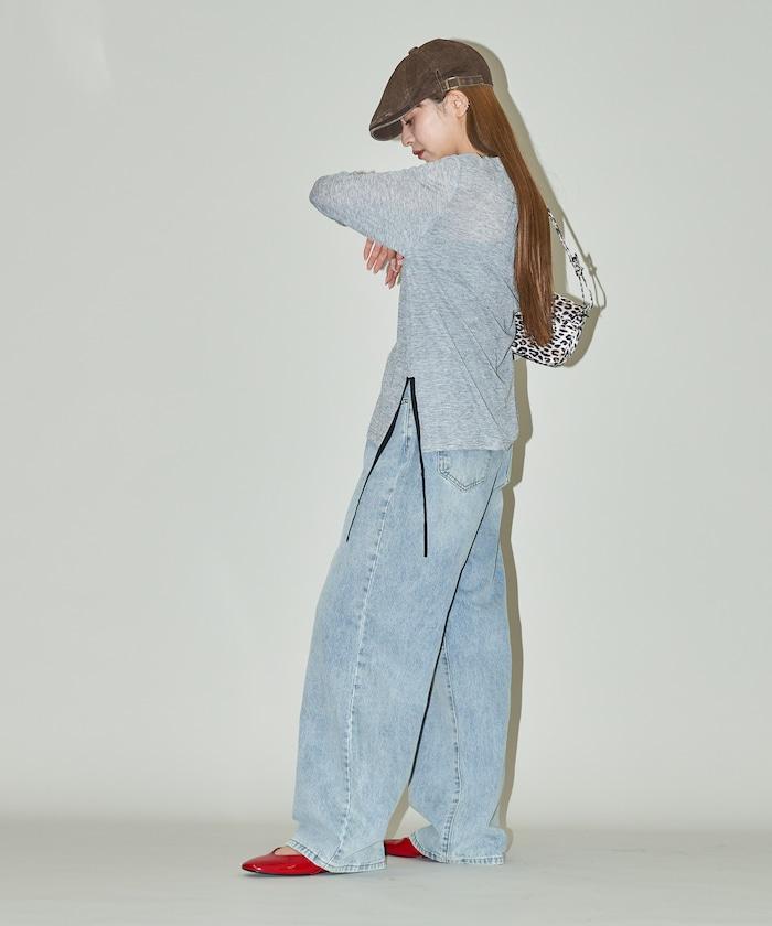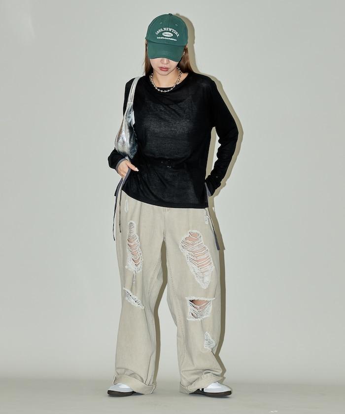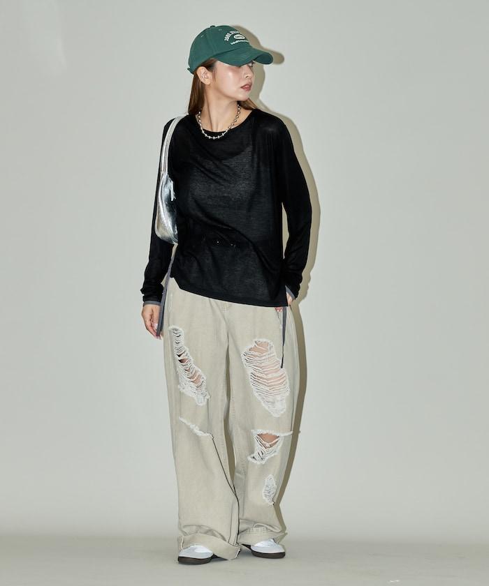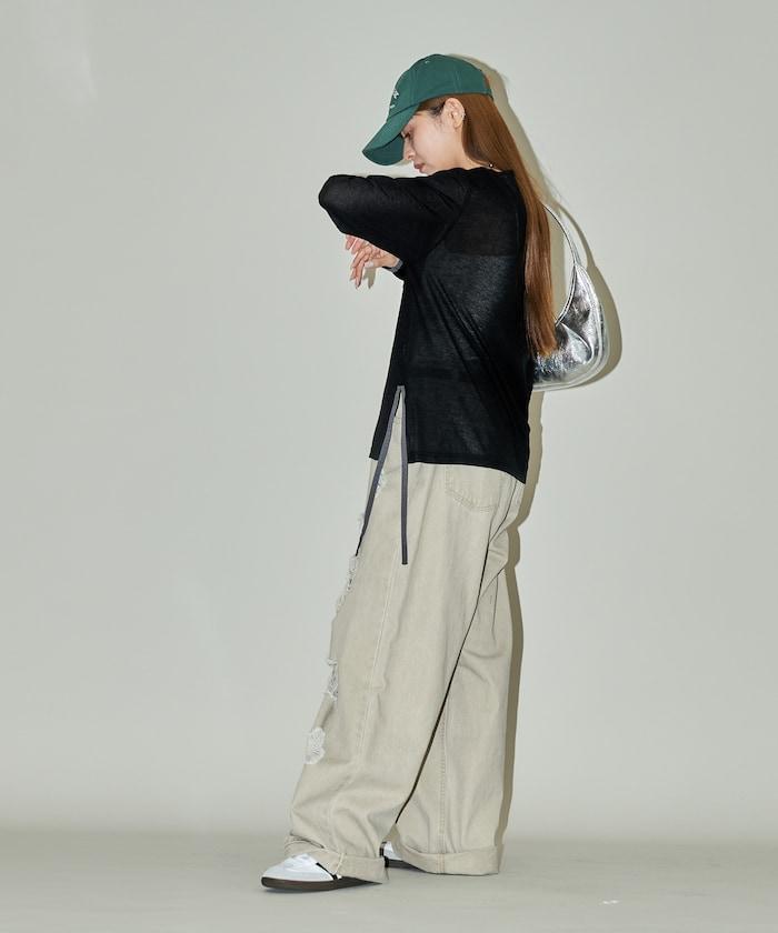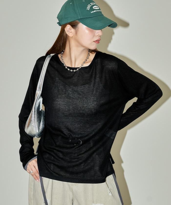 休閒透視長款 T 恤,細節精緻。