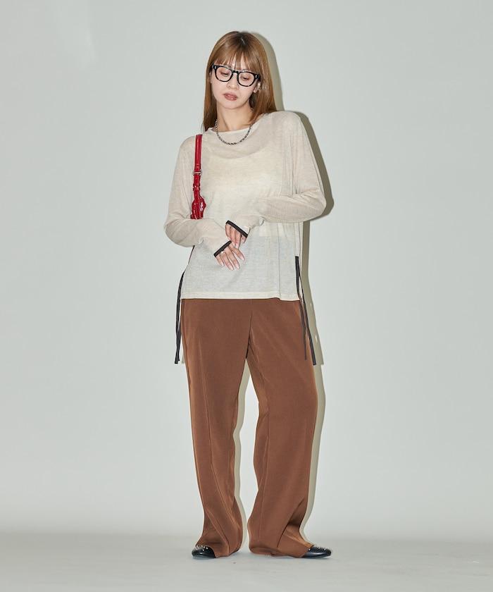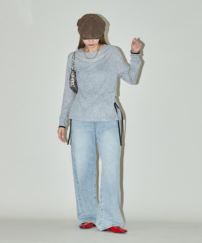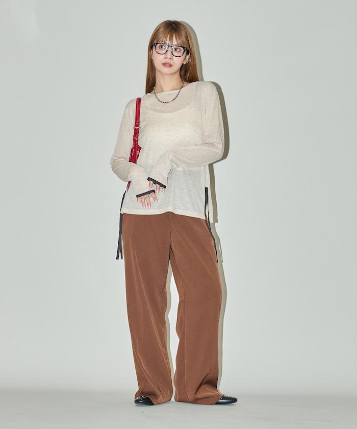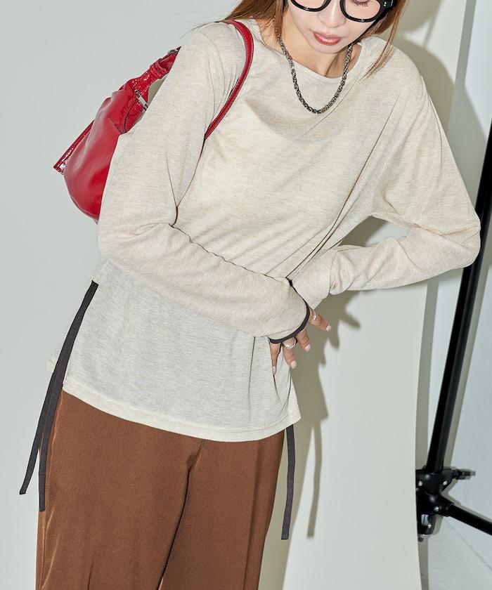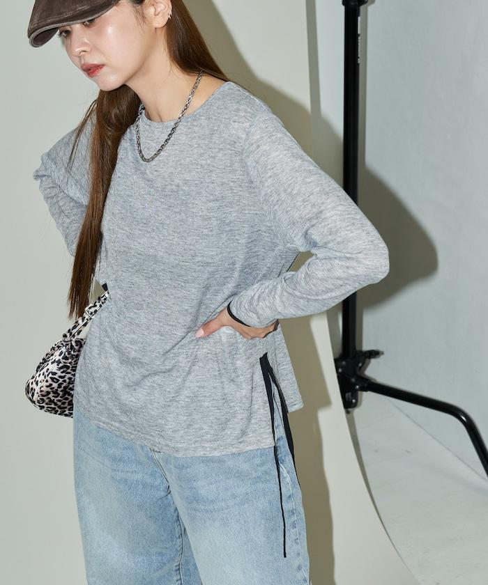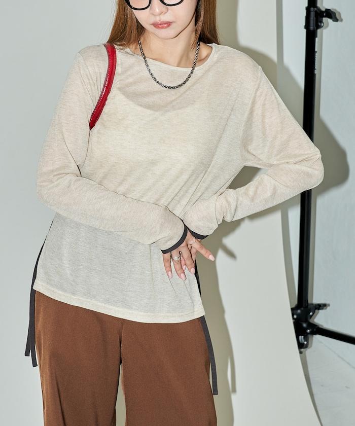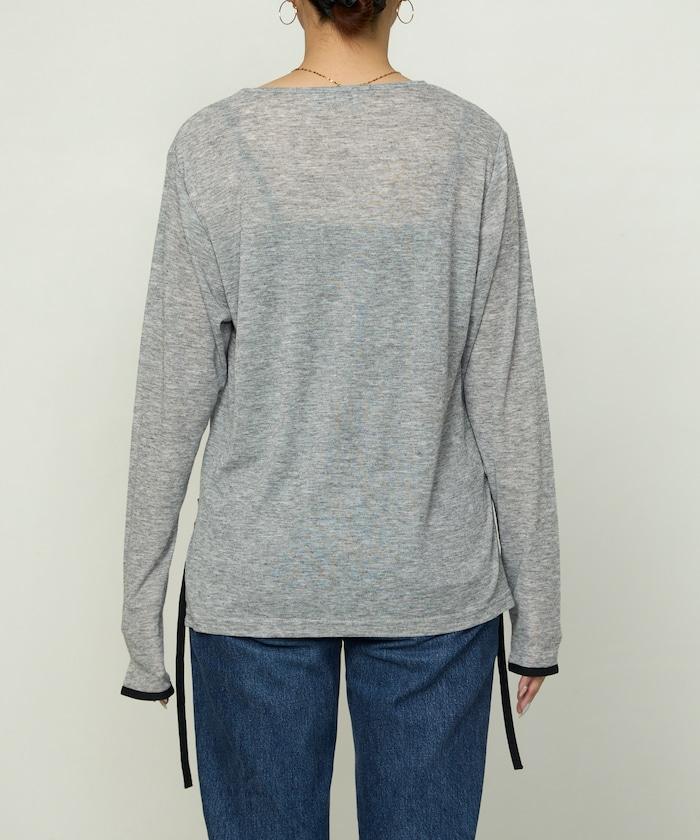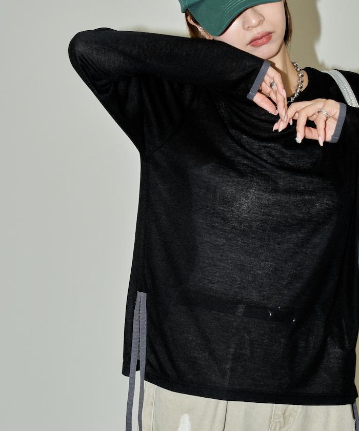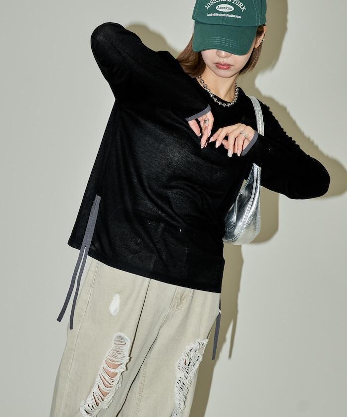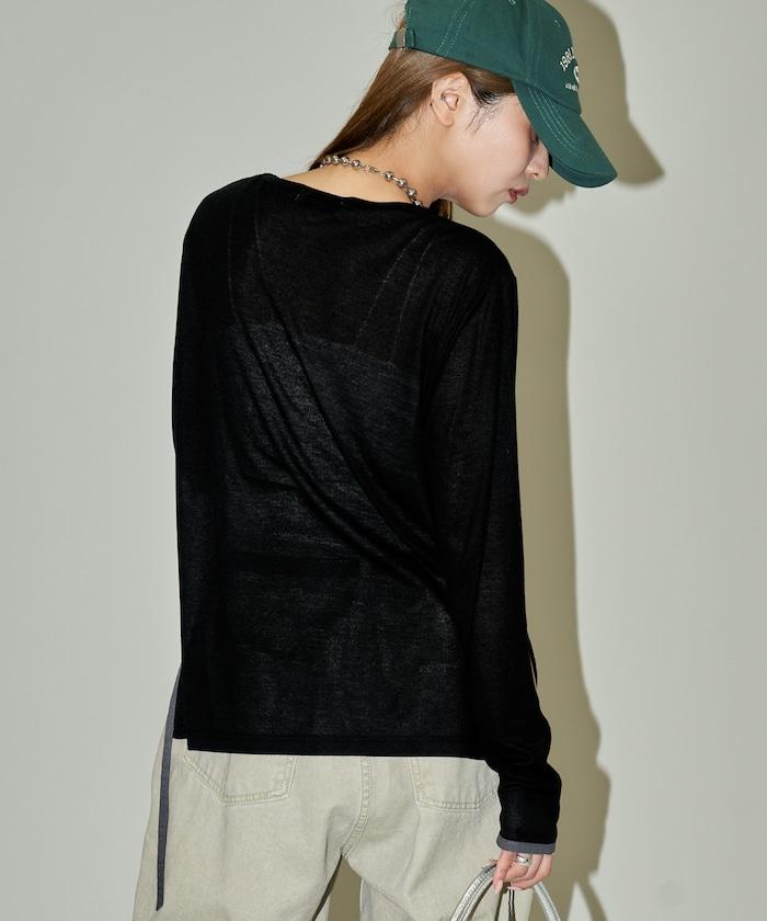 透視鏤空邊鑲長袖T恤 限量