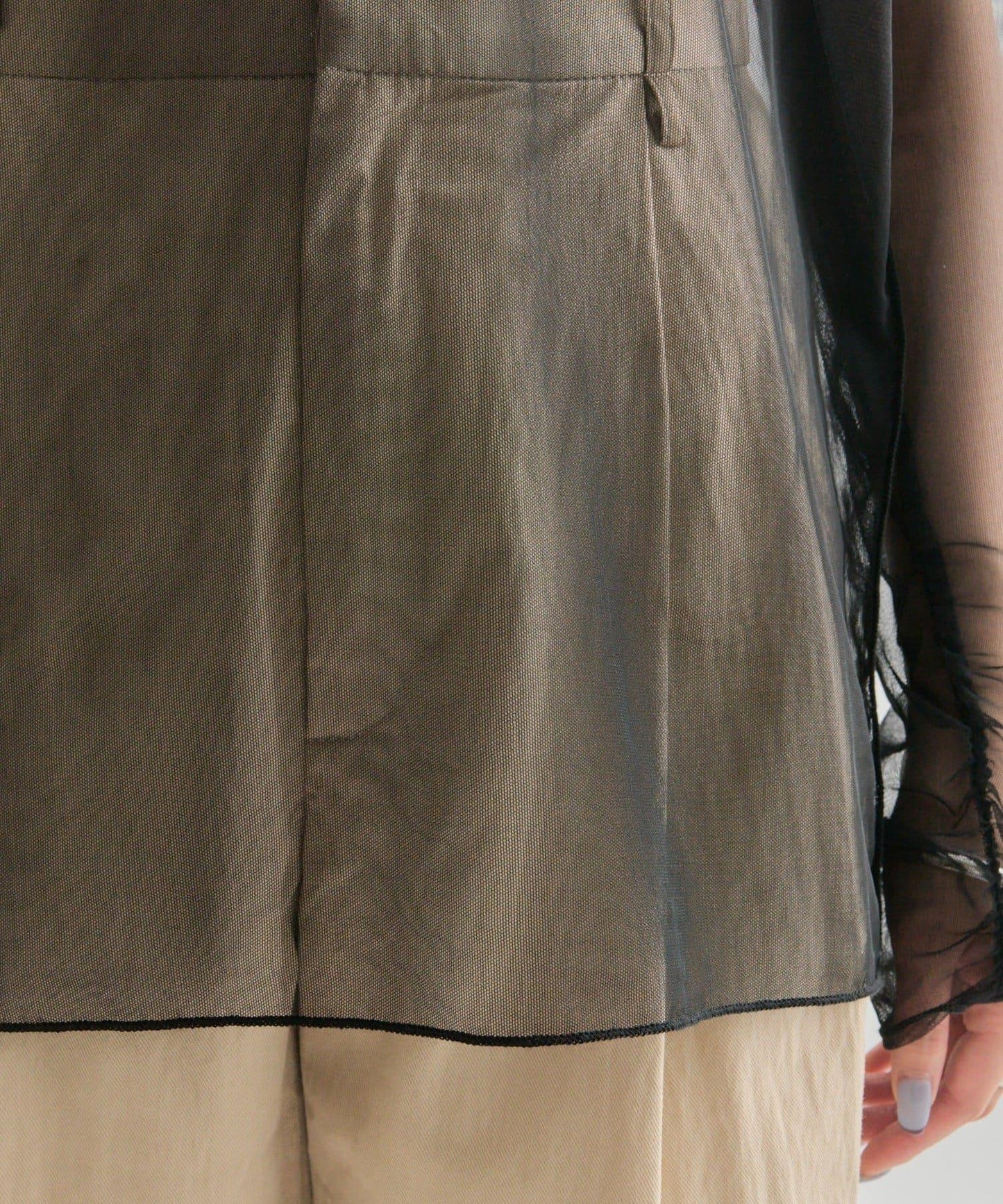 即使在寒冷的天氣裡也可以作為內搭穿著,薄紗材質的寬鬆感為這款單品增添了女性化的印象。