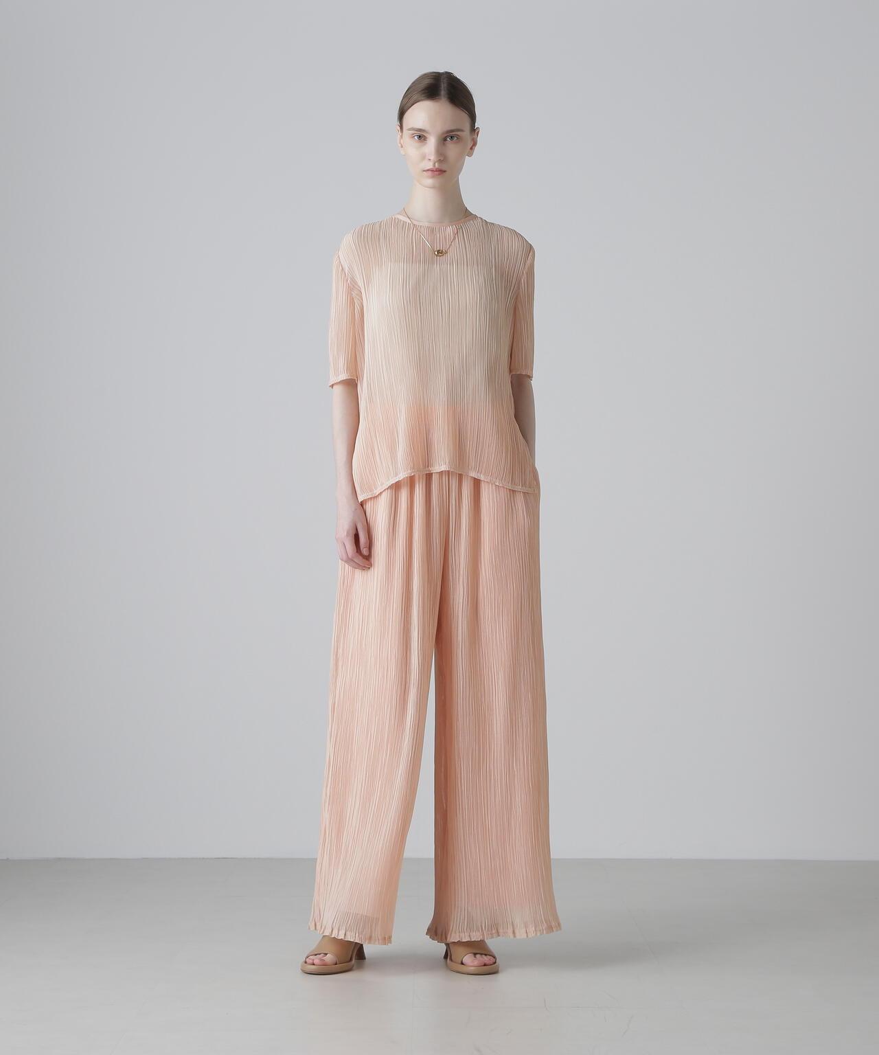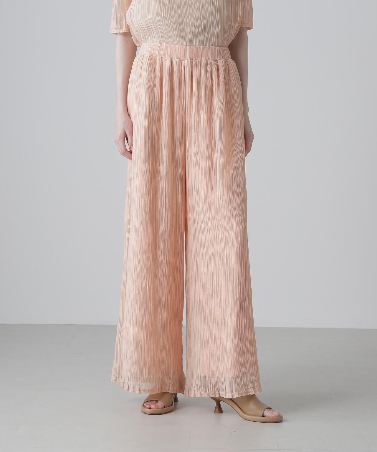 雪紡面料隨意褶皺長褲輕鬆自由的長褲,腰部有鬆緊帶。薄透的面料和褶皺處理使其優雅而不失隨意,百搭而簡潔的款式使其成為一件優雅的單品。輕薄的面料不會讓褲子顯得臃腫,因此您也可以將其作為連衣裙的內搭。此外,建議搭配同款上衣(貨號:531-5210725)作為內搭。採用透明、透視、精緻的雪紡面料,隨意褶皺工藝。*請注意不要卡住或滑落。
