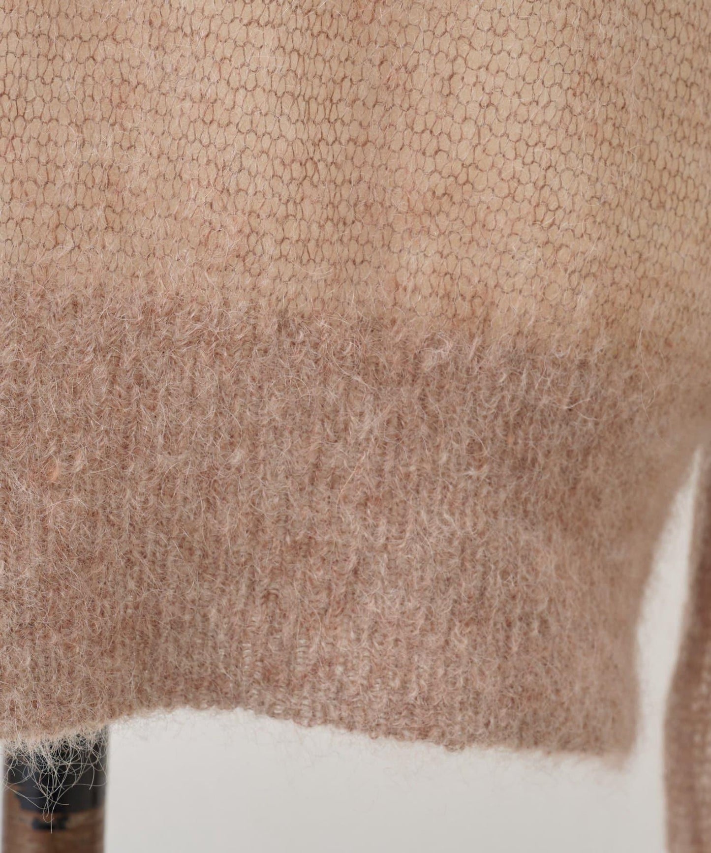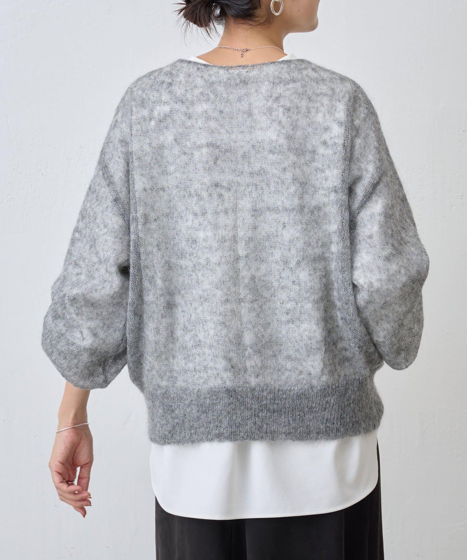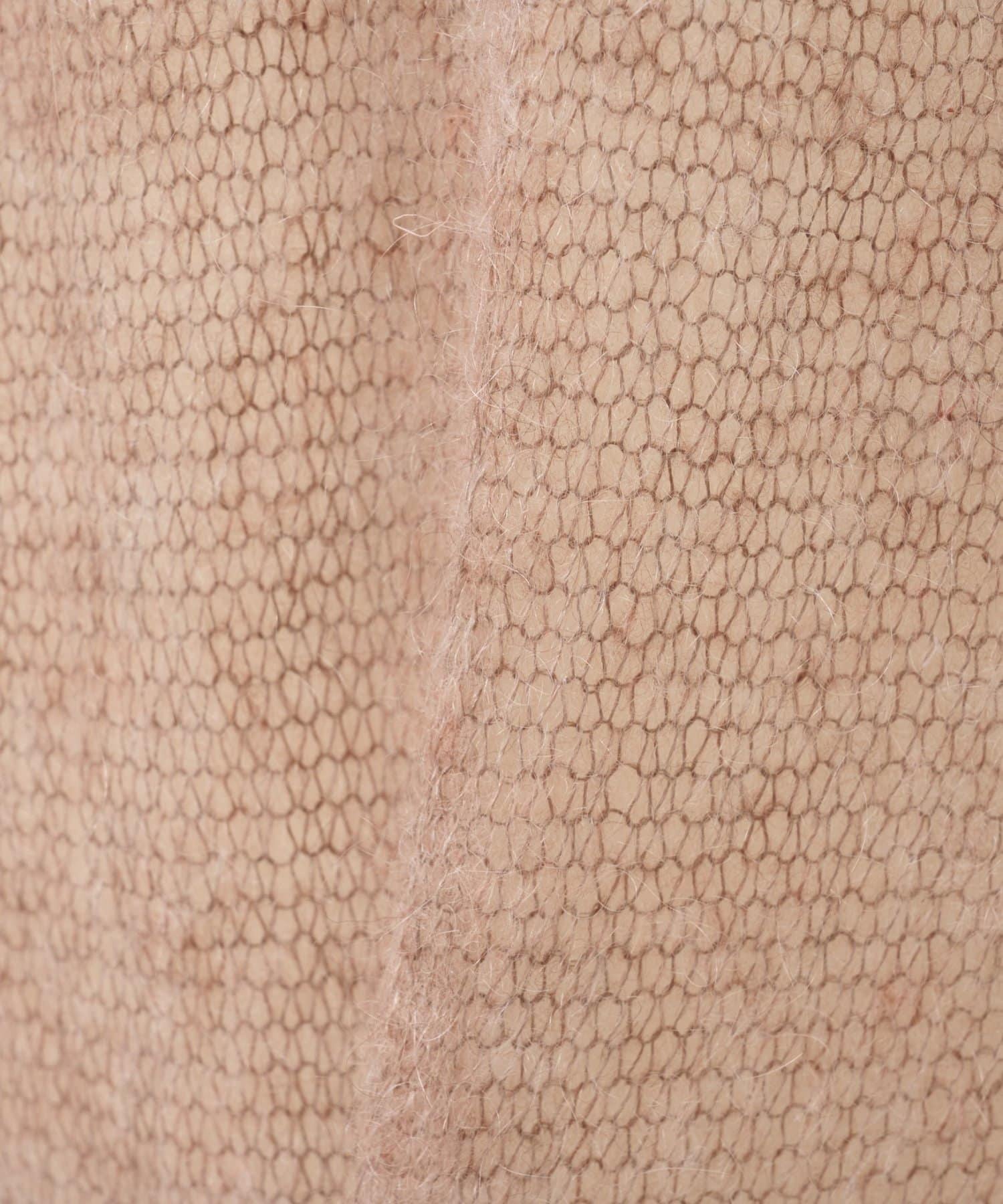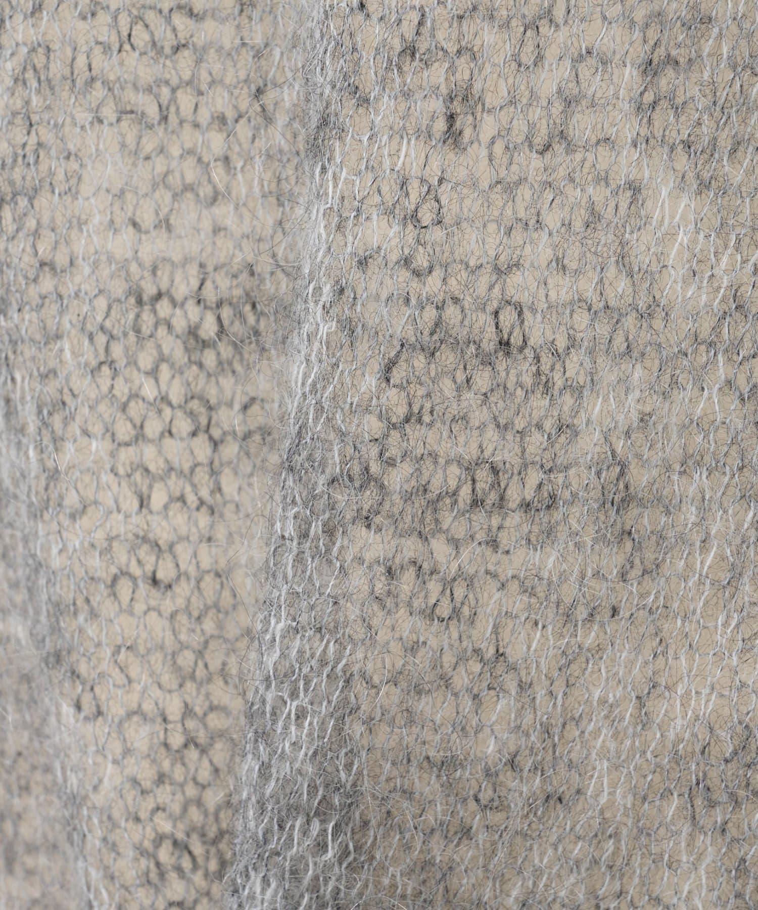 馬海毛與毛皮混紡的面料,以及混色紗線形成的細微大理石花紋,給人一種優雅的印象。