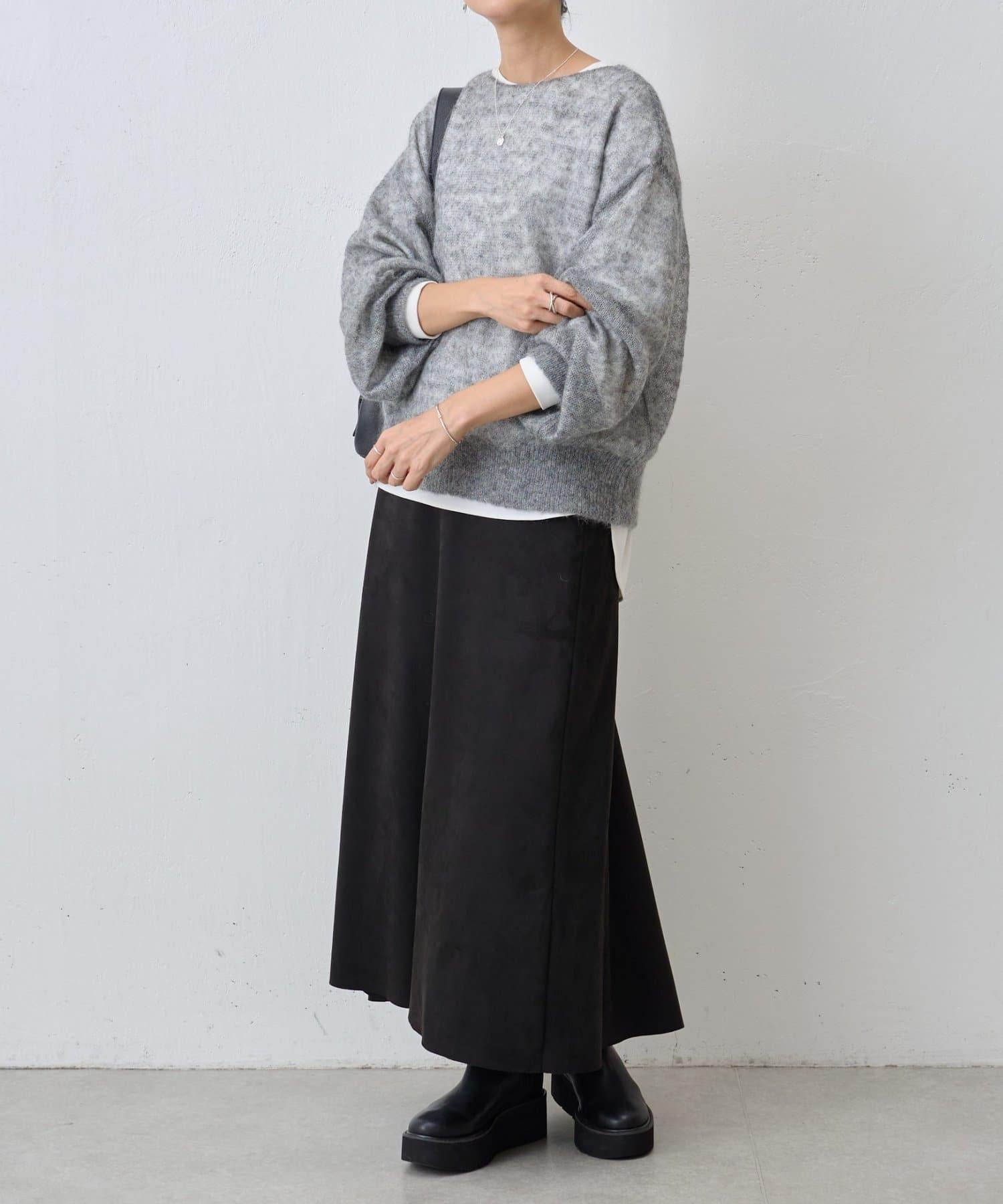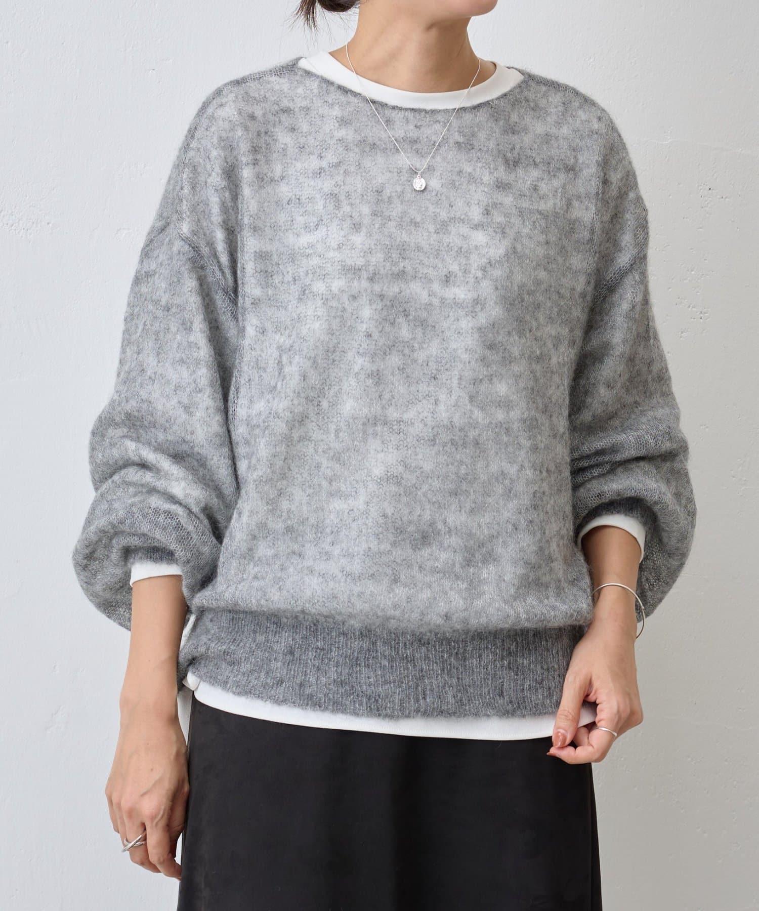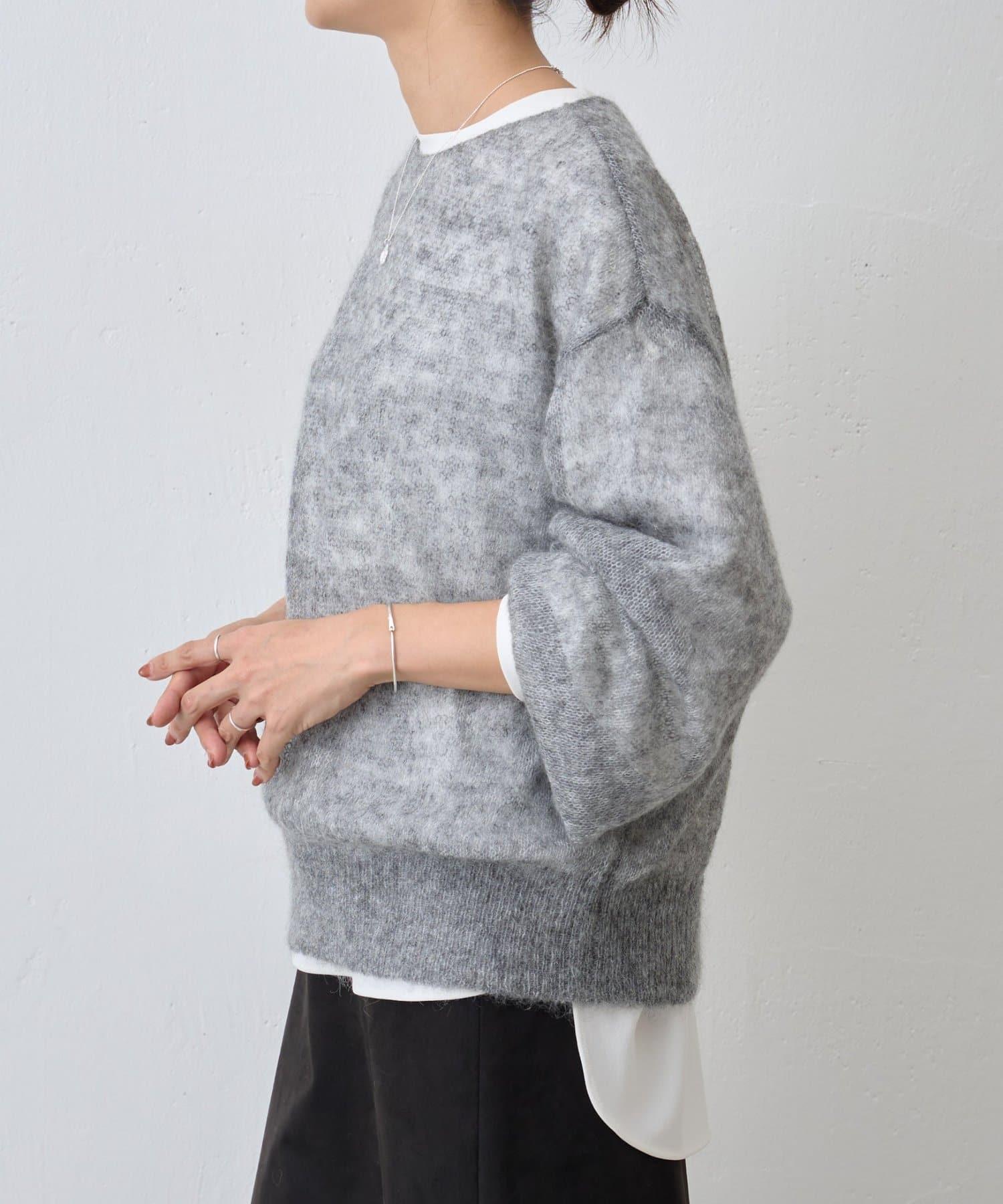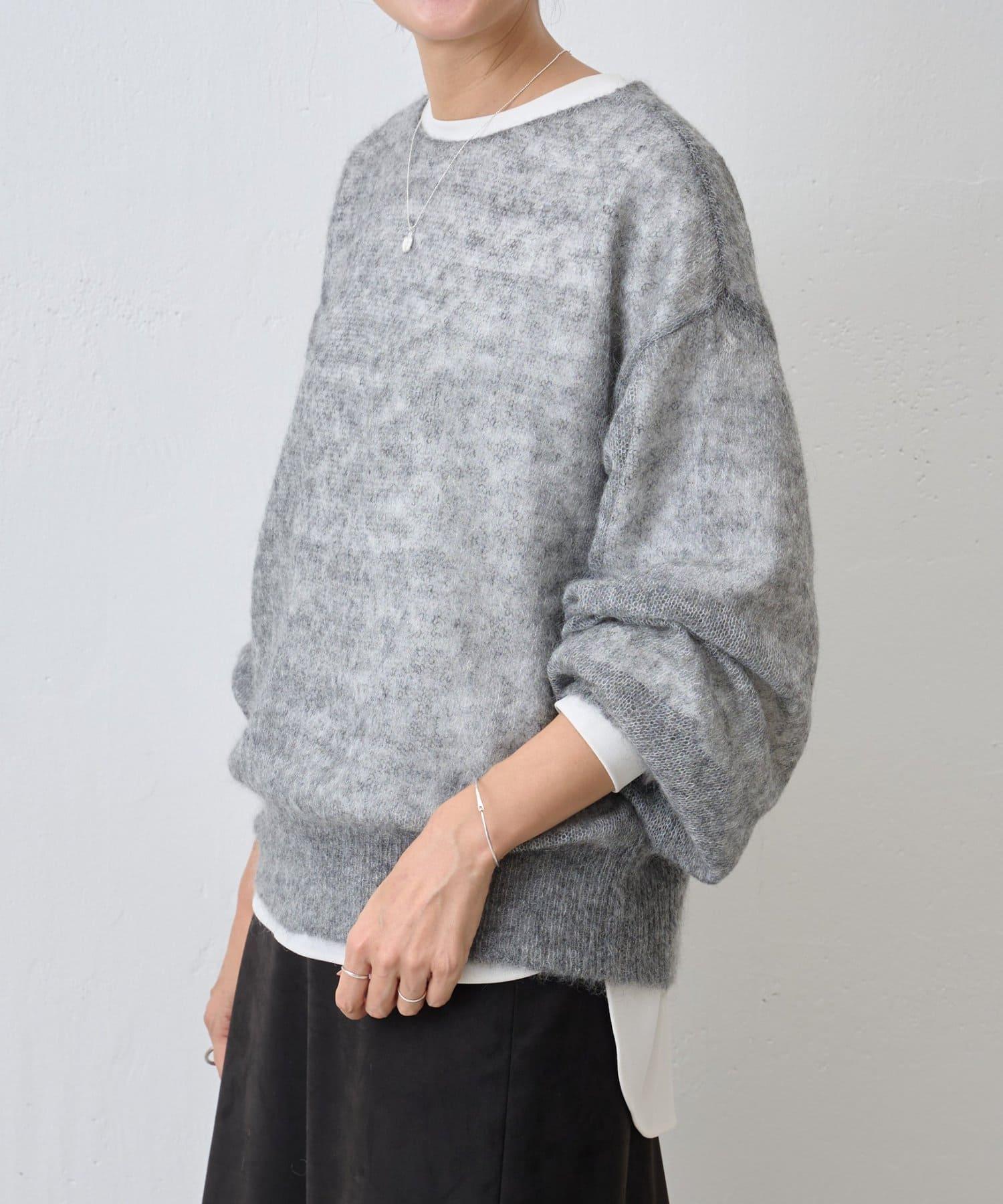 馬海毛與毛皮混紡的面料,以及混色紗線形成的細微大理石花紋,給人一種優雅的印象。