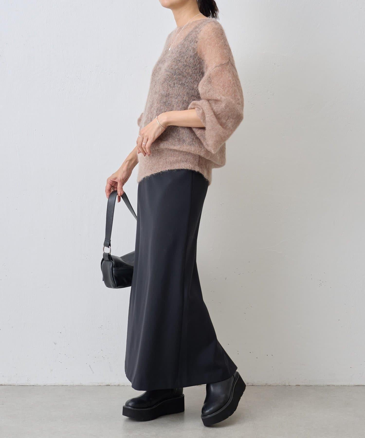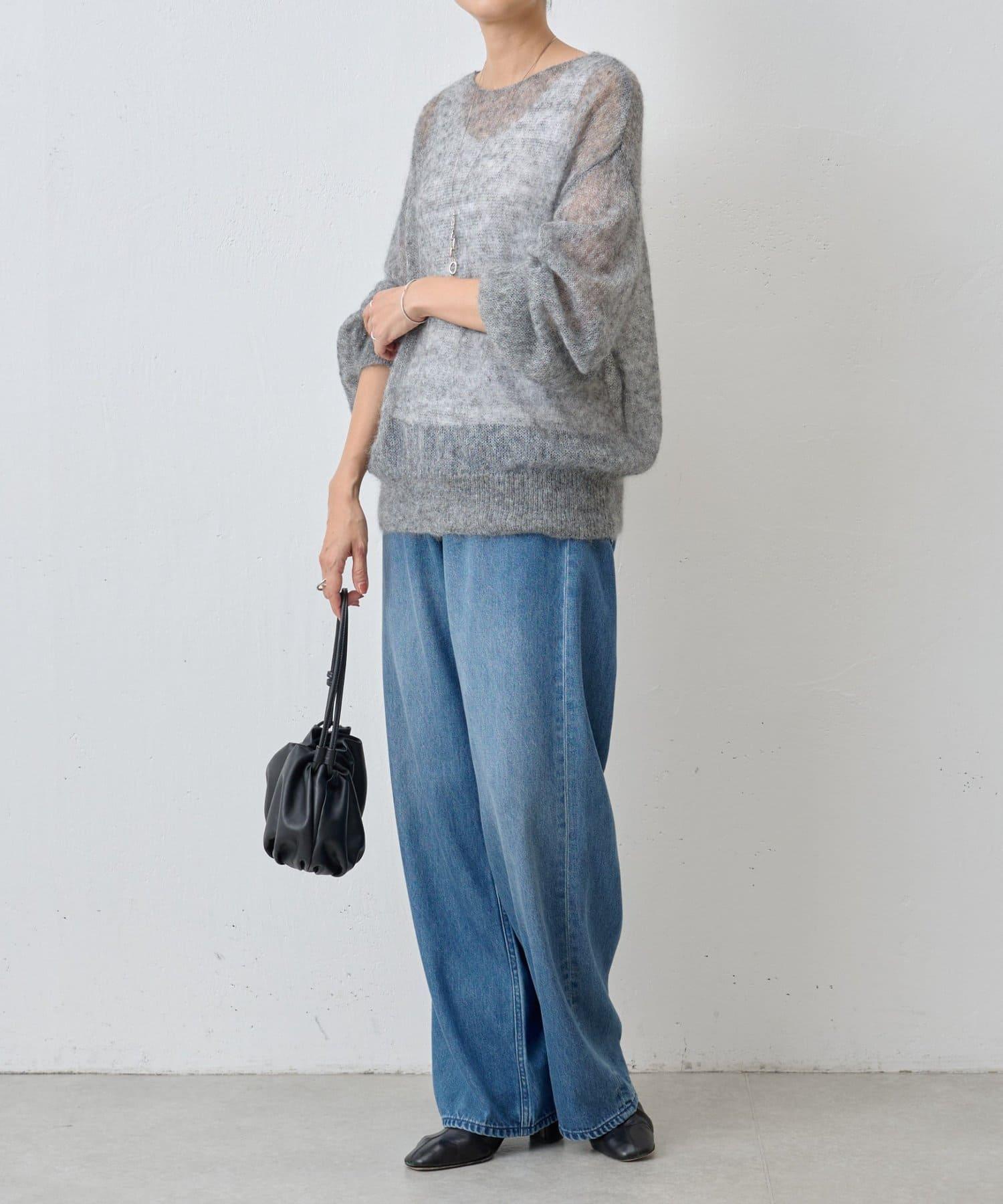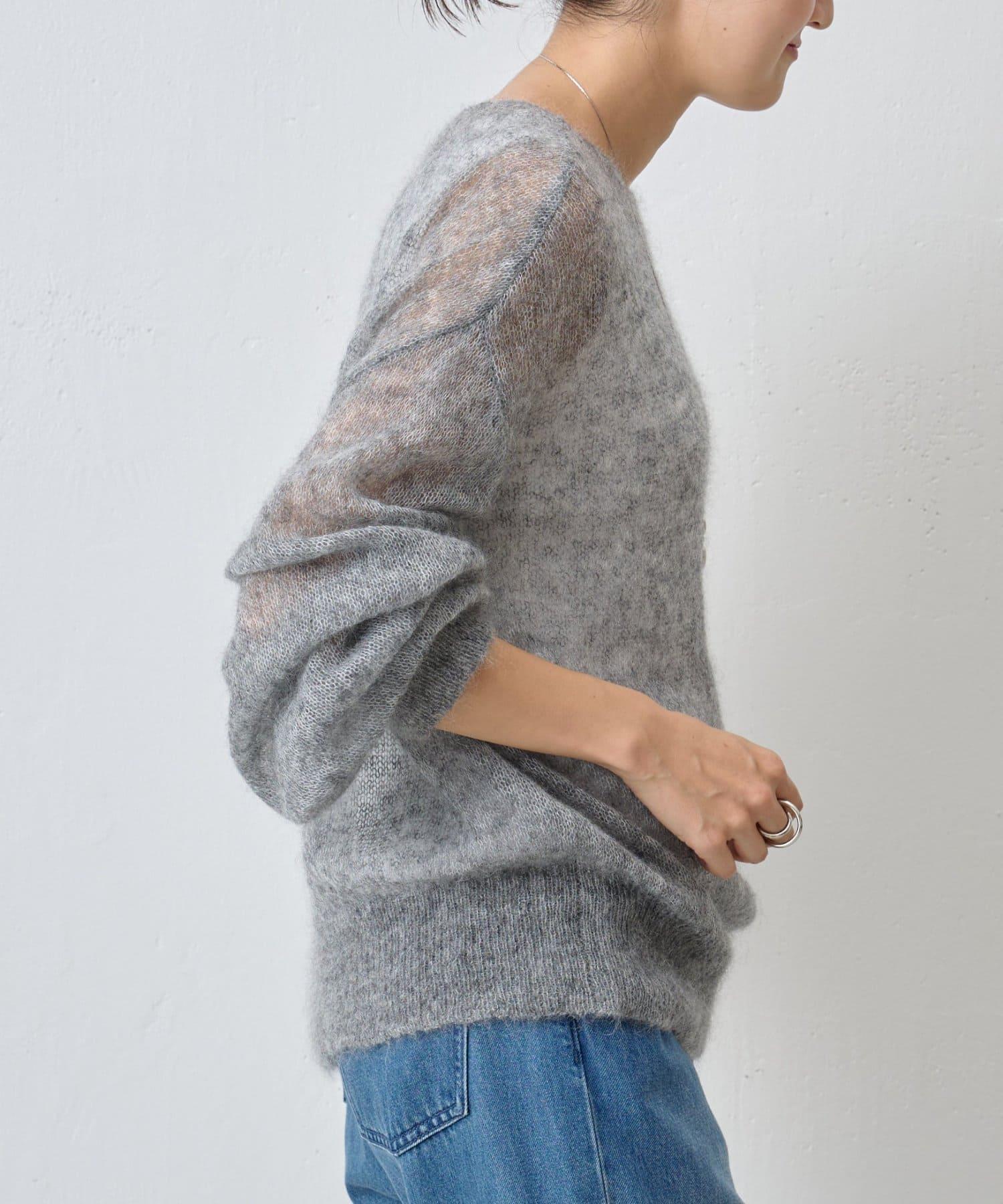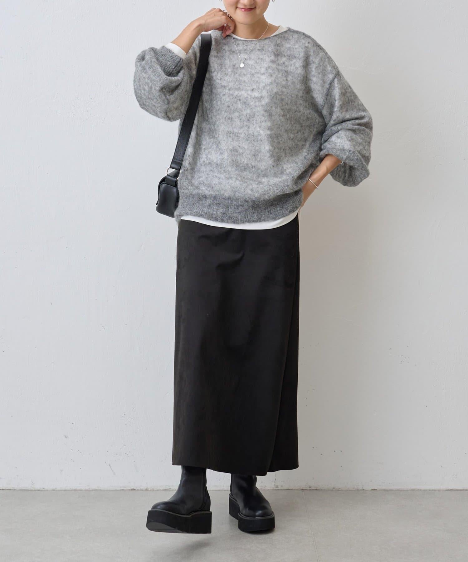 馬海毛與毛皮混紡的面料,以及混色紗線形成的細微大理石花紋,給人一種優雅的印象。