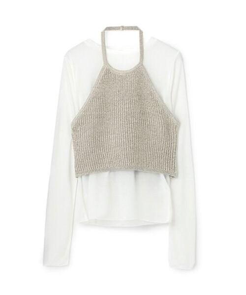 透視長 T 採用淺色處理,袖口和下襬有鏤空設計。