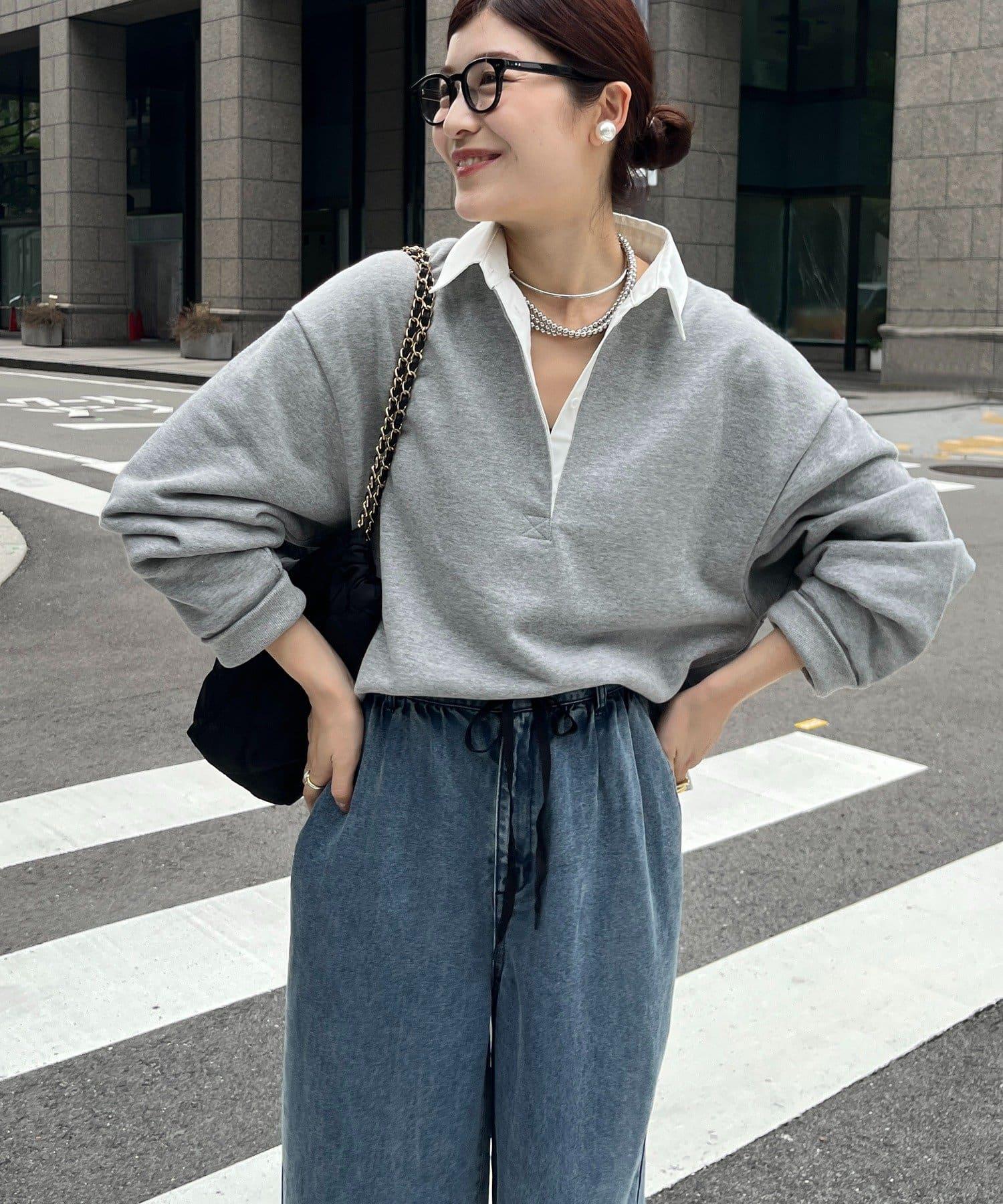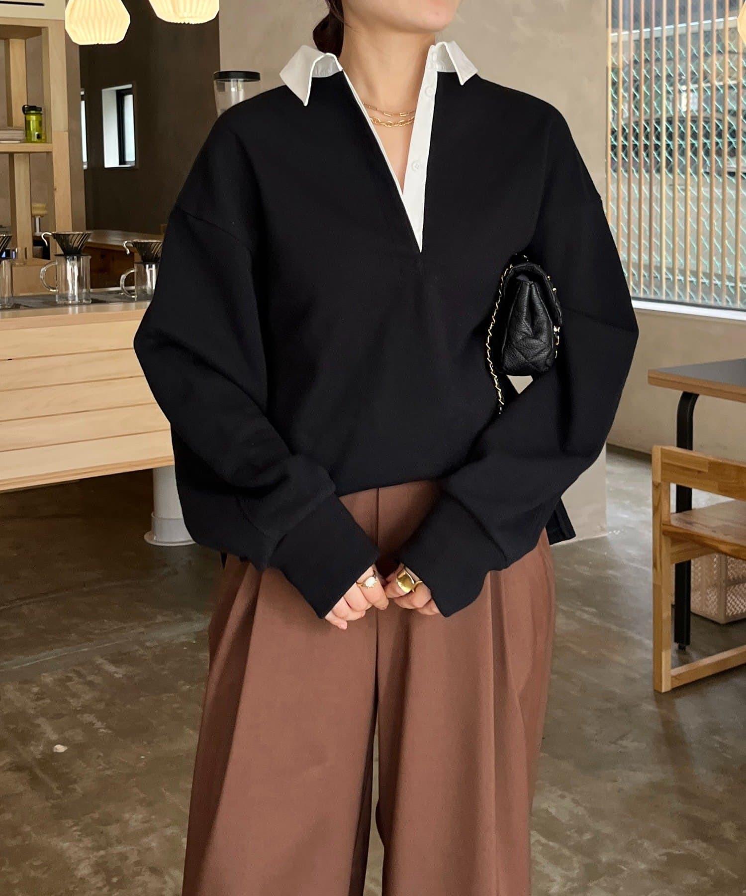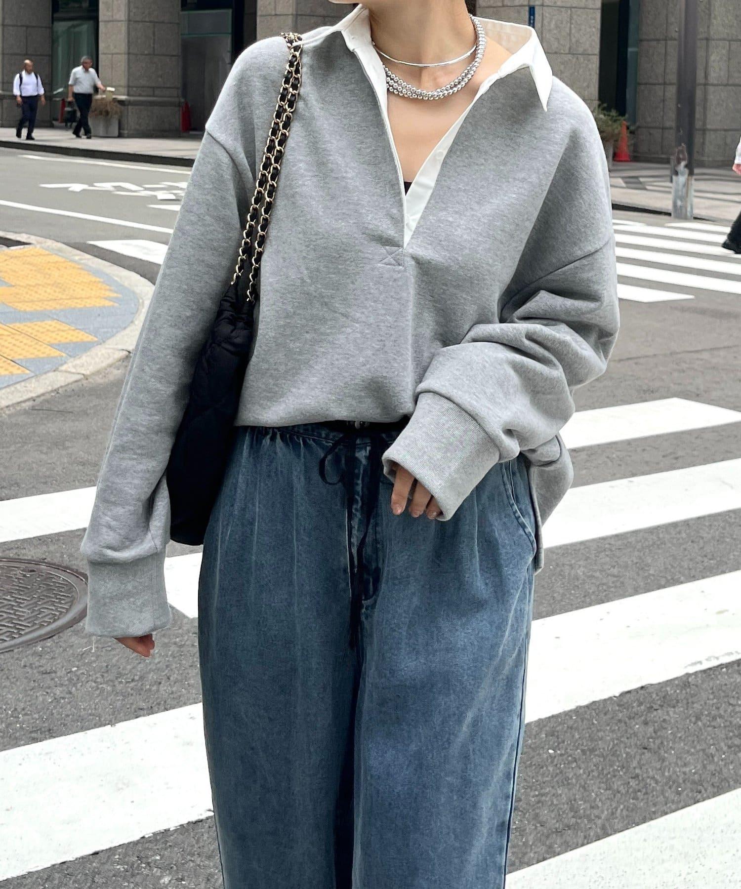 【這邊 企劃】襯衫領拉鍊衛衣上衣