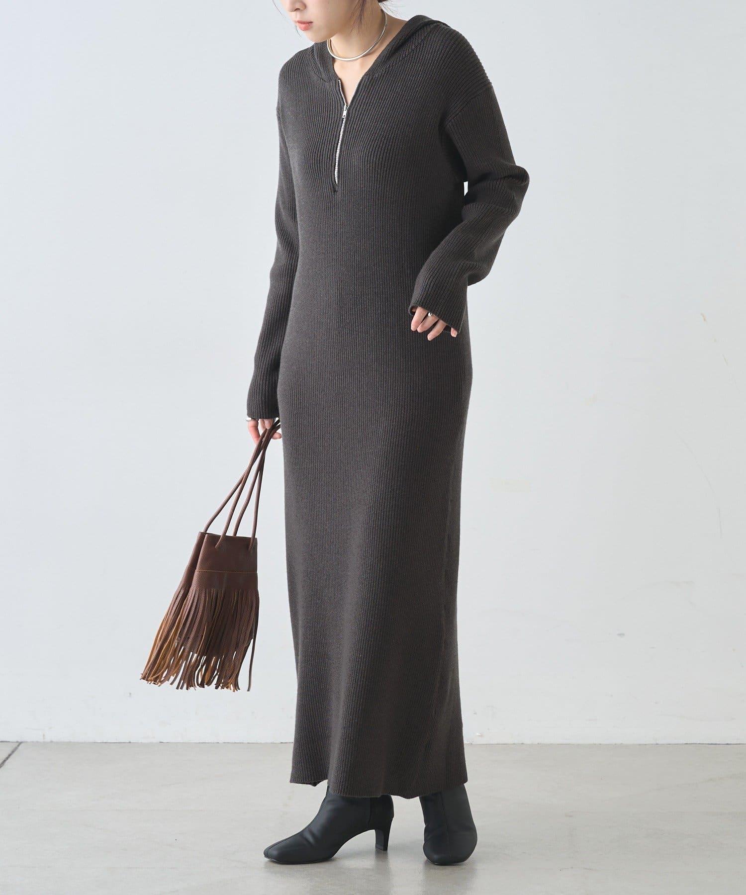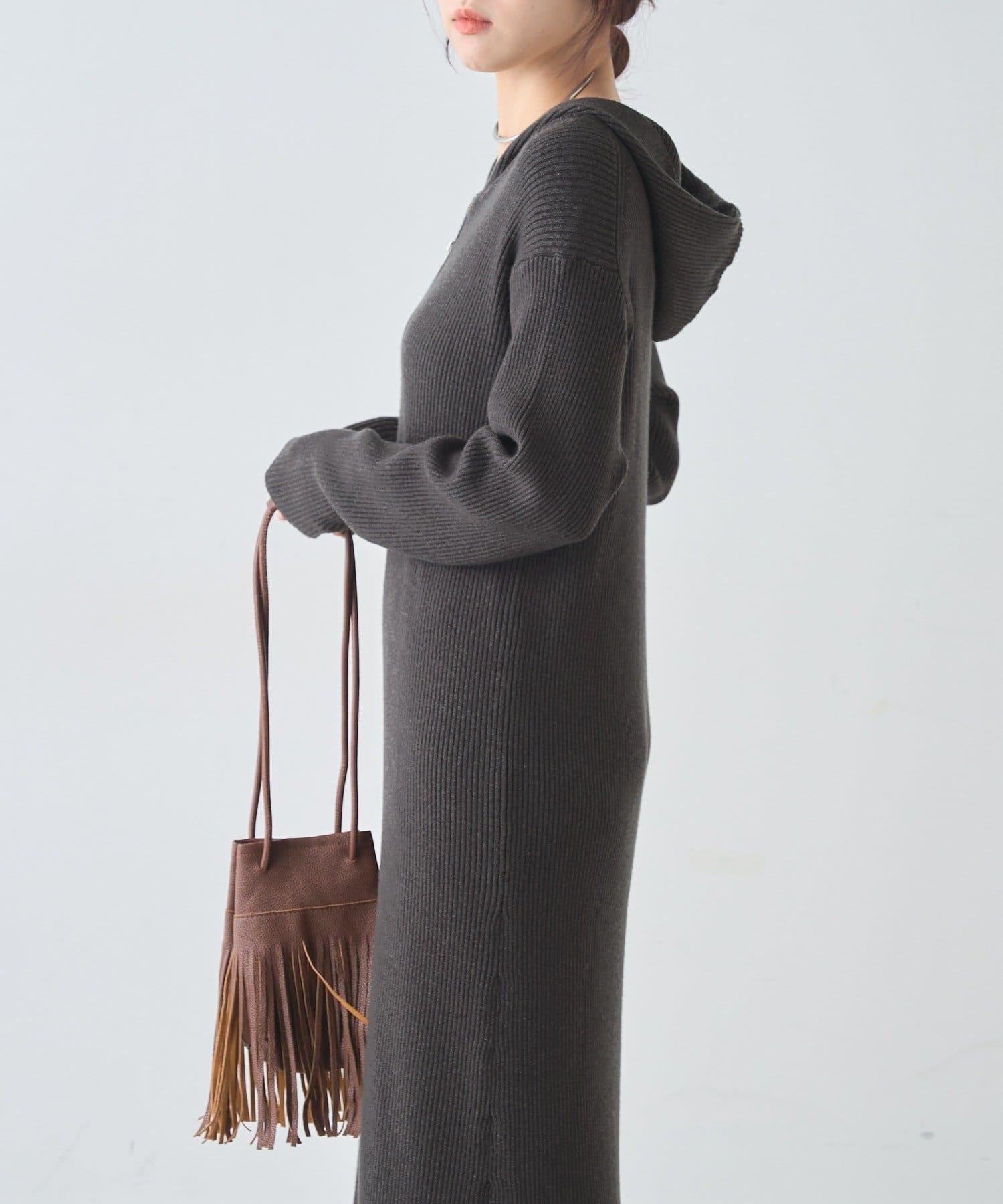 休閒裝扮的完美之選!帶兜帽的羅紋針織連衣裙