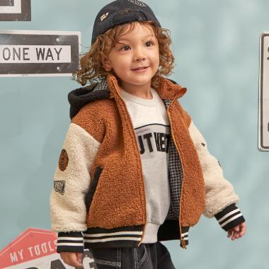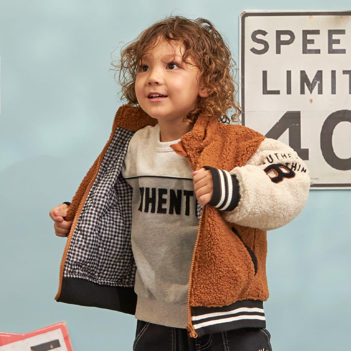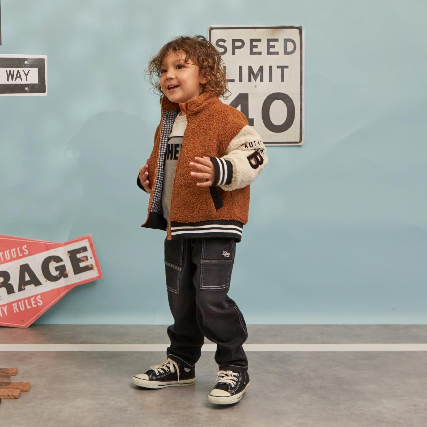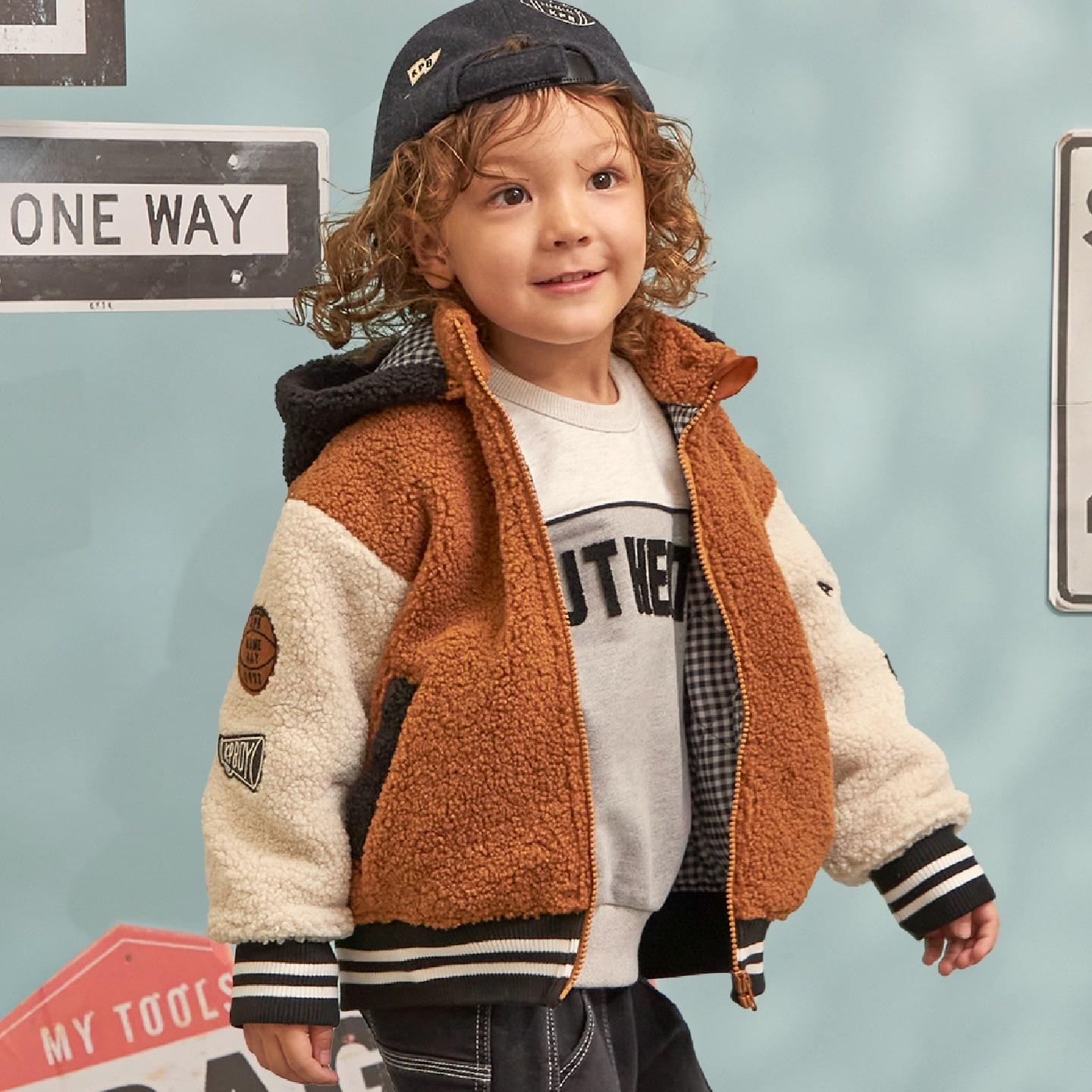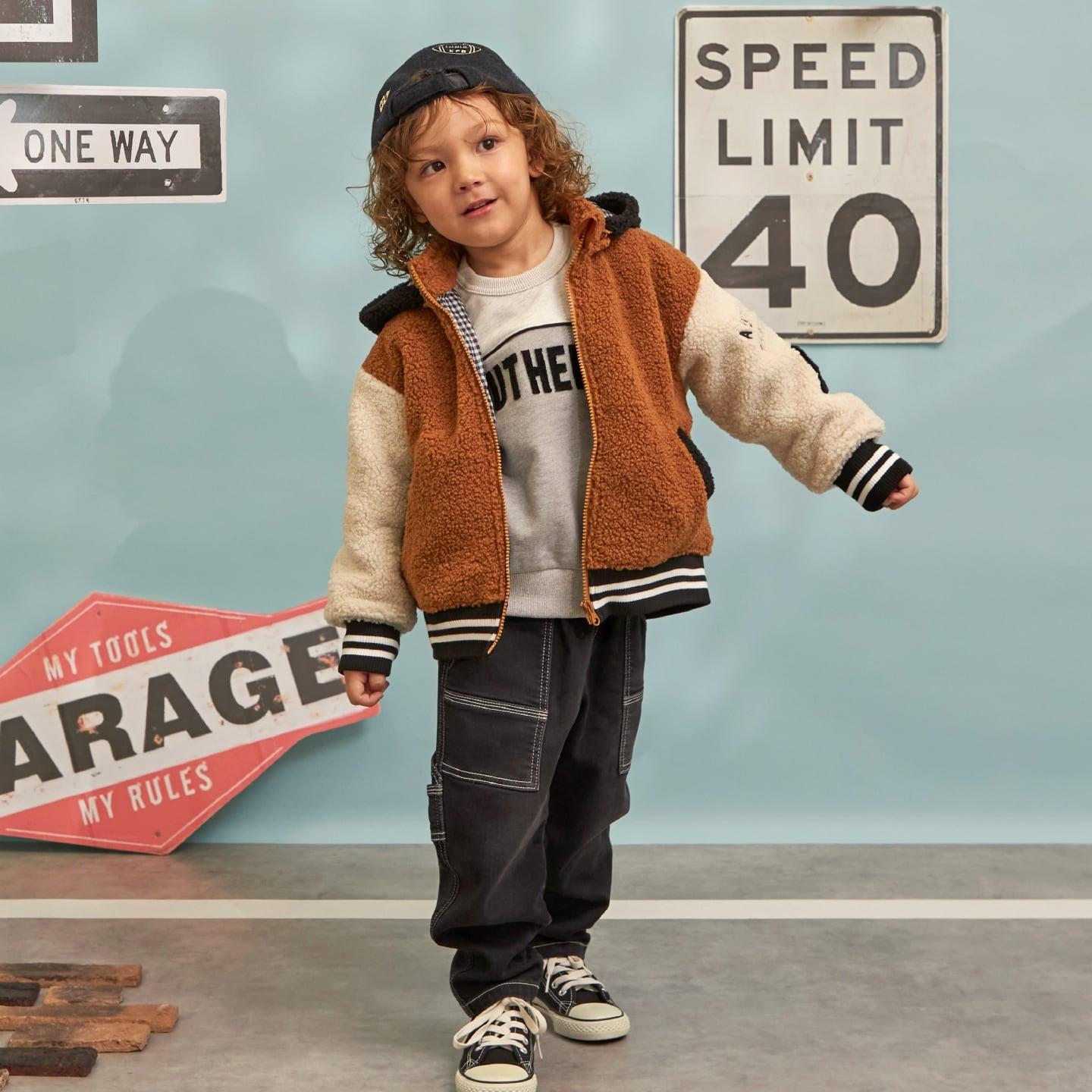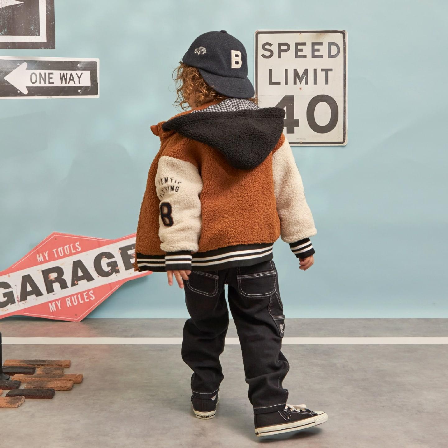 袖子上的補丁和刺繡以及帶線條的羅紋增添了酷感和運動氣息。