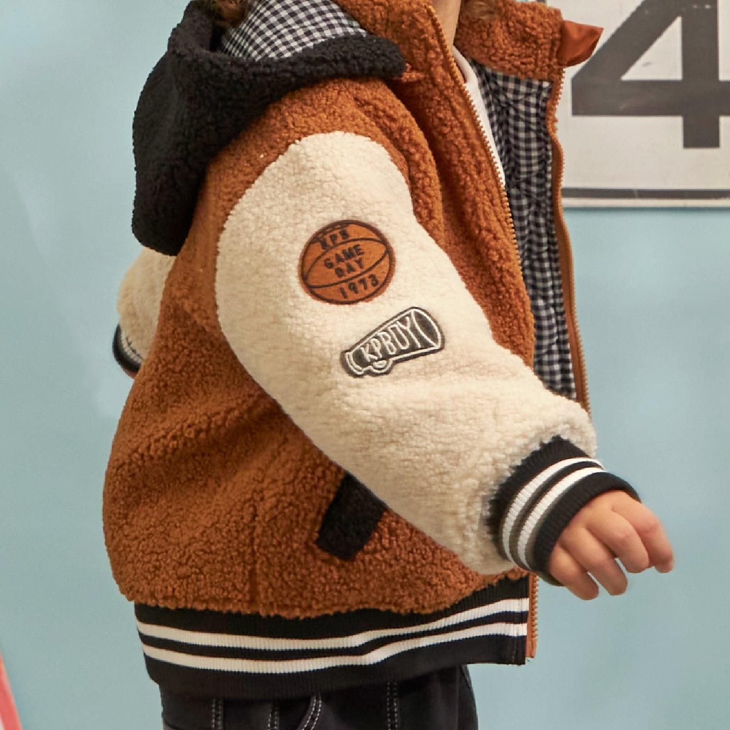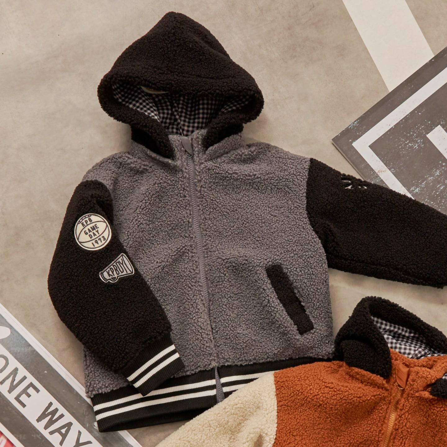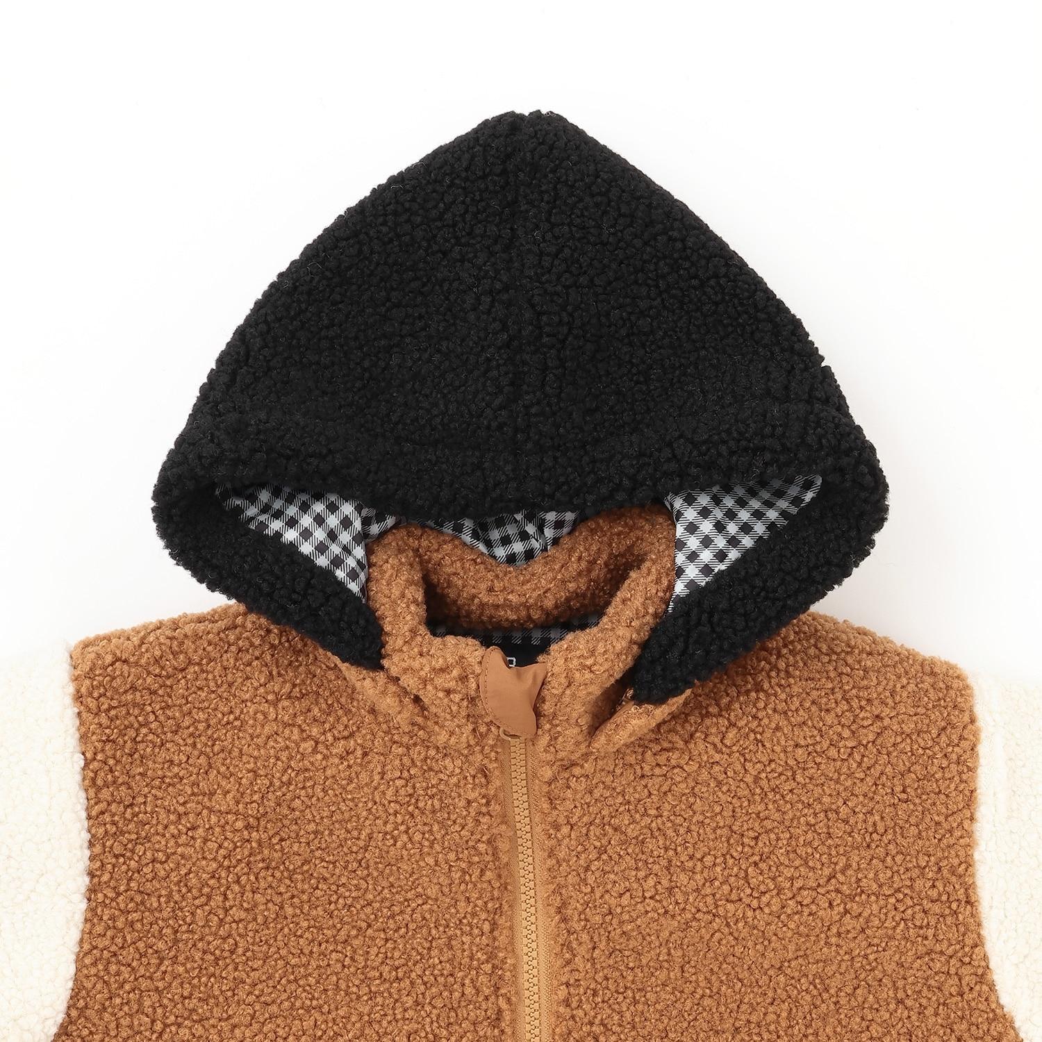 連帽拼色羊羔絨夾克