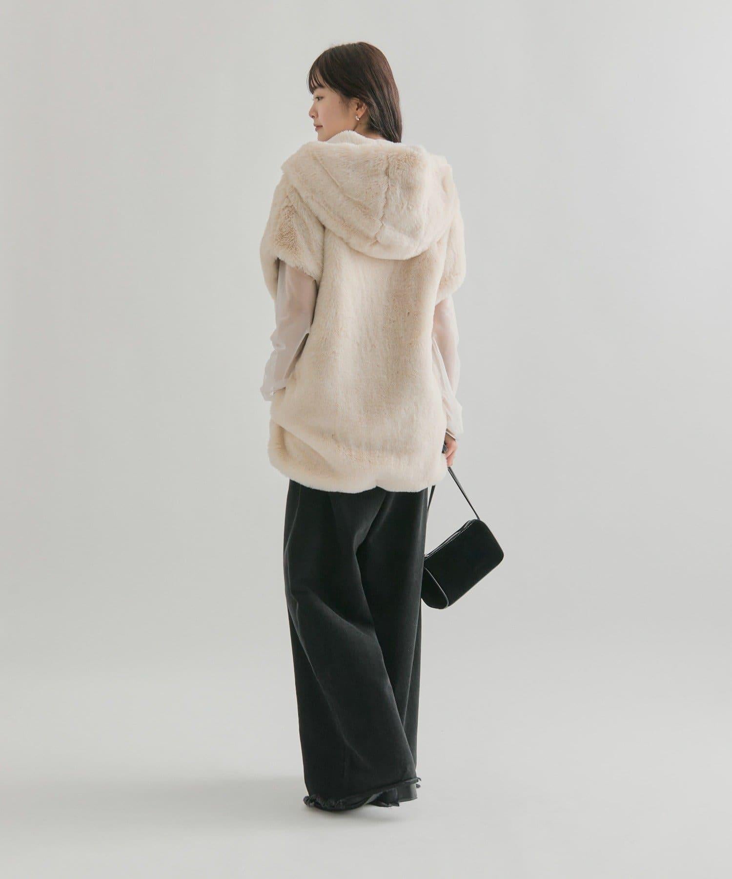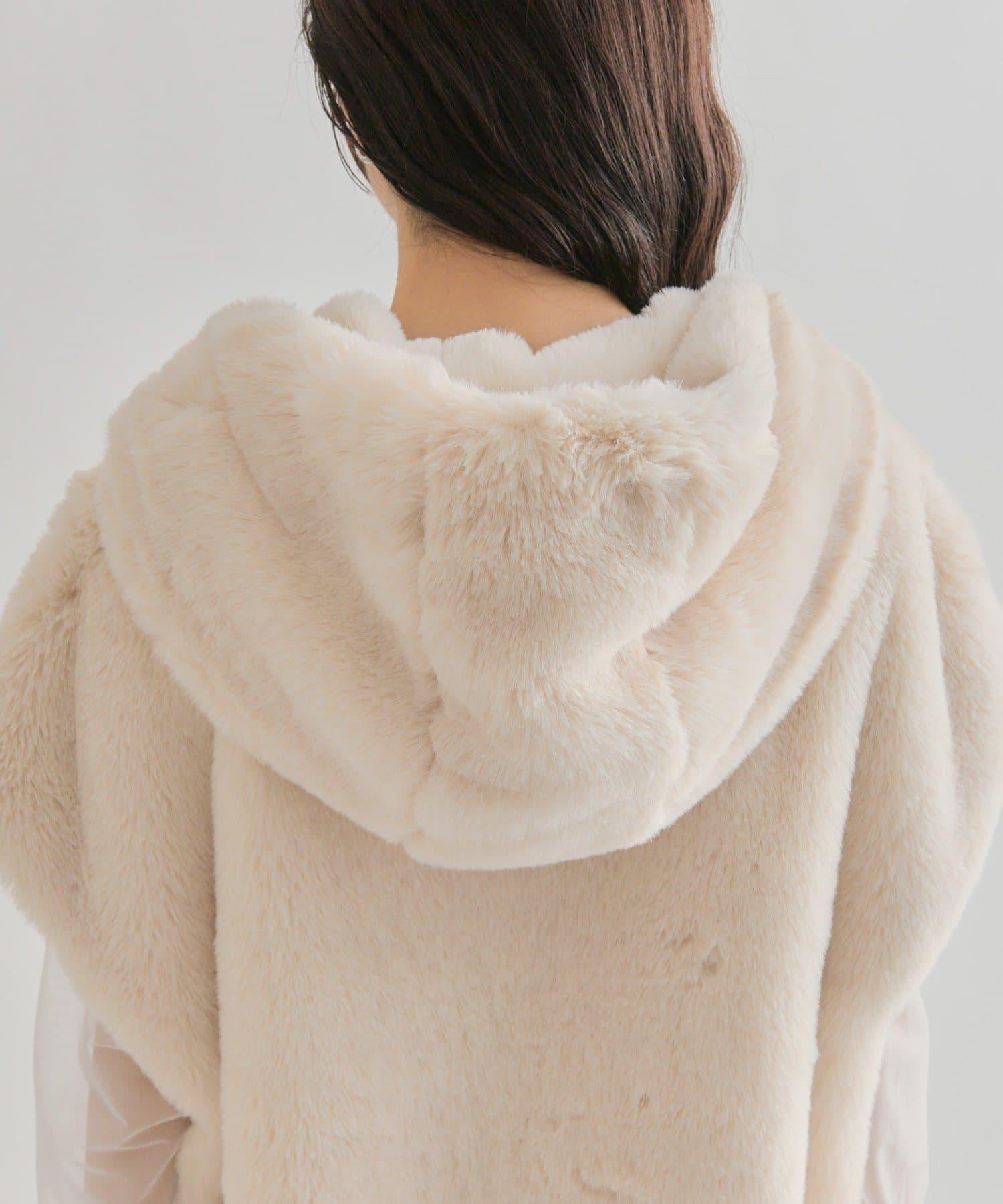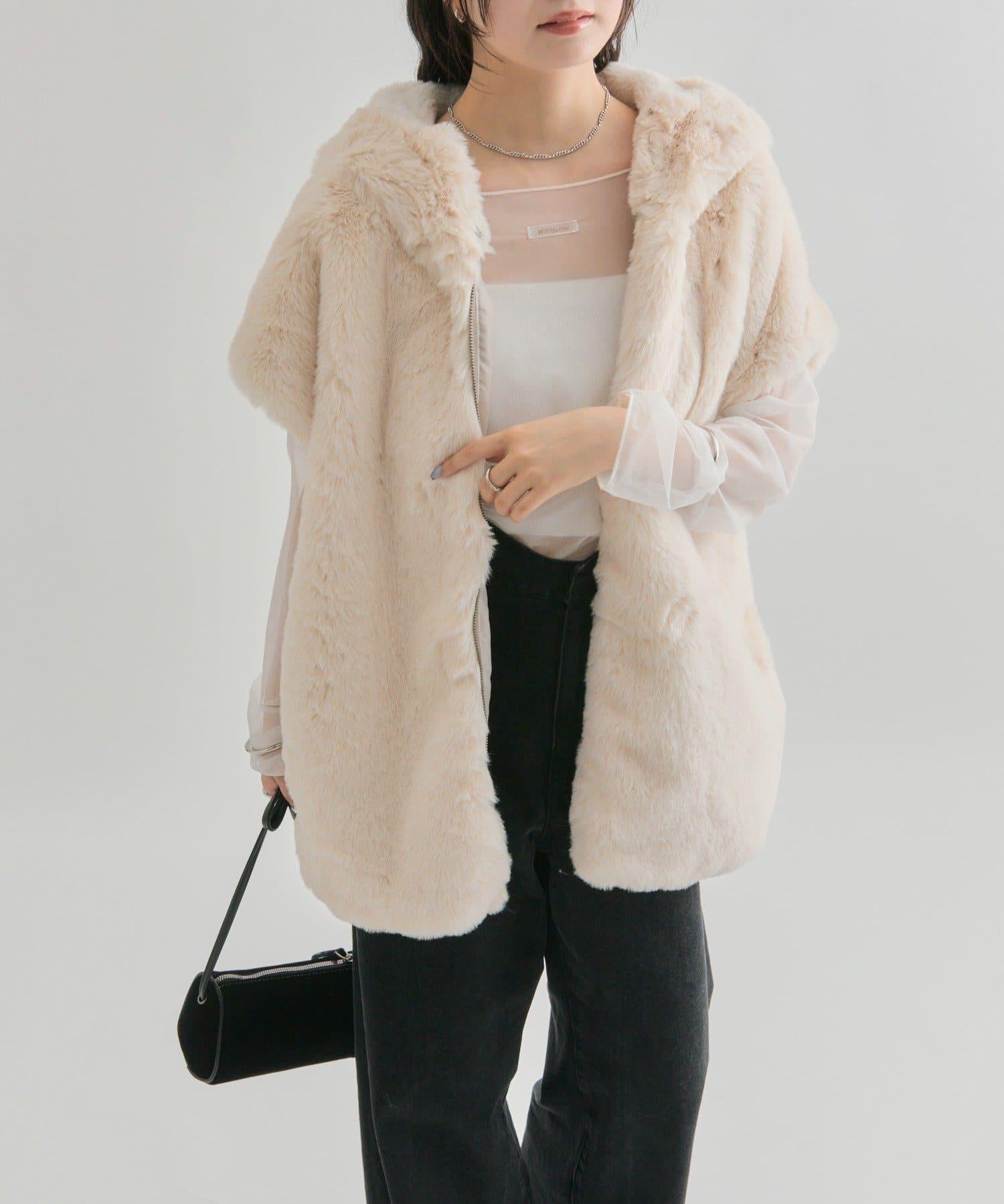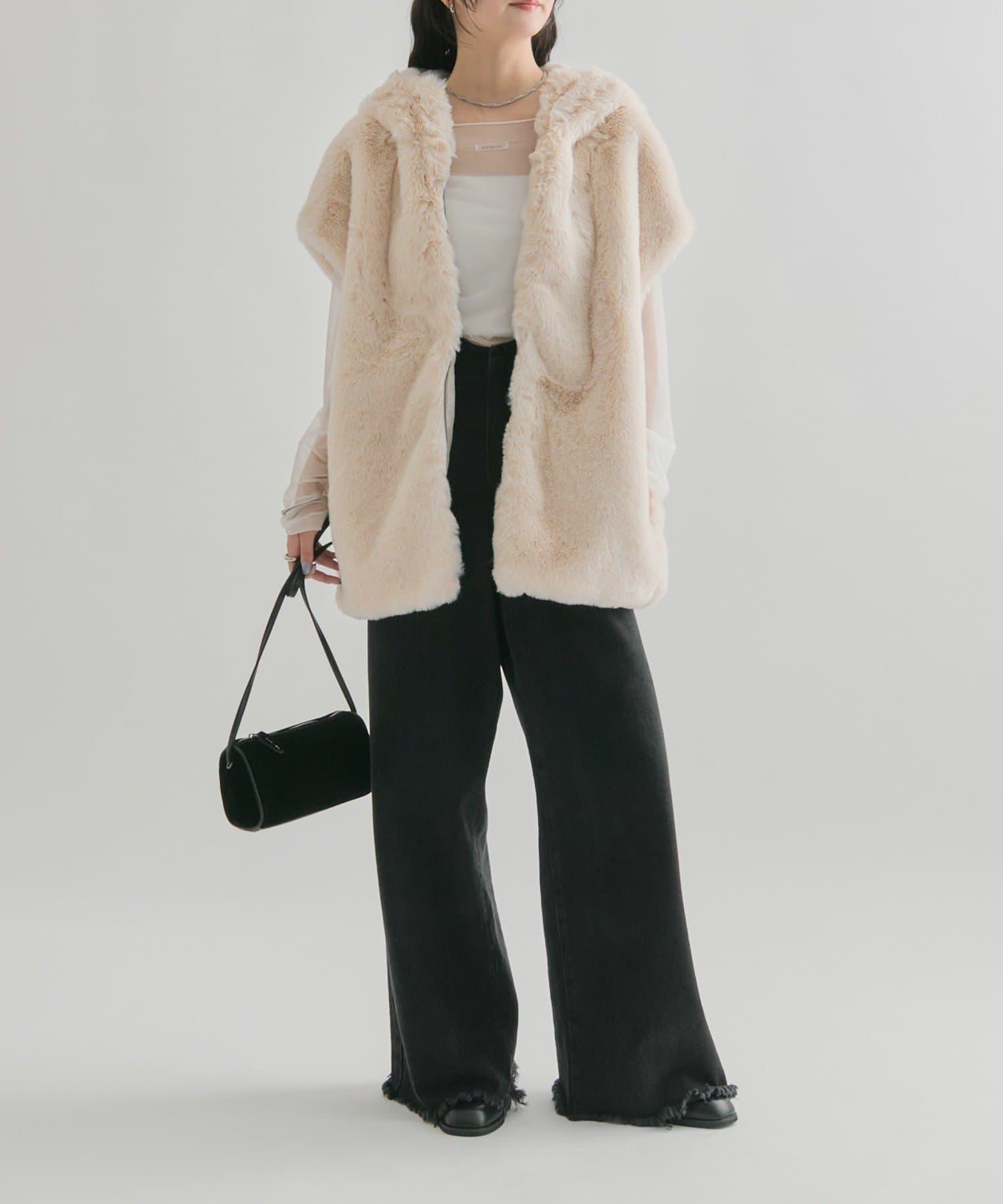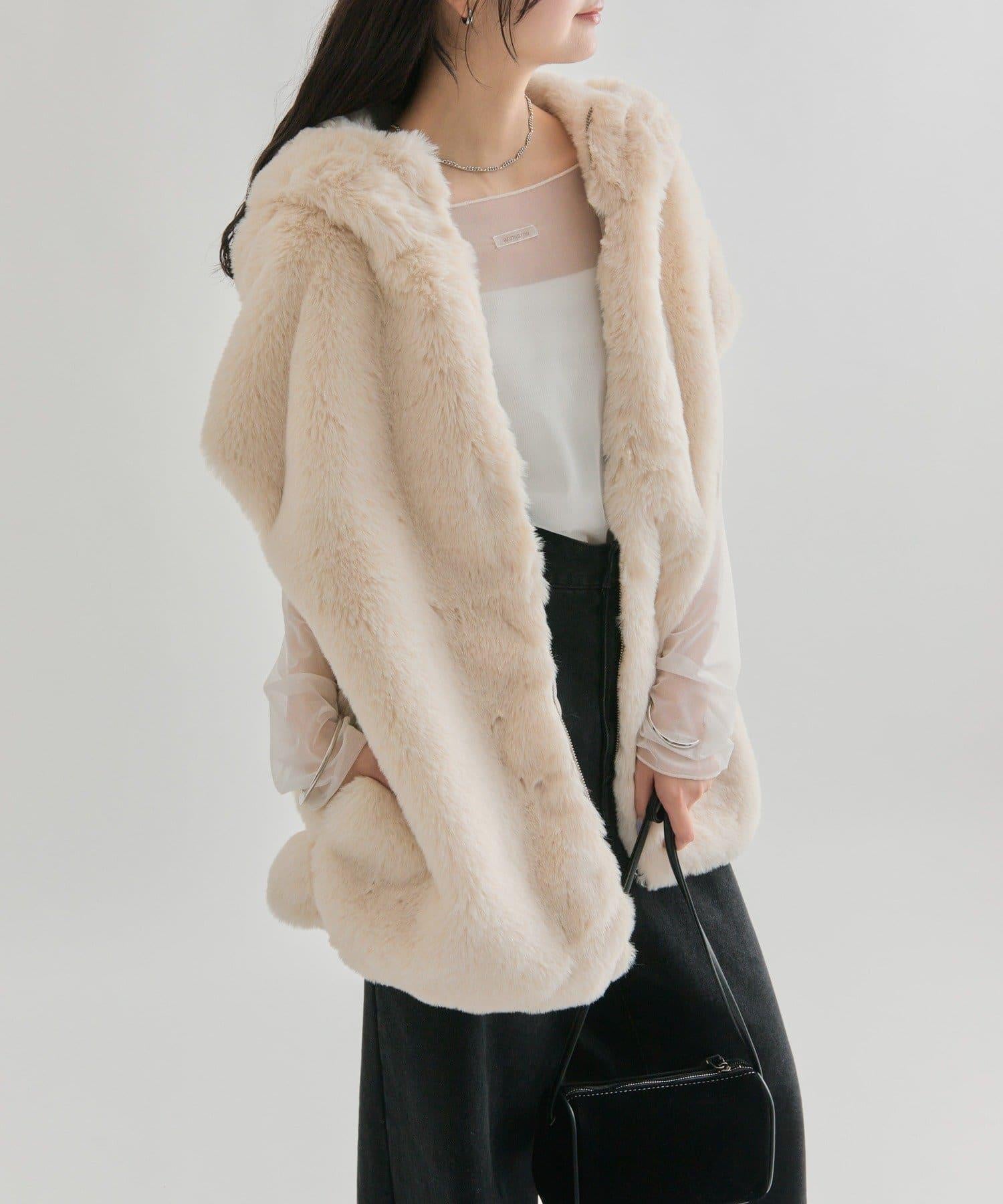連帽皮草馬甲只需簡單搭配,即可打造優雅造型。