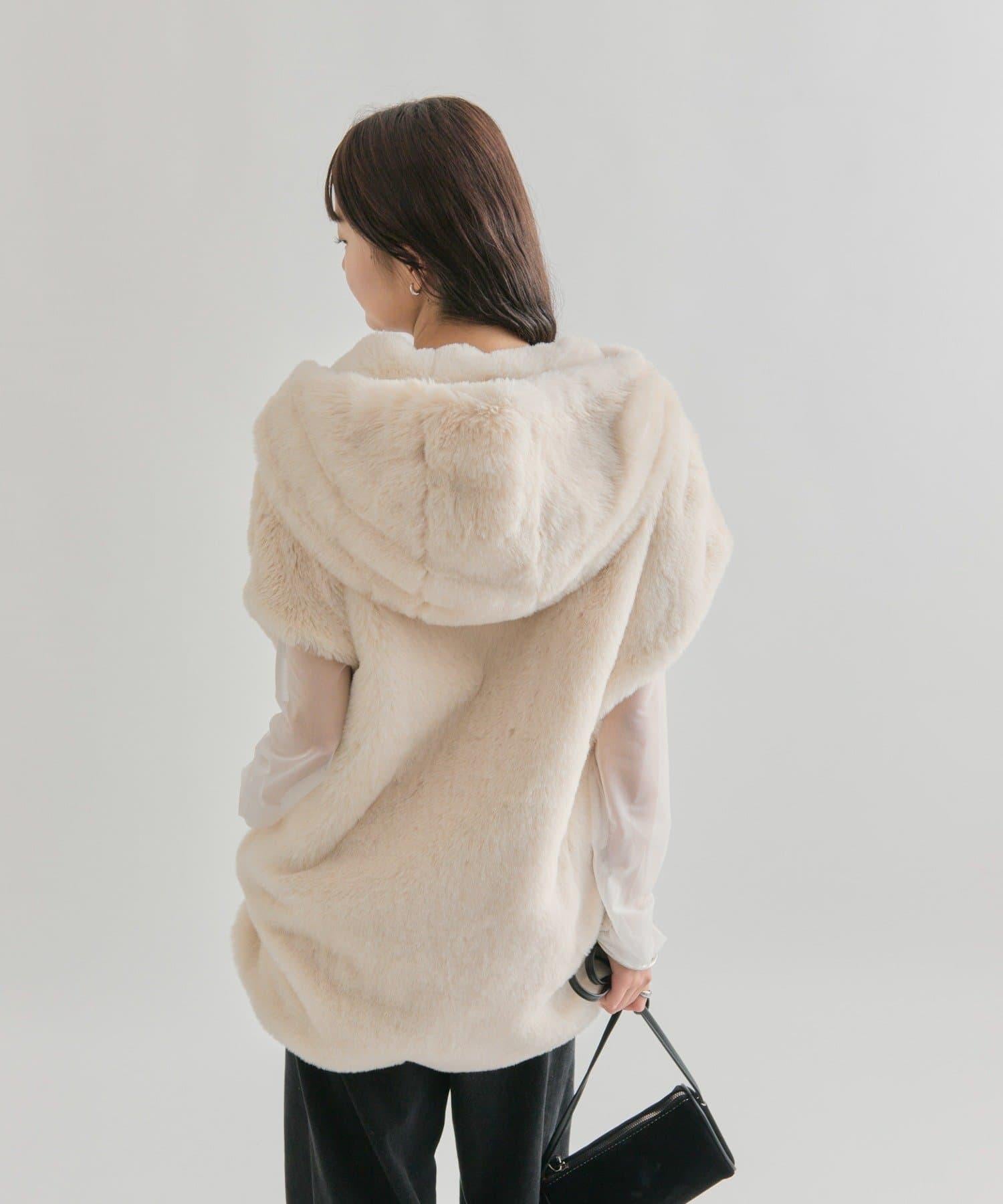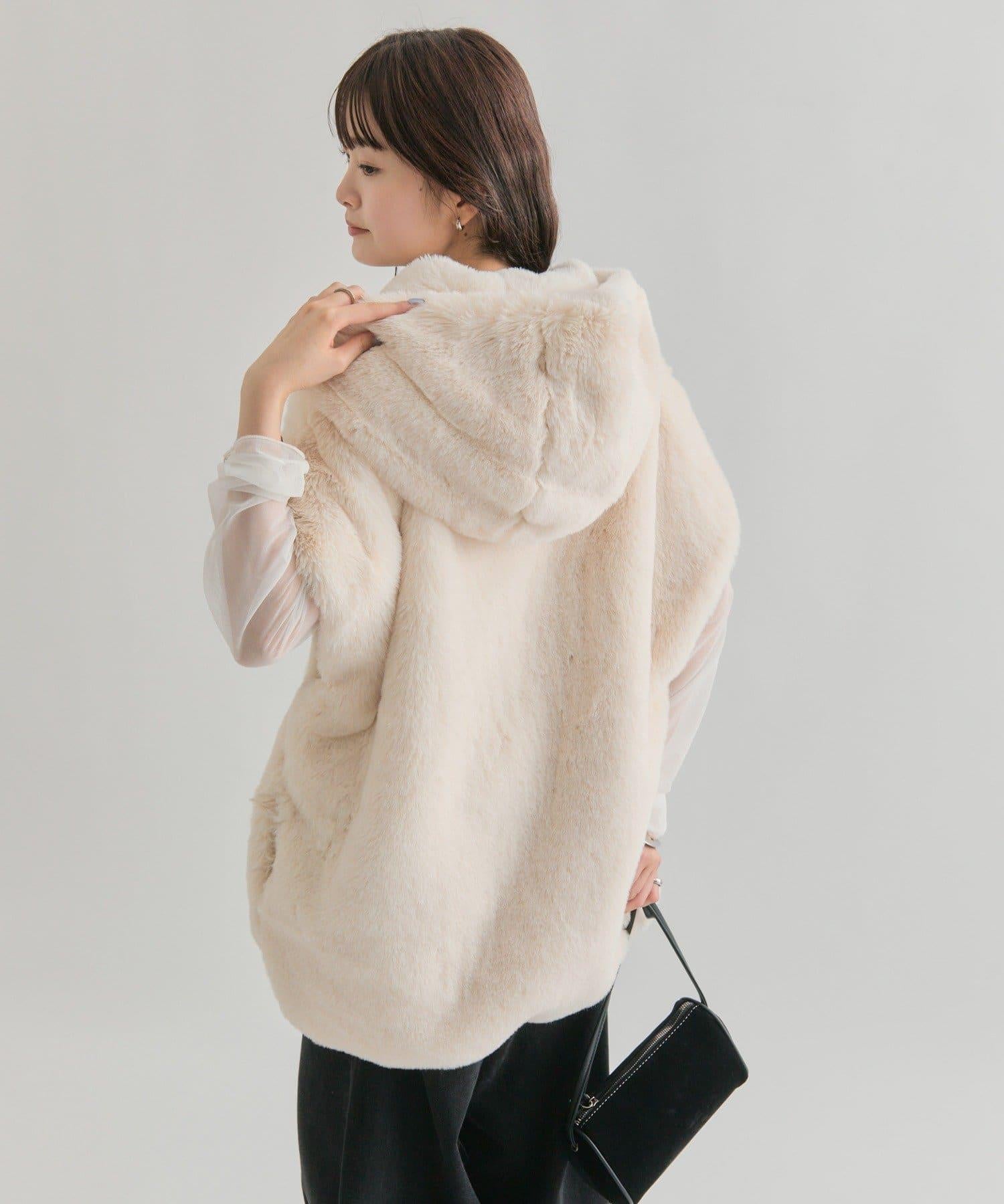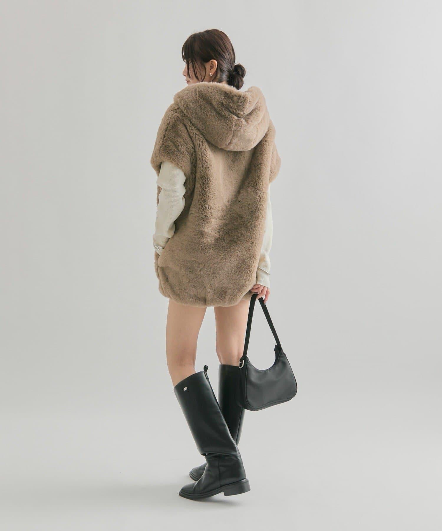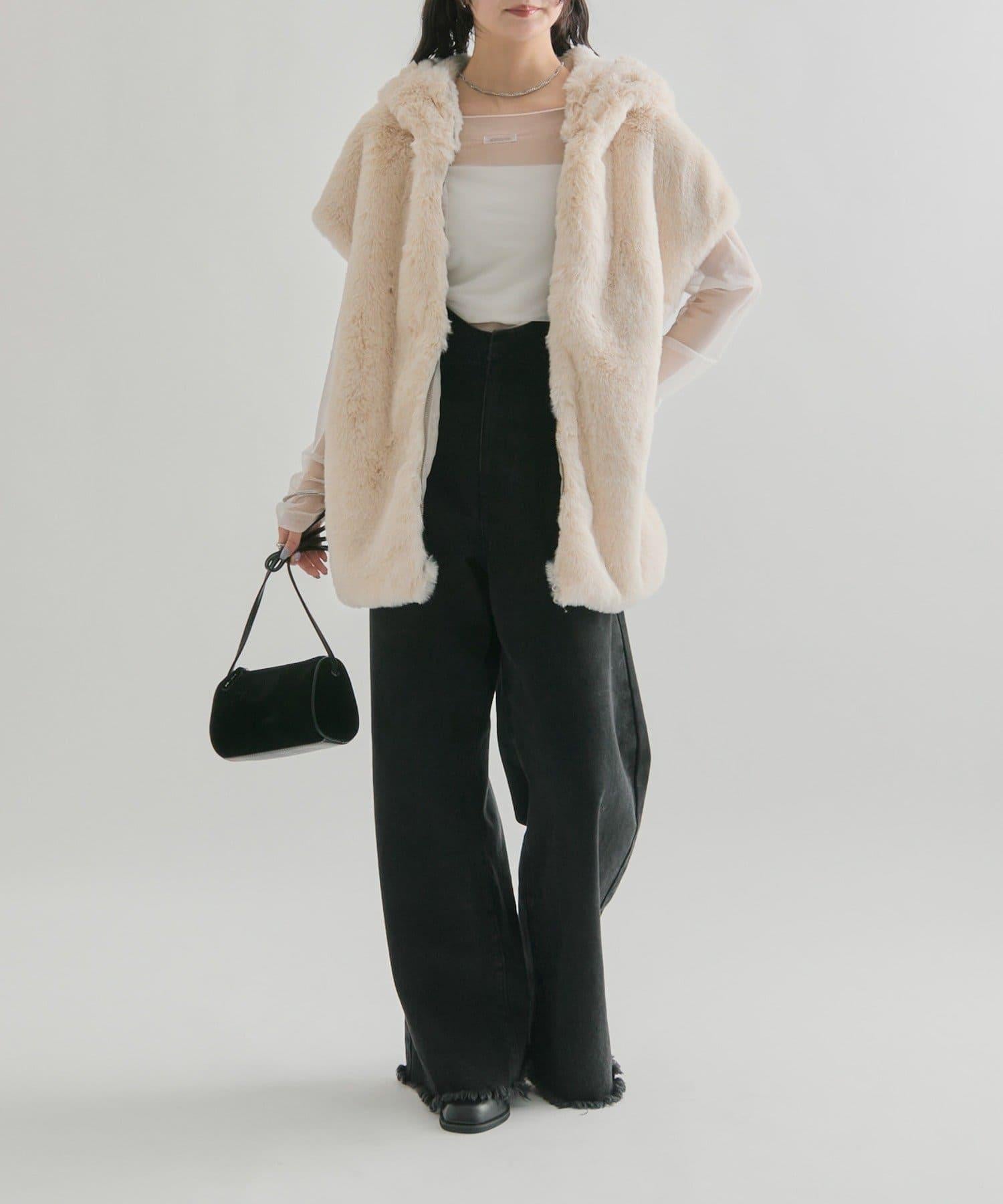 連帽皮草馬甲只需簡單搭配,即可打造優雅造型。