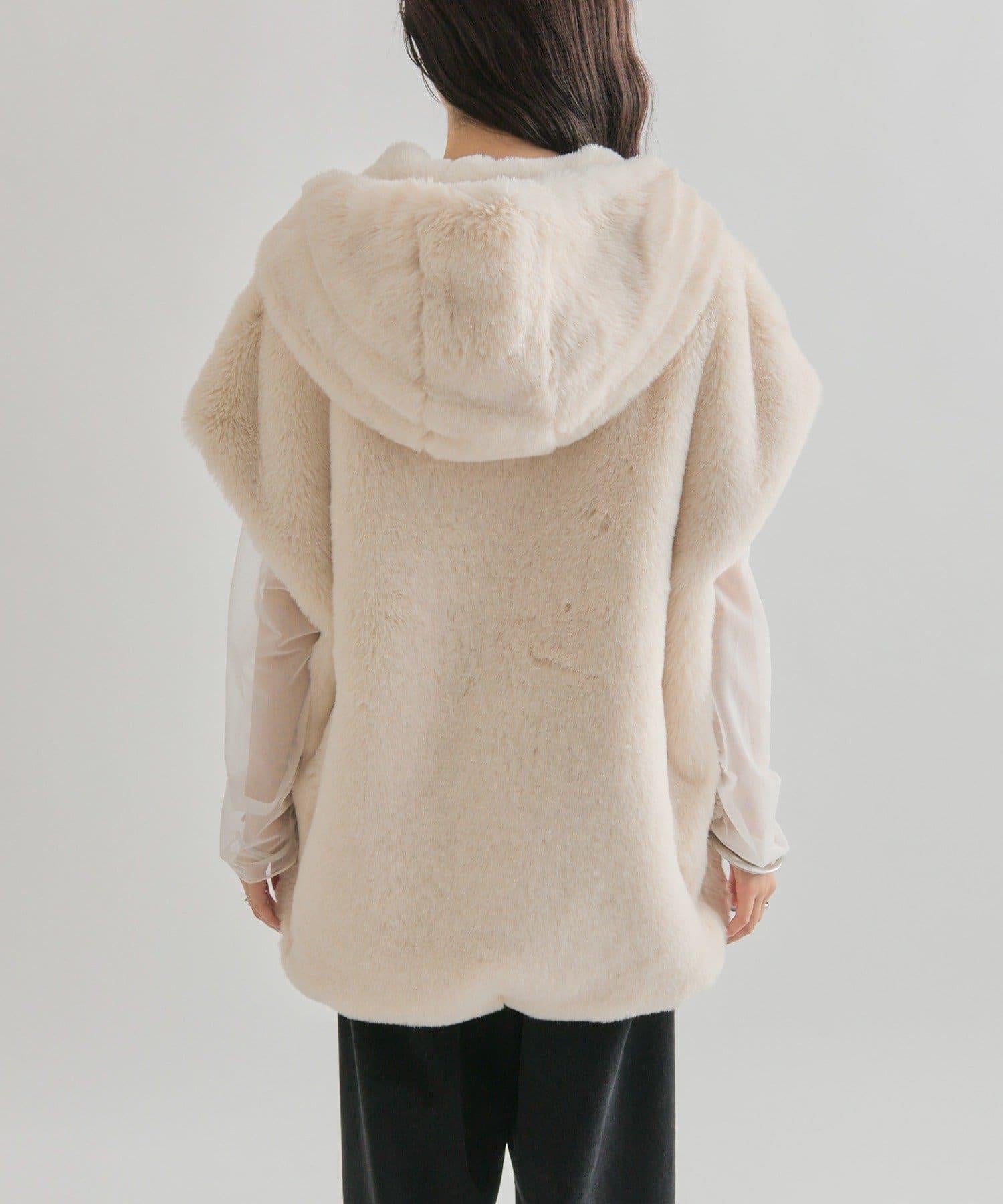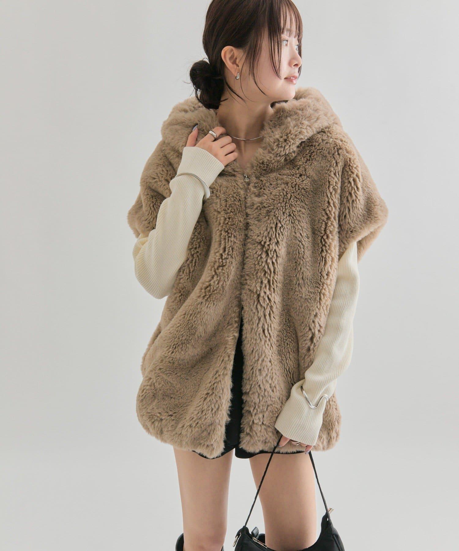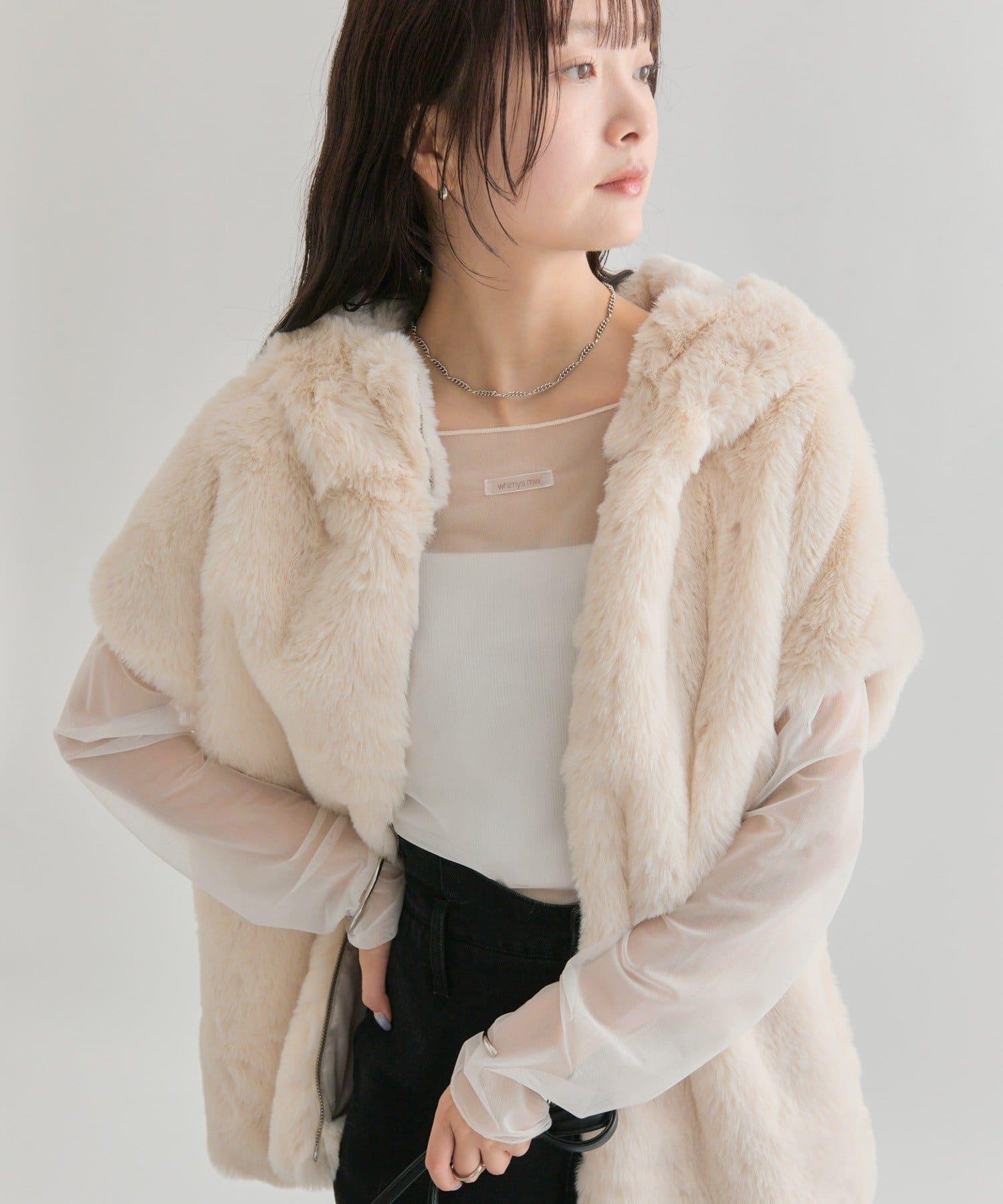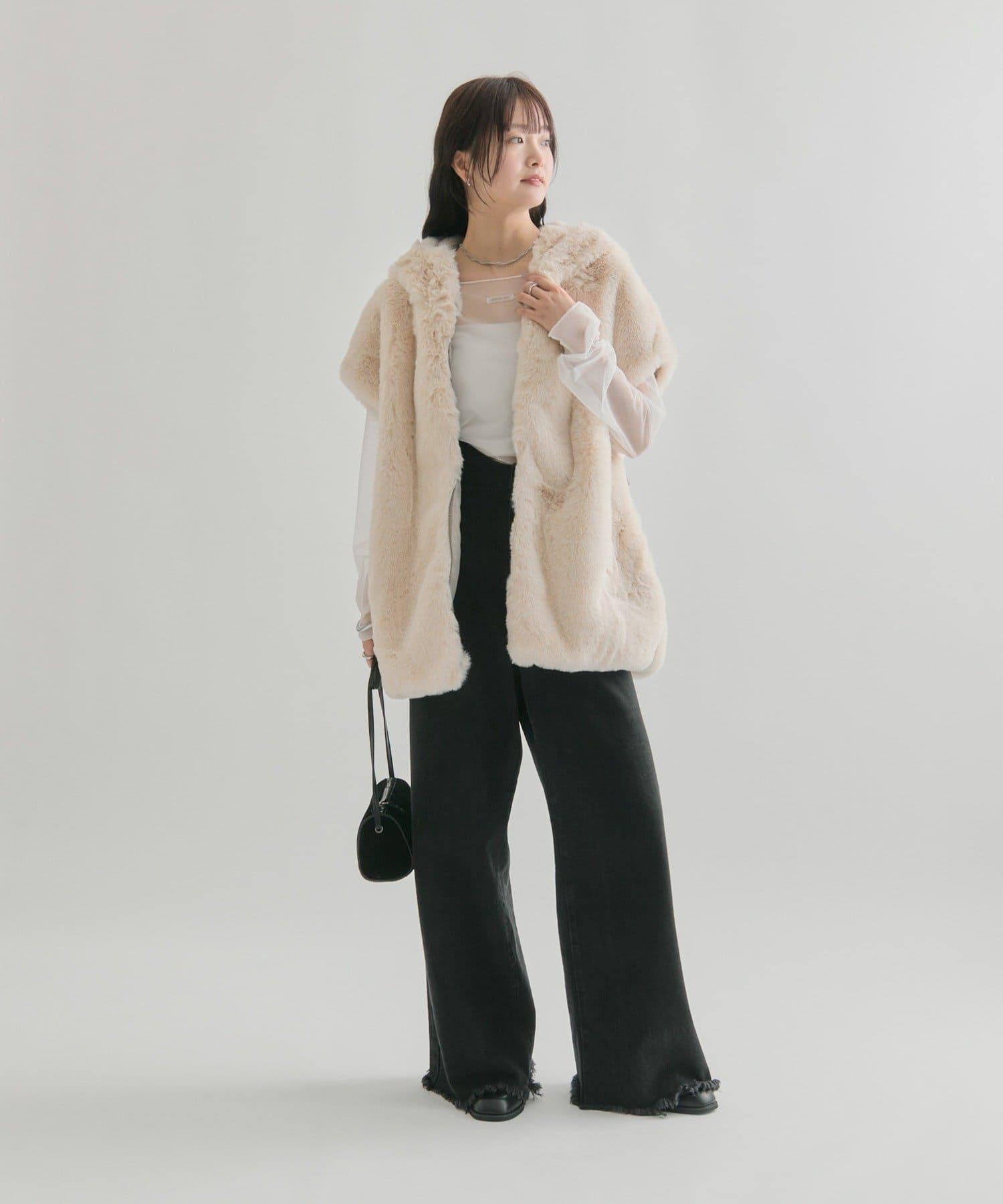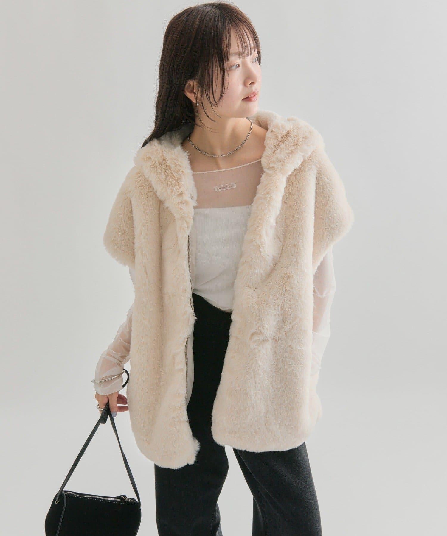 連帽皮草馬甲只需簡單搭配,即可打造優雅造型。