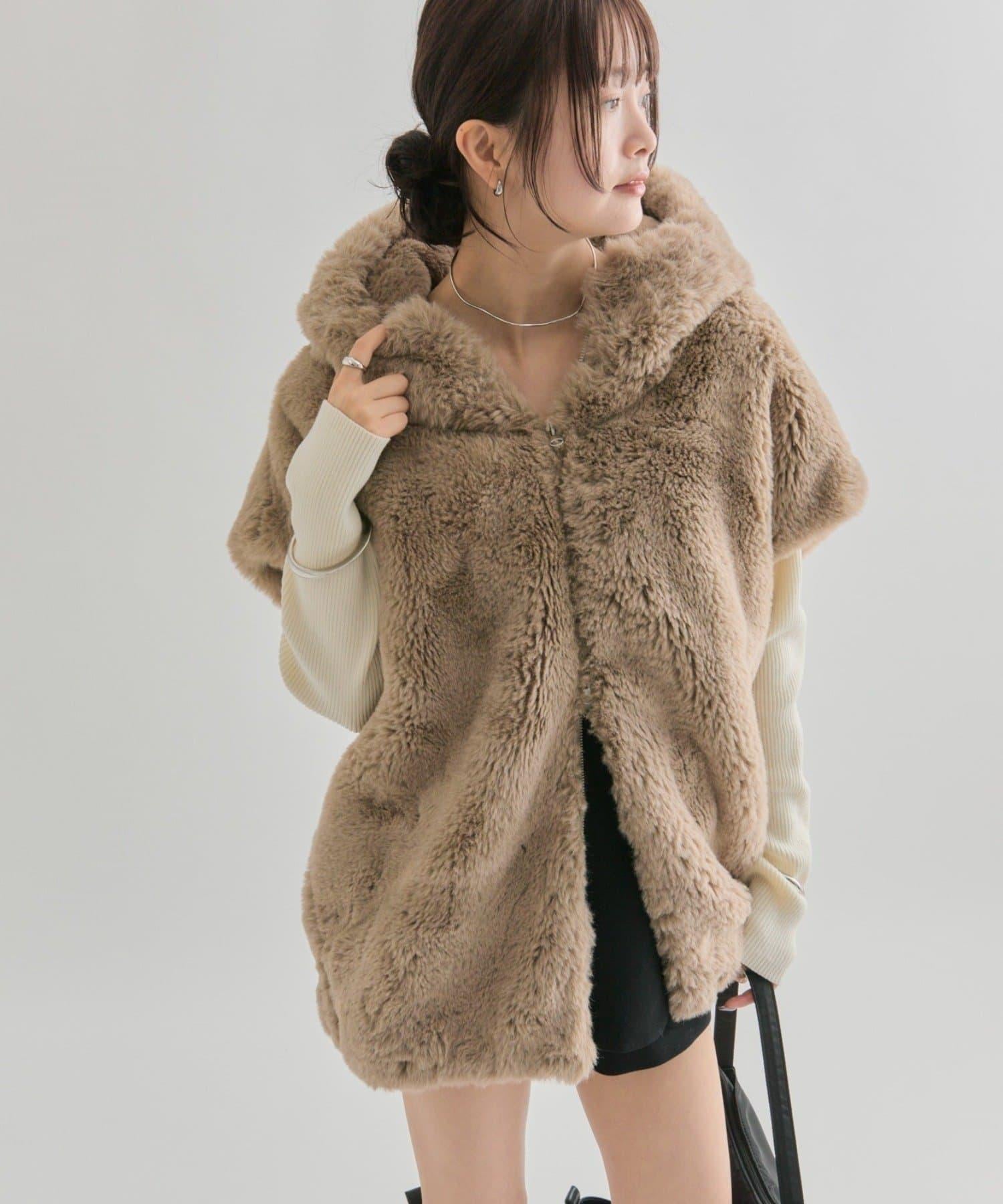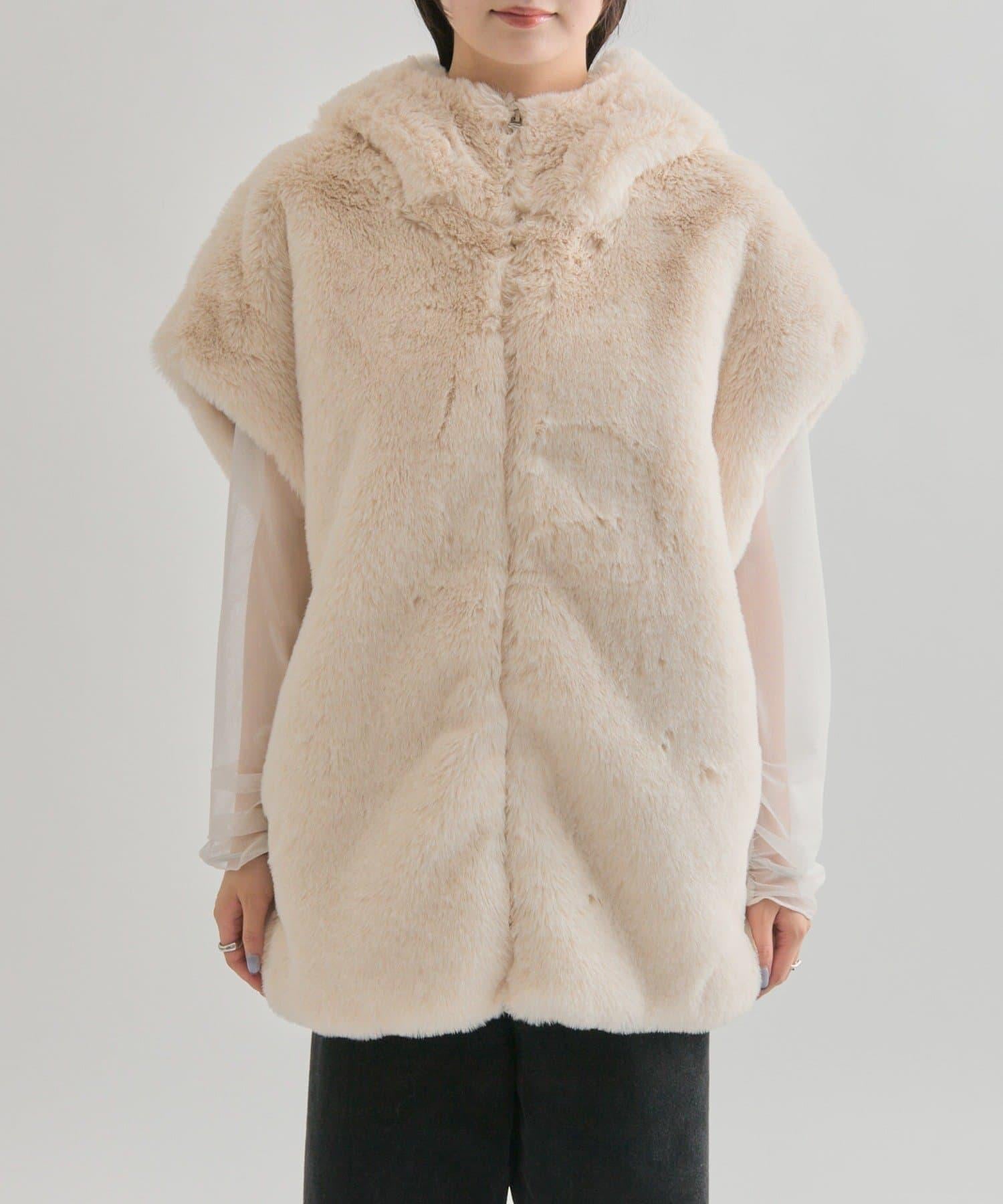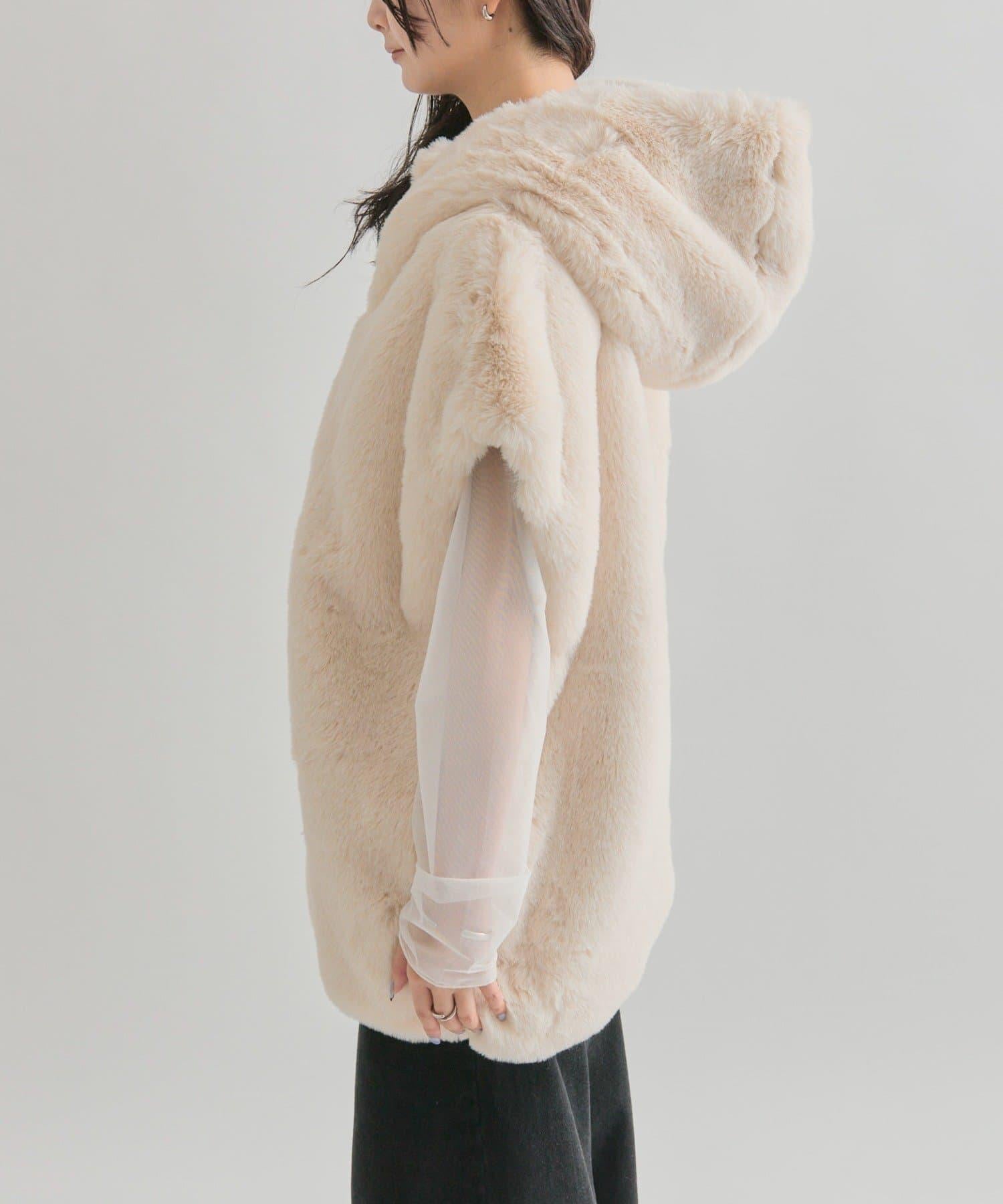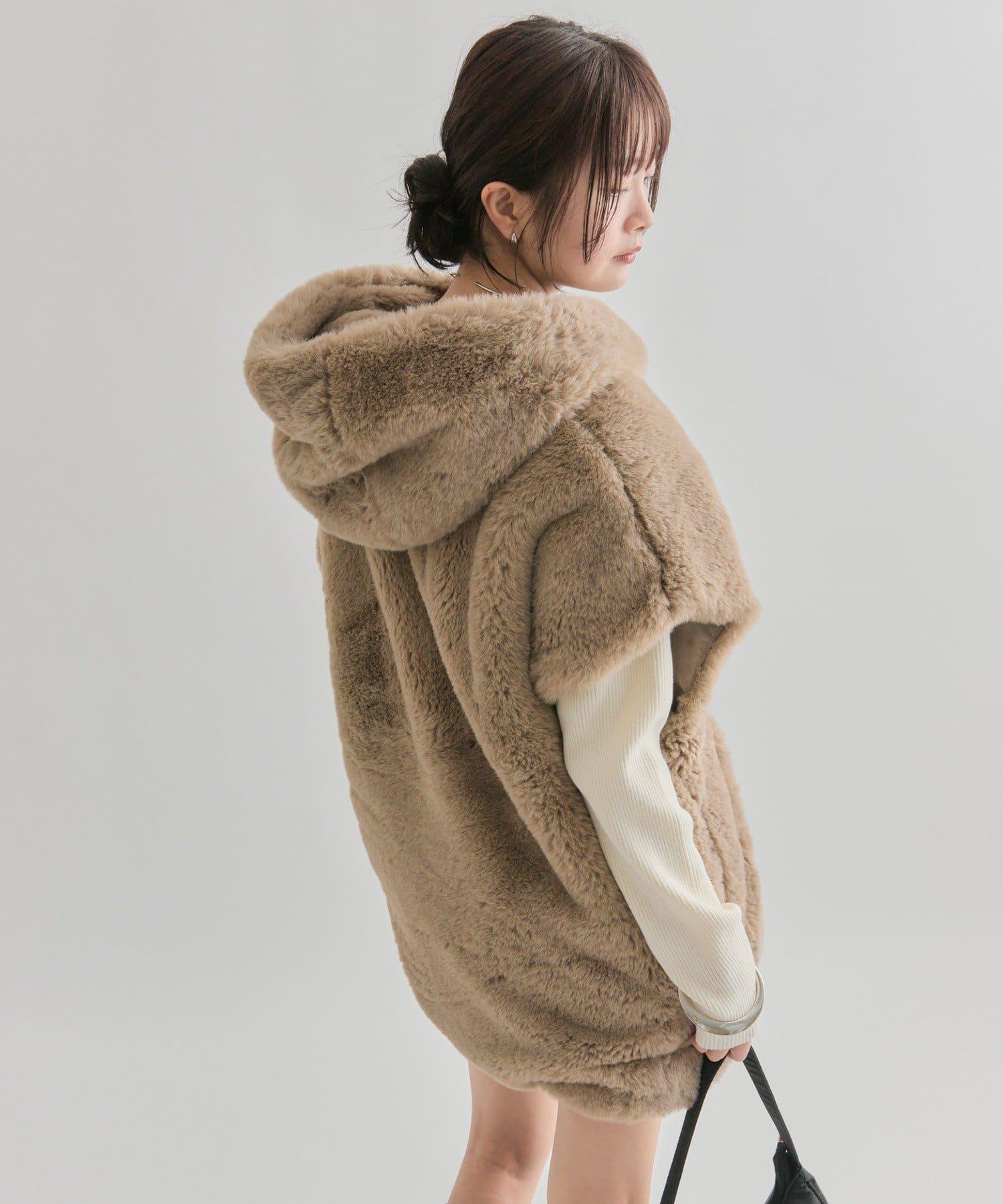 連帽皮草馬甲只需簡單搭配,即可打造優雅造型。