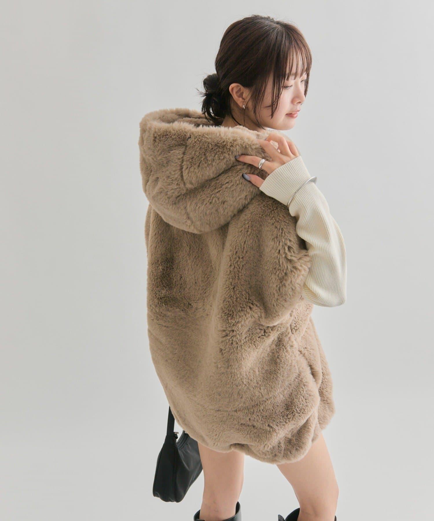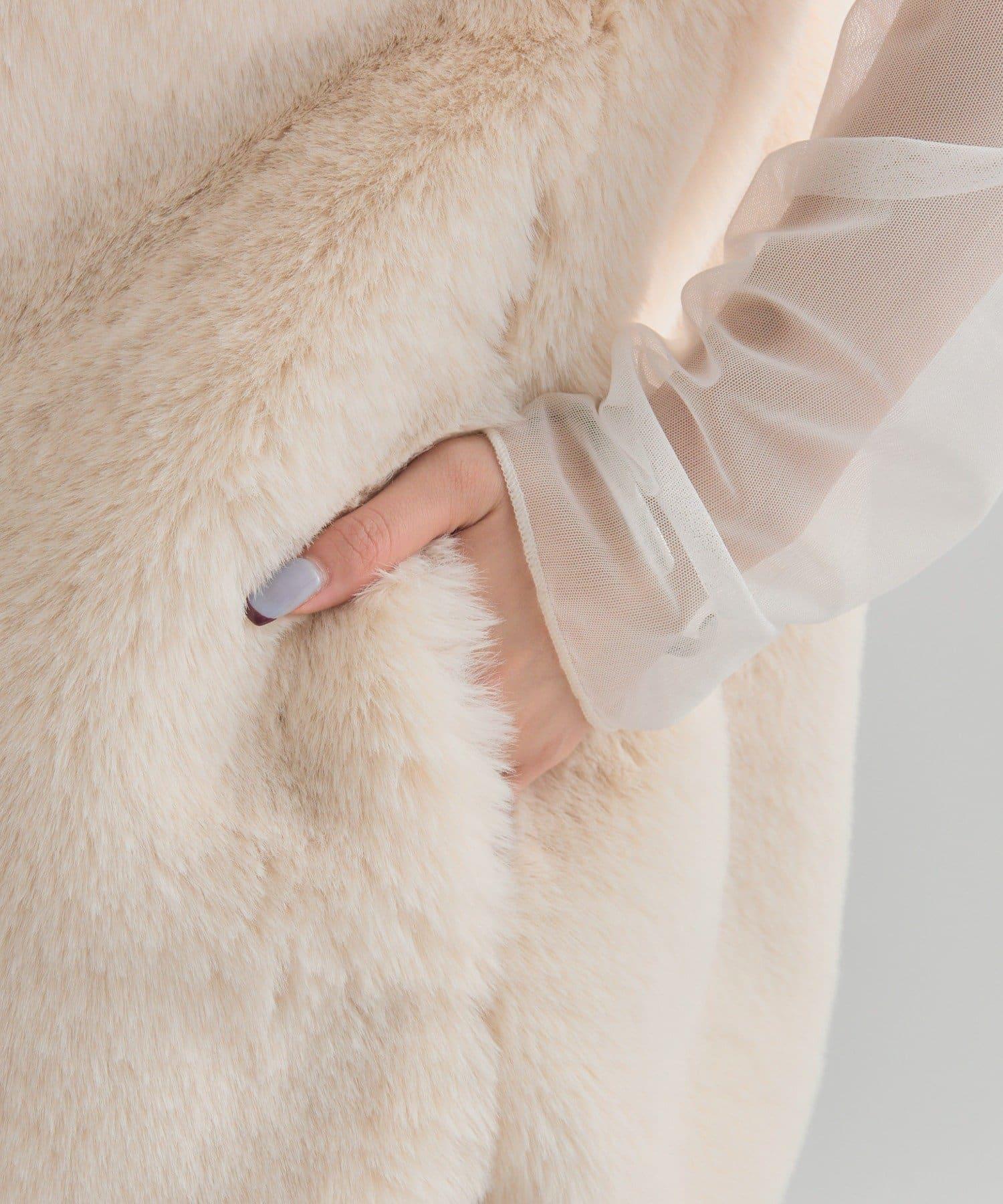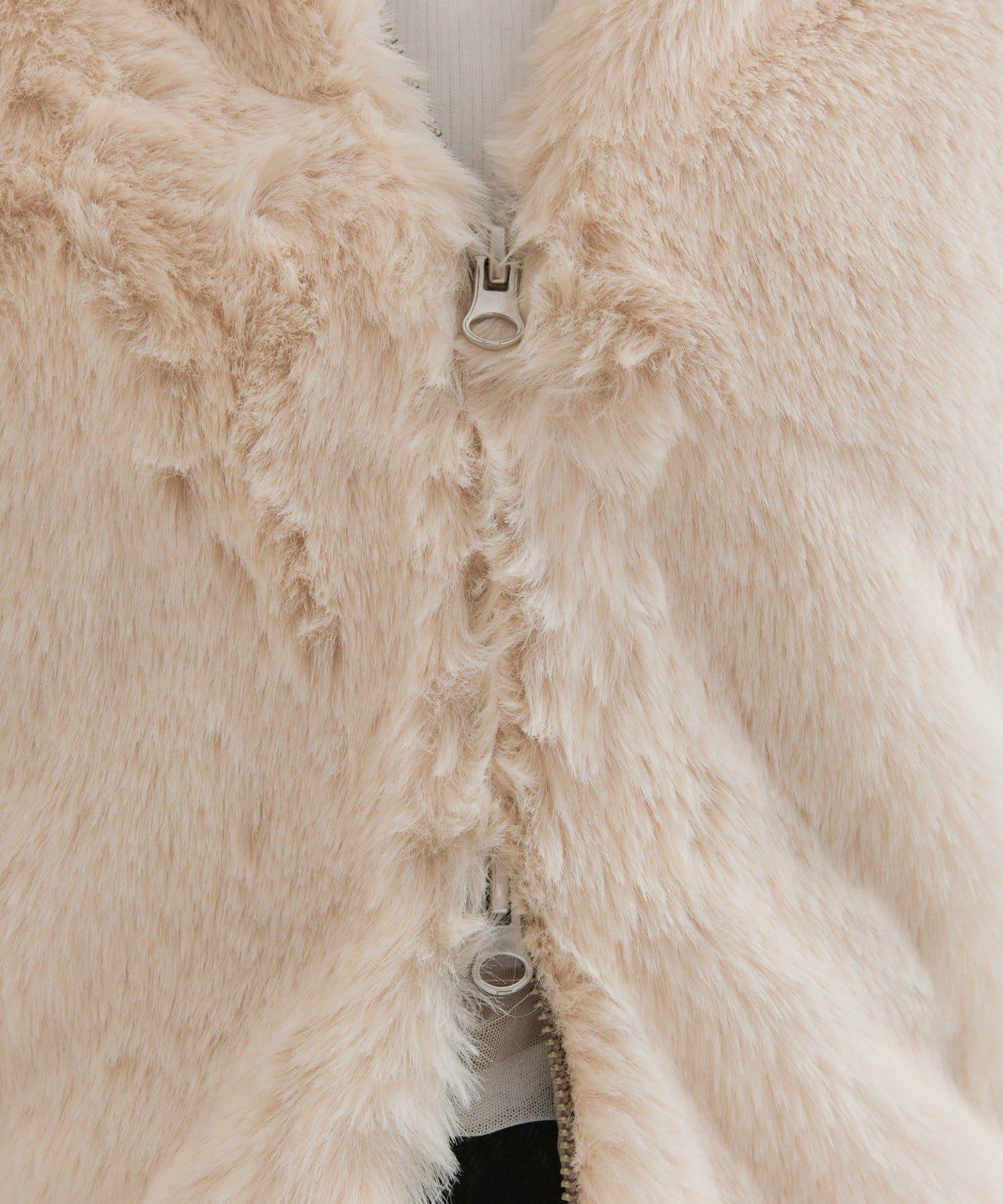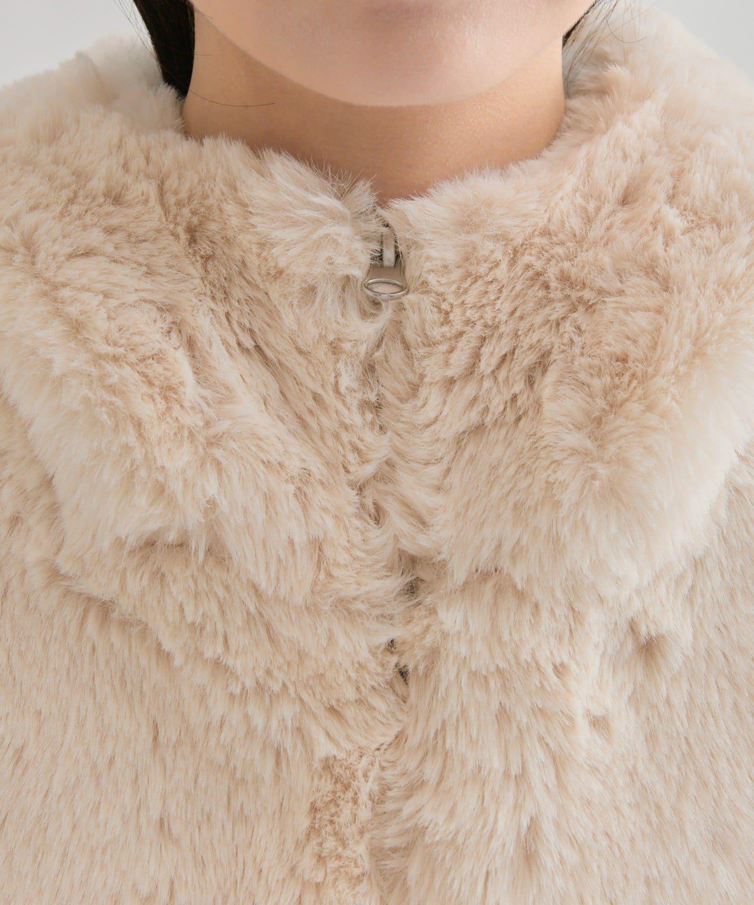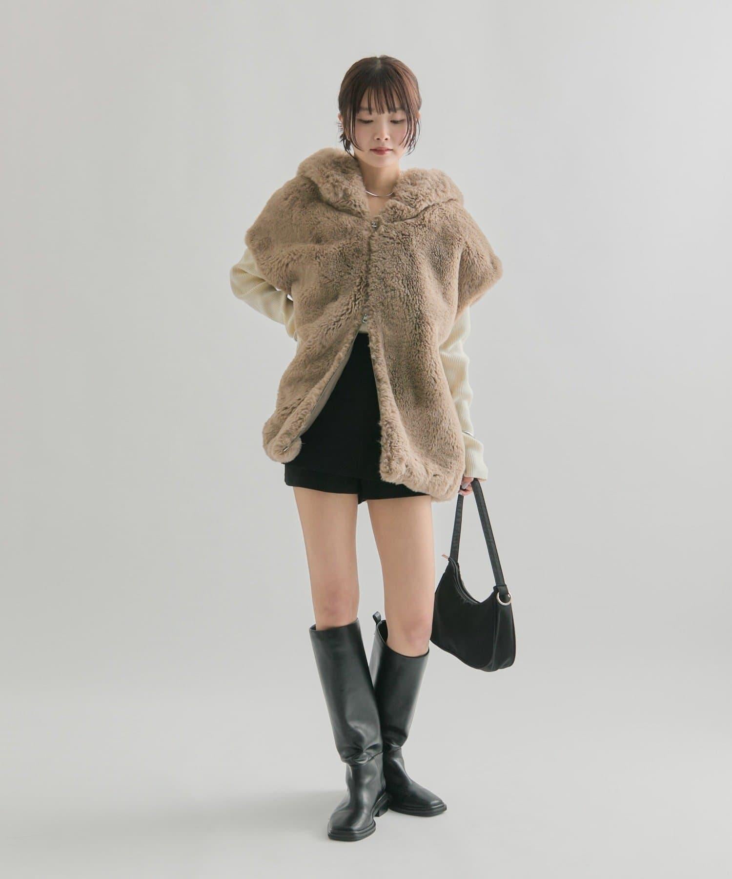 連帽皮草馬甲只需簡單搭配,即可打造優雅造型。