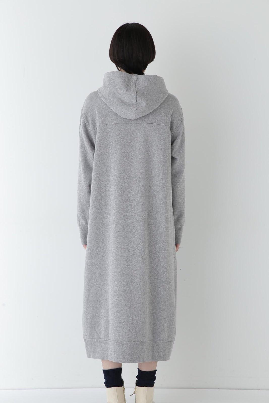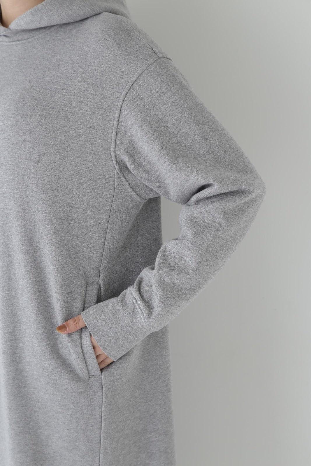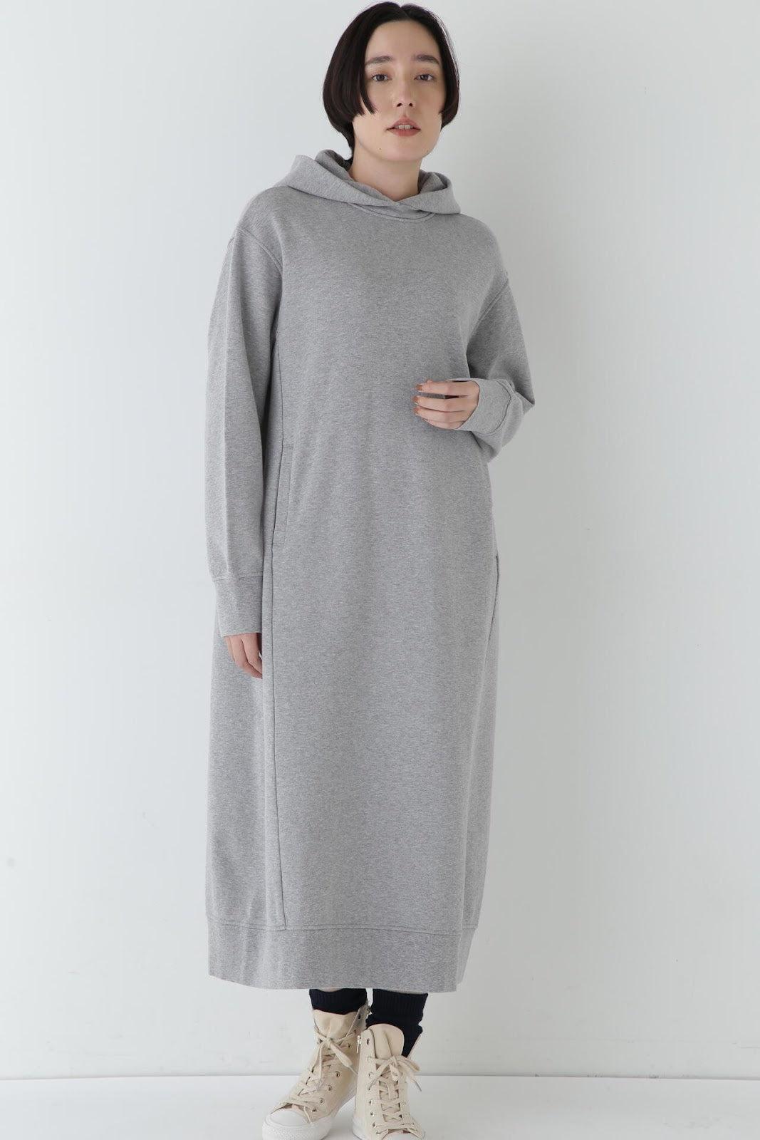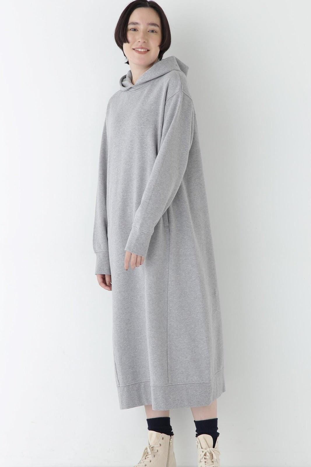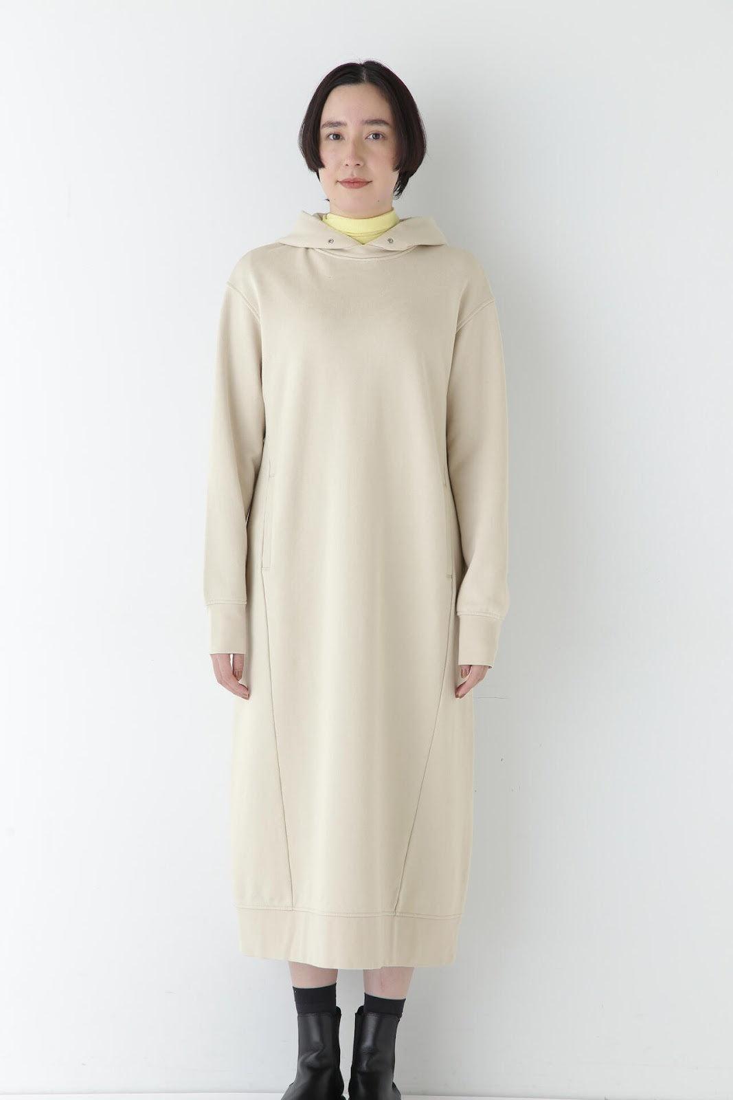 連帽連衣裙,輕鬆愉悅的連體外觀 [設計要點] 這款運動型衛衣連帽連衣裙給人一種輕鬆的感覺。下襬的針織羅紋張力使其輪廓略顯繭形,並有細微的修飾效果。面料內襯為預有機棉,表面蓬鬆潔淨。這是一款適合早春穿著的寬鬆連身裙。它是一款可愛的成人休閒單品,也可與外衣搭配,將兜帽打開穿著。