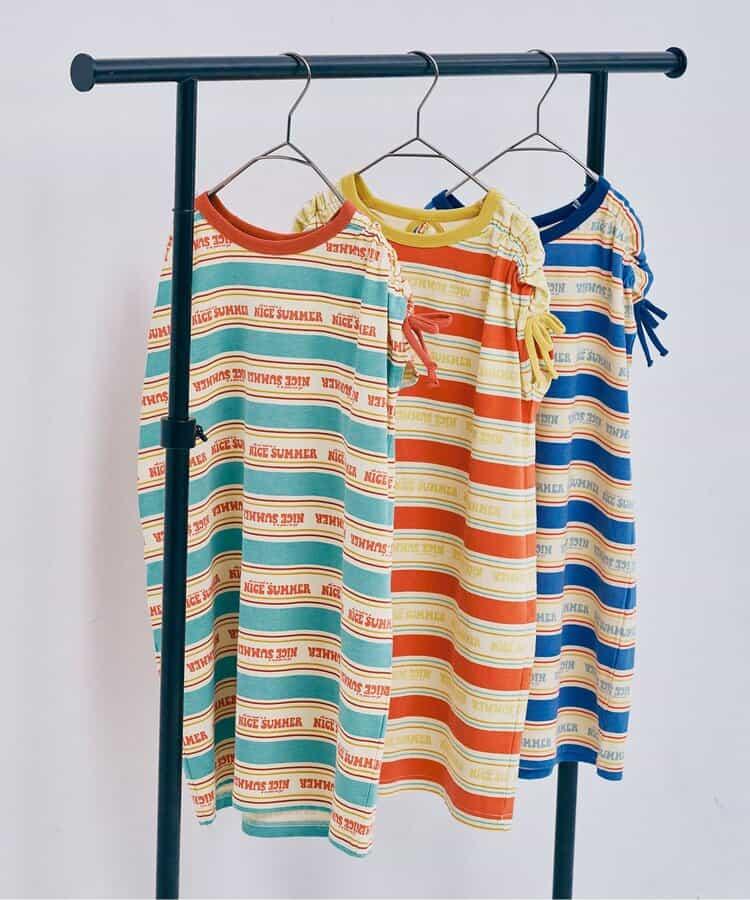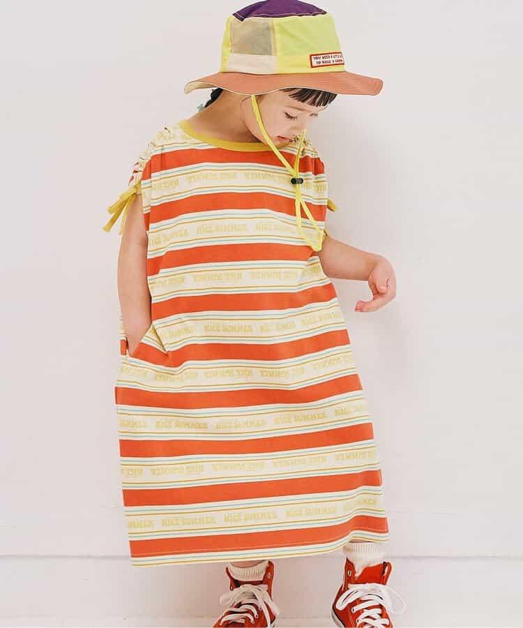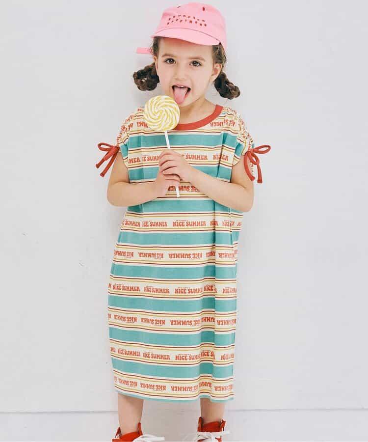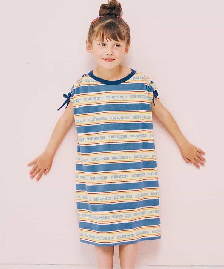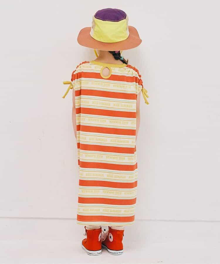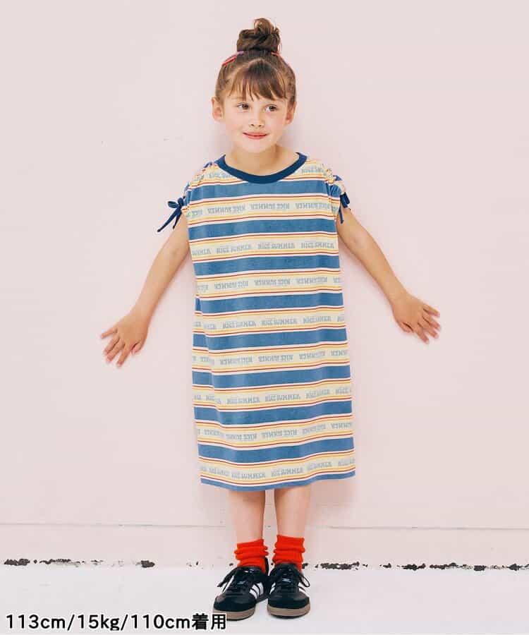 【連衣裙】夏季大愛標誌條紋抽褶袖連衣裙_可搭配套裝