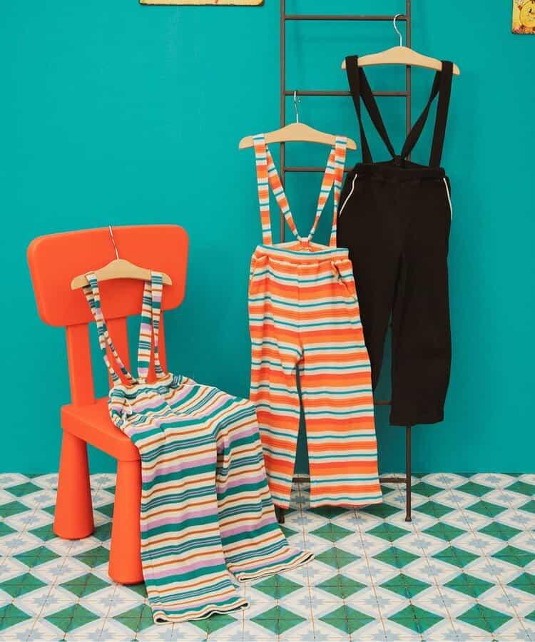 | 100 | ウエスト幅21 前股上22 股下33 足口幅17 腰幅34 肩紐 |