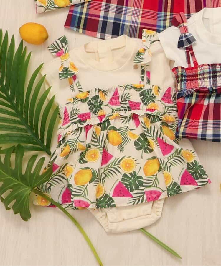 【連衣裙】格紋·夏季水果圖案女童連體褲