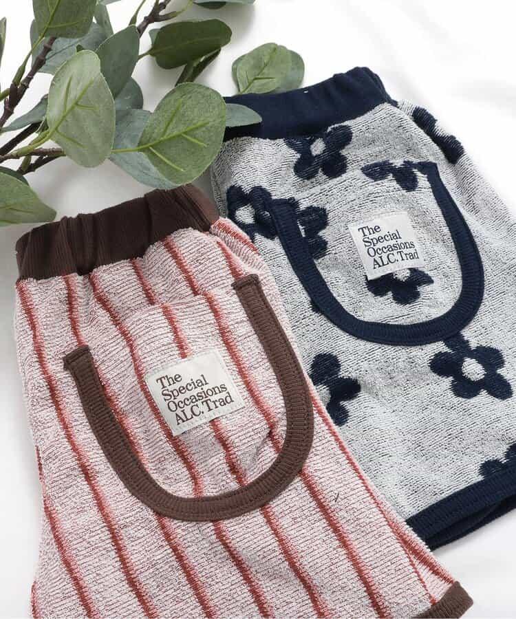 【連衣裙】花朵條紋圖案絨面半褲 4分褲