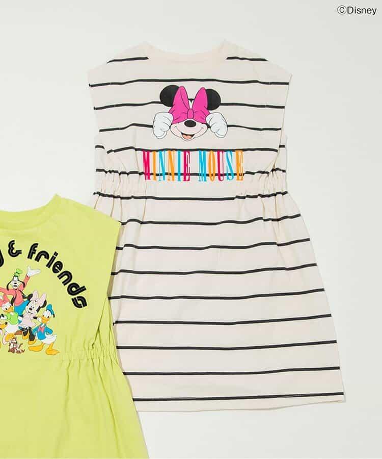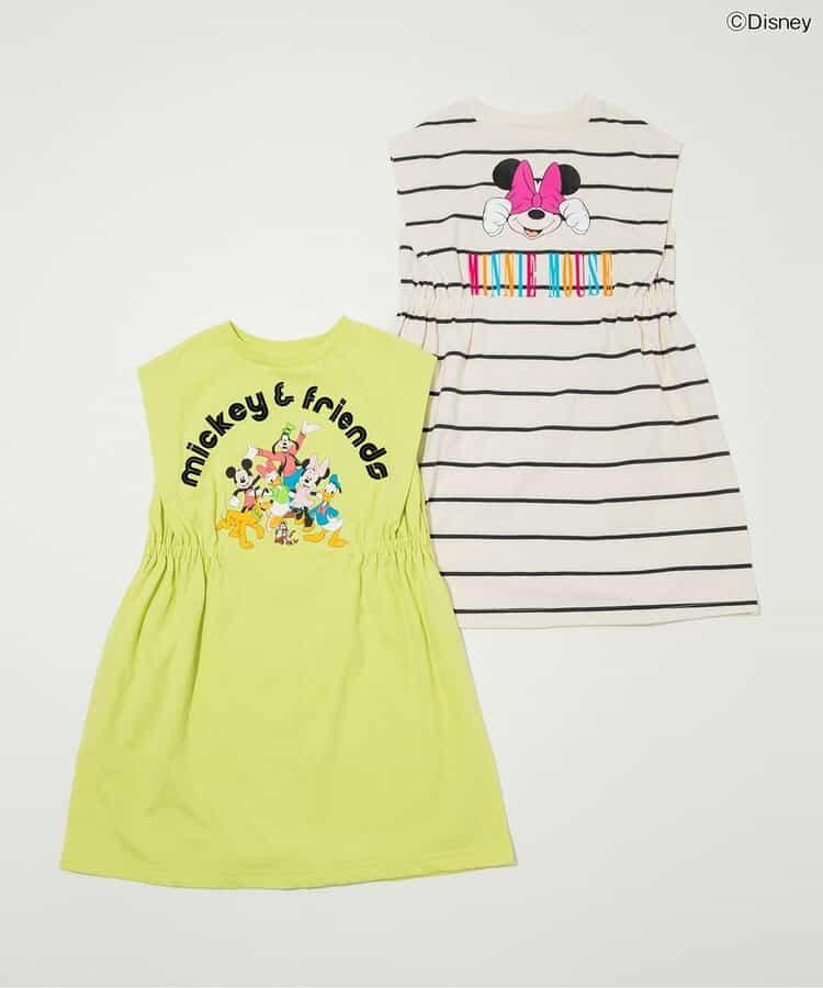 這款以迪士尼卡通藝術為主題的連體褲有兩種顏色:醒目的黃色和時尚的條紋圖案。
