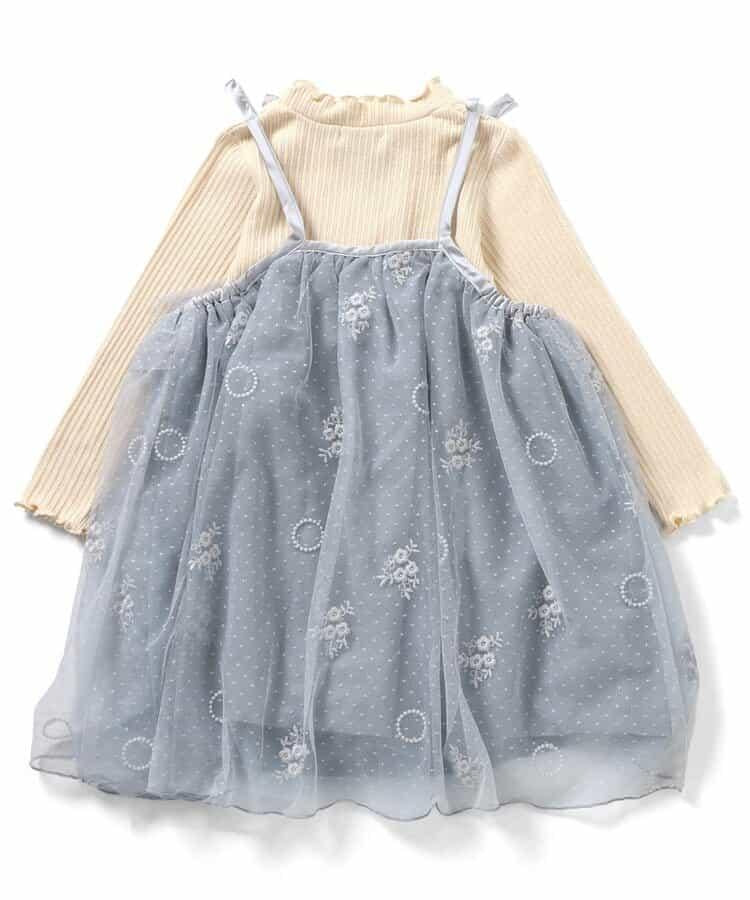 Seraph 的連衣裙"[鏈接] 羅紋上衣和薄紗刺繡連衣裙 2P 套裝 "以其簡潔的面料和柔和的色彩推薦給品味自然的時尚人士!