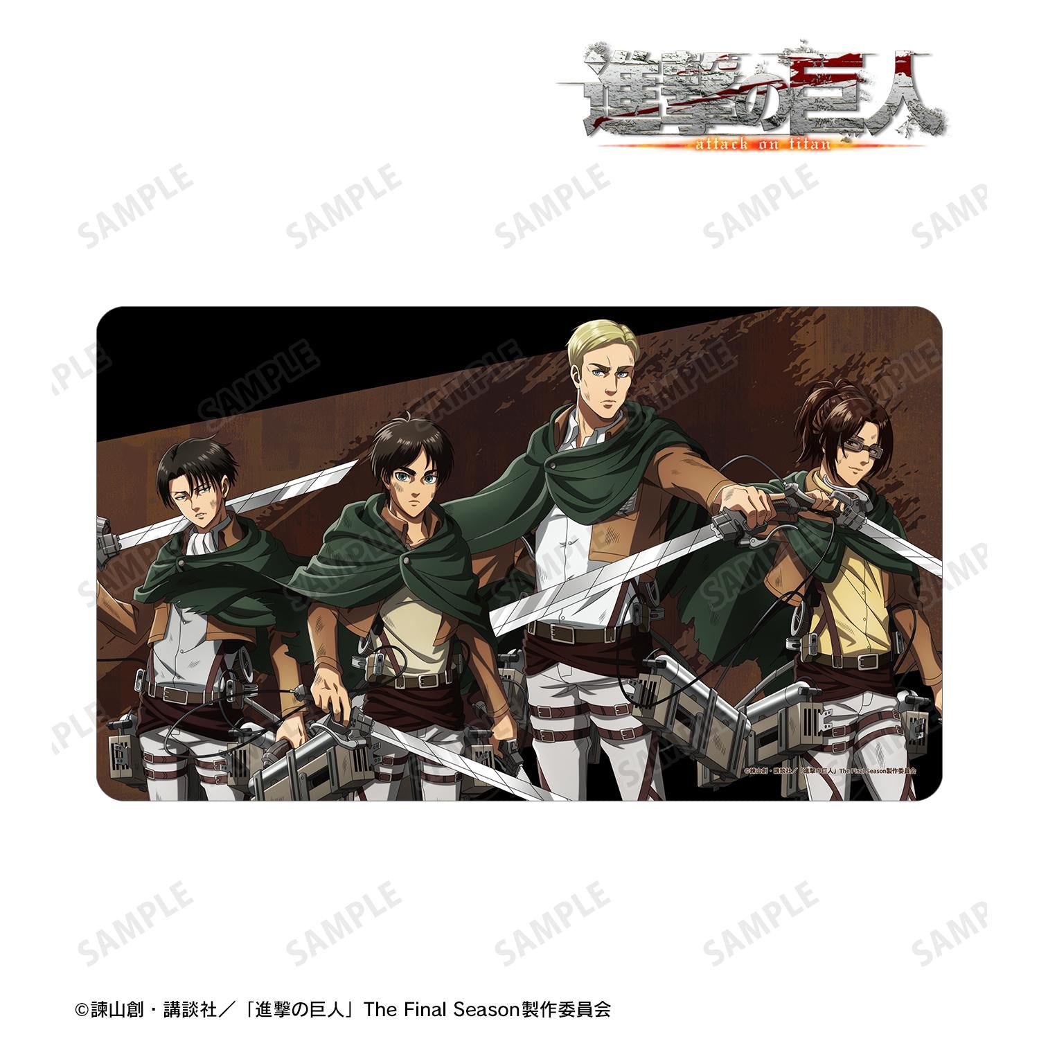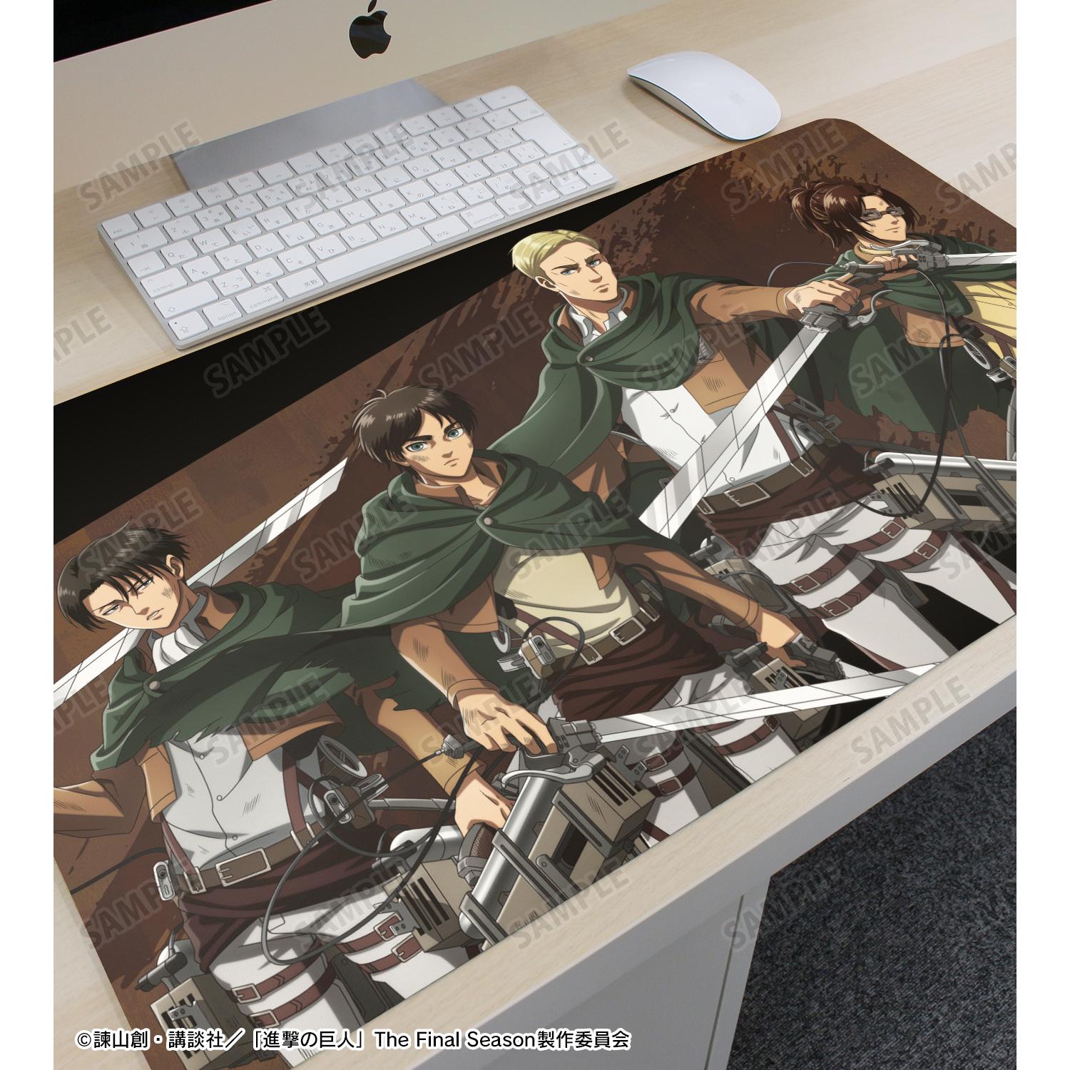 這款多功能桌墊上有新繪製的伊倫、埃爾文、李維和韓吉的插圖。