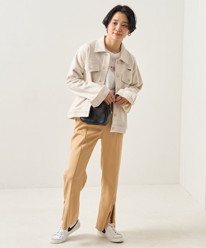 建議搭配男性化的鑲邊上衣或印花 T 作為內搭,或從內側露出流蘇領或蕾絲單品,打造女性化搭配。