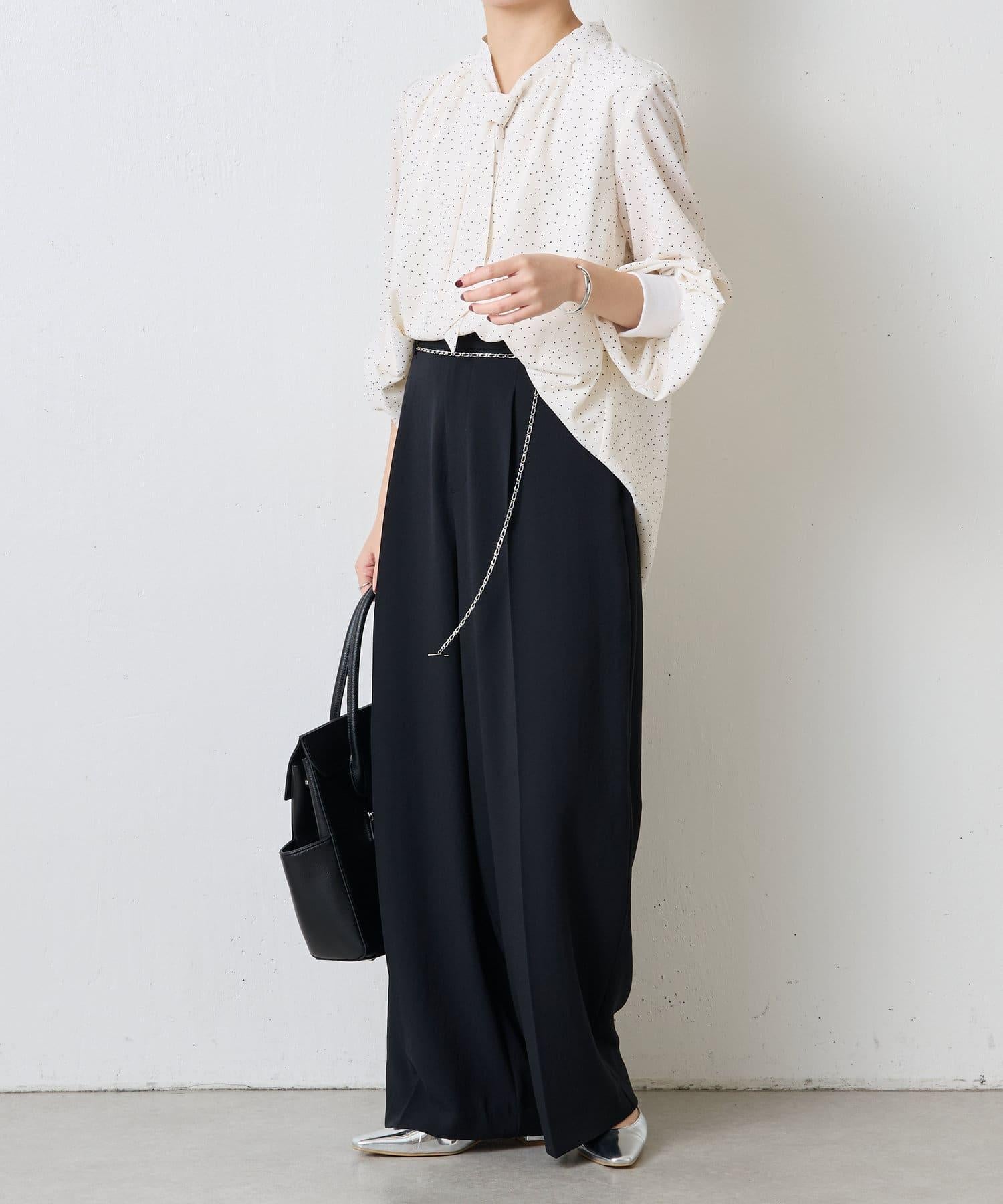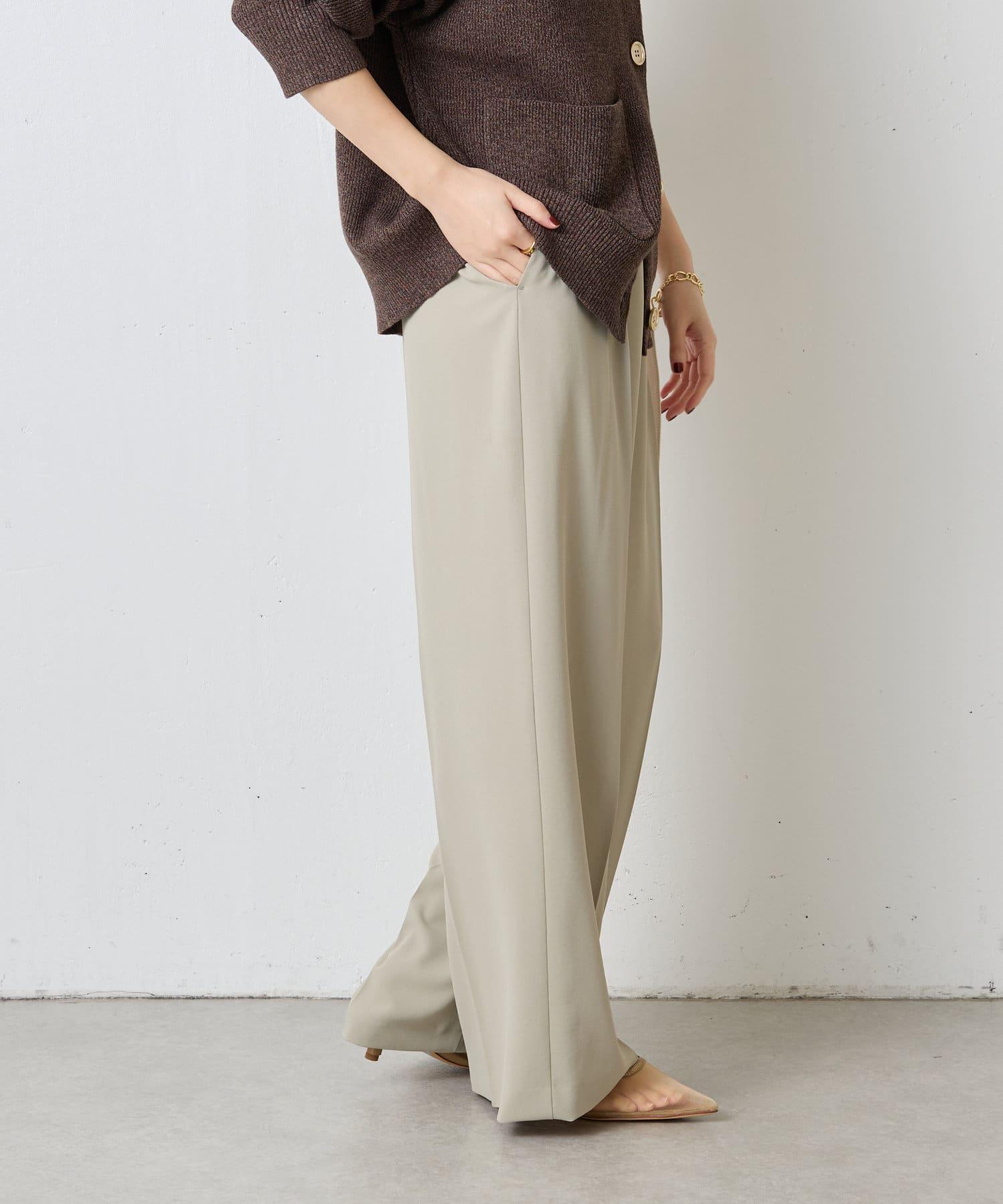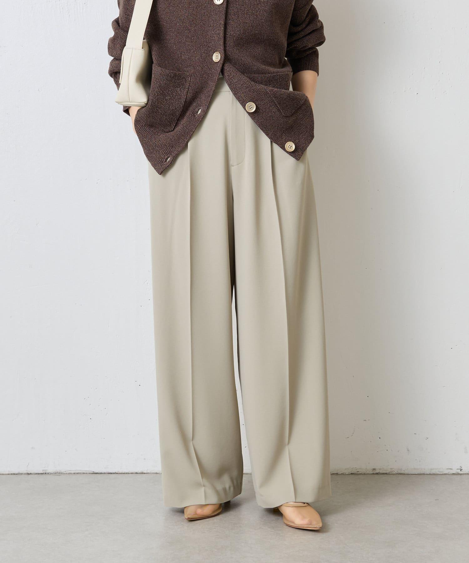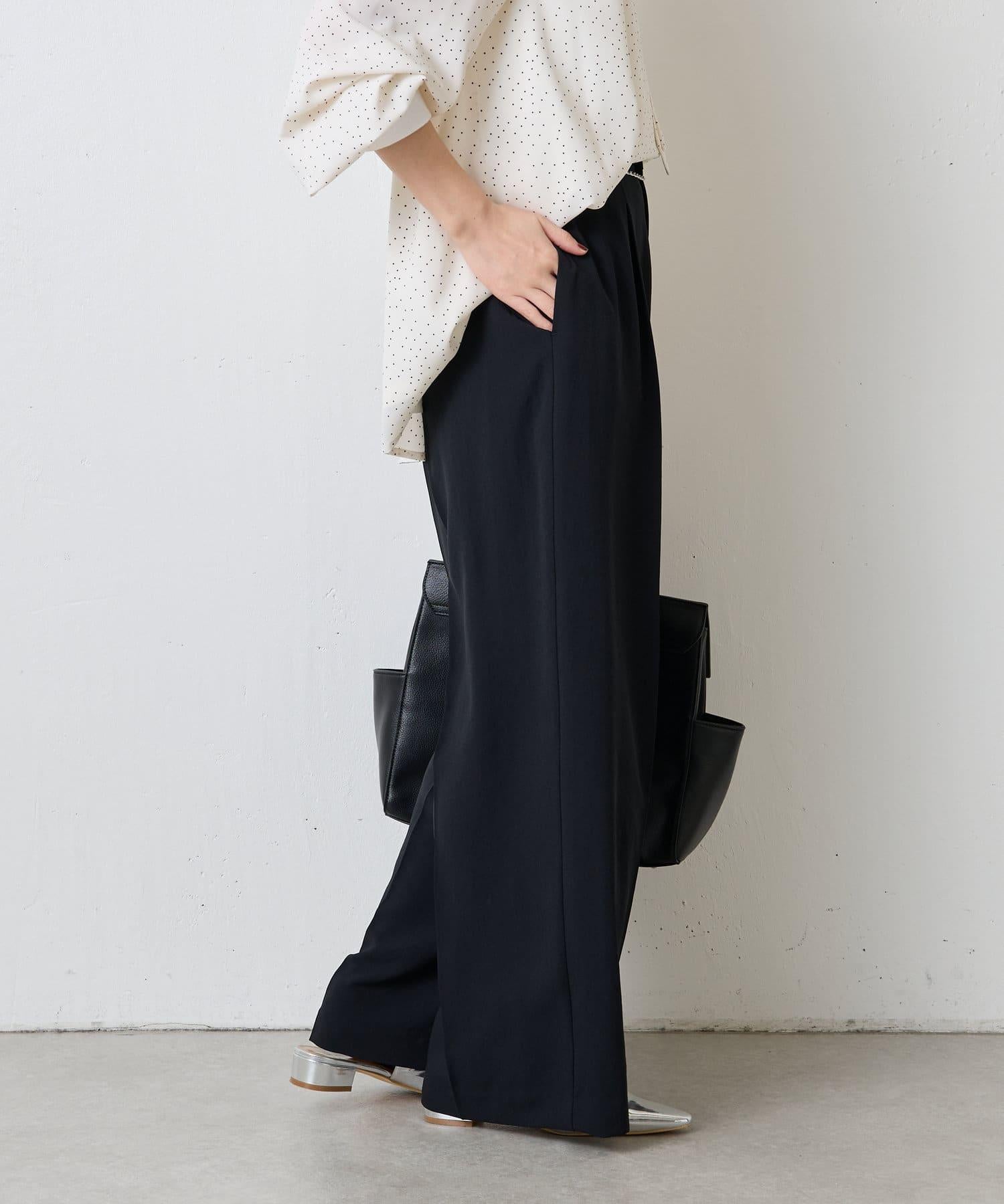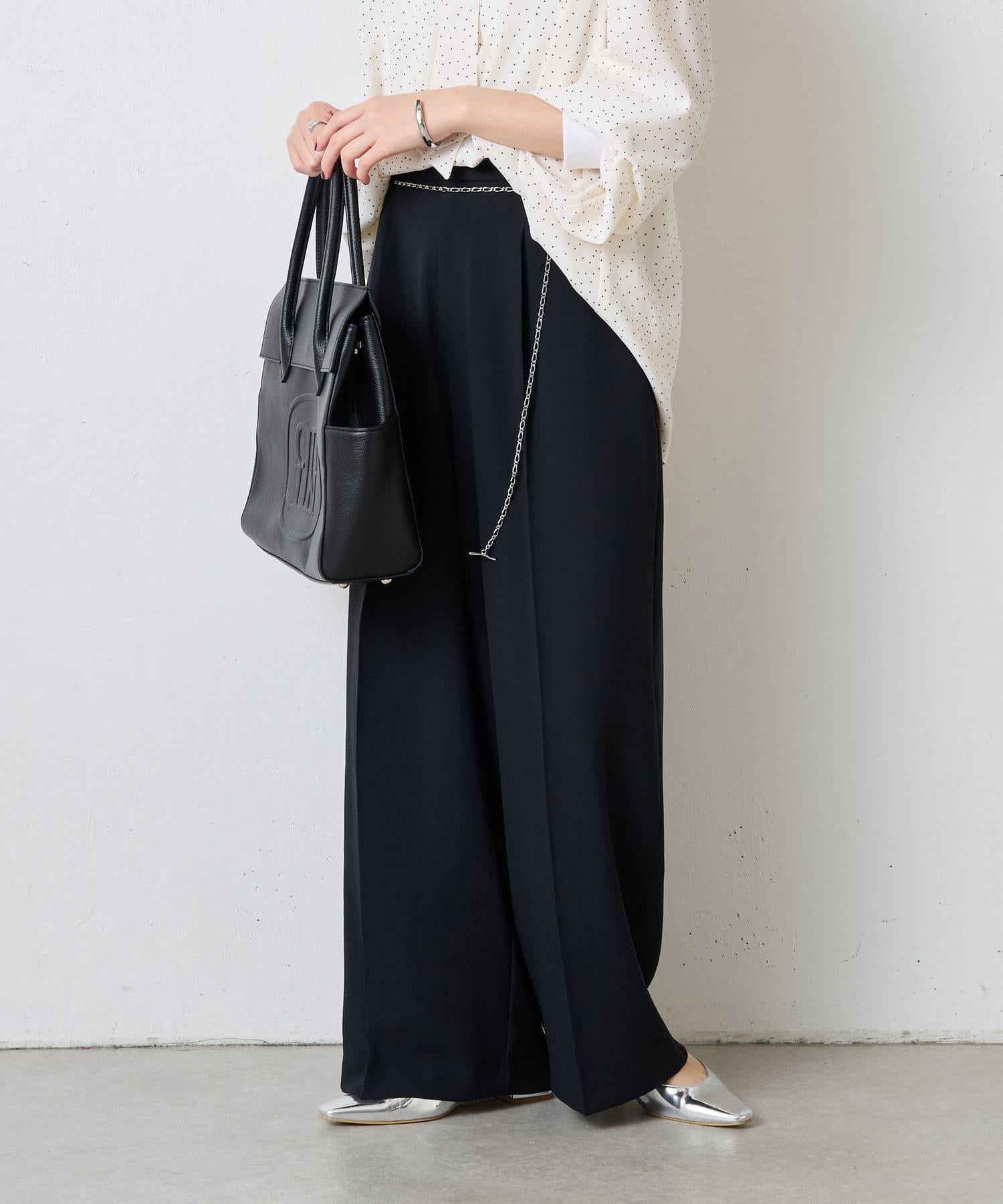 面料手感寬鬆,即使是闊腿褲也能穿出乾淨利落的感覺。